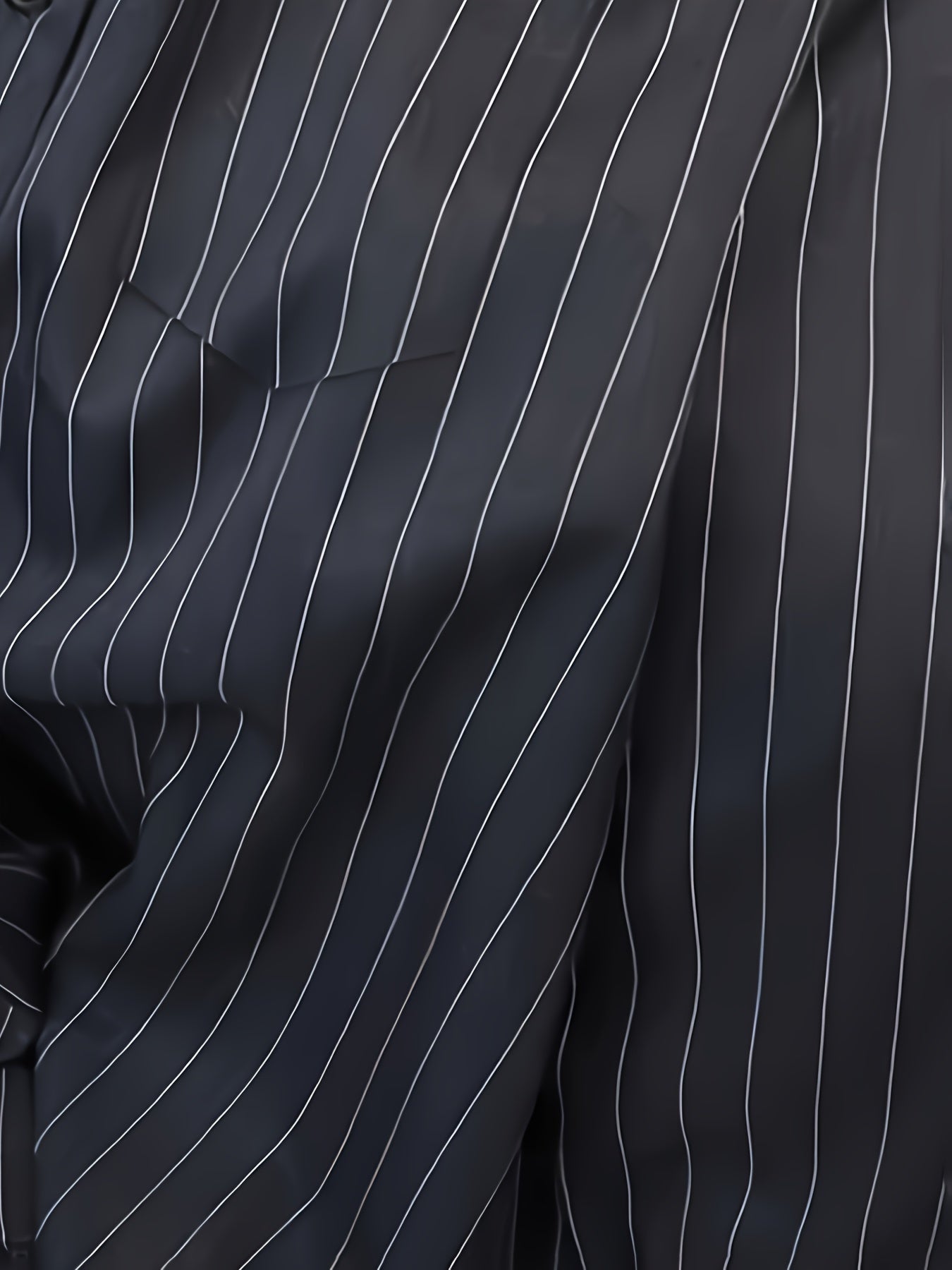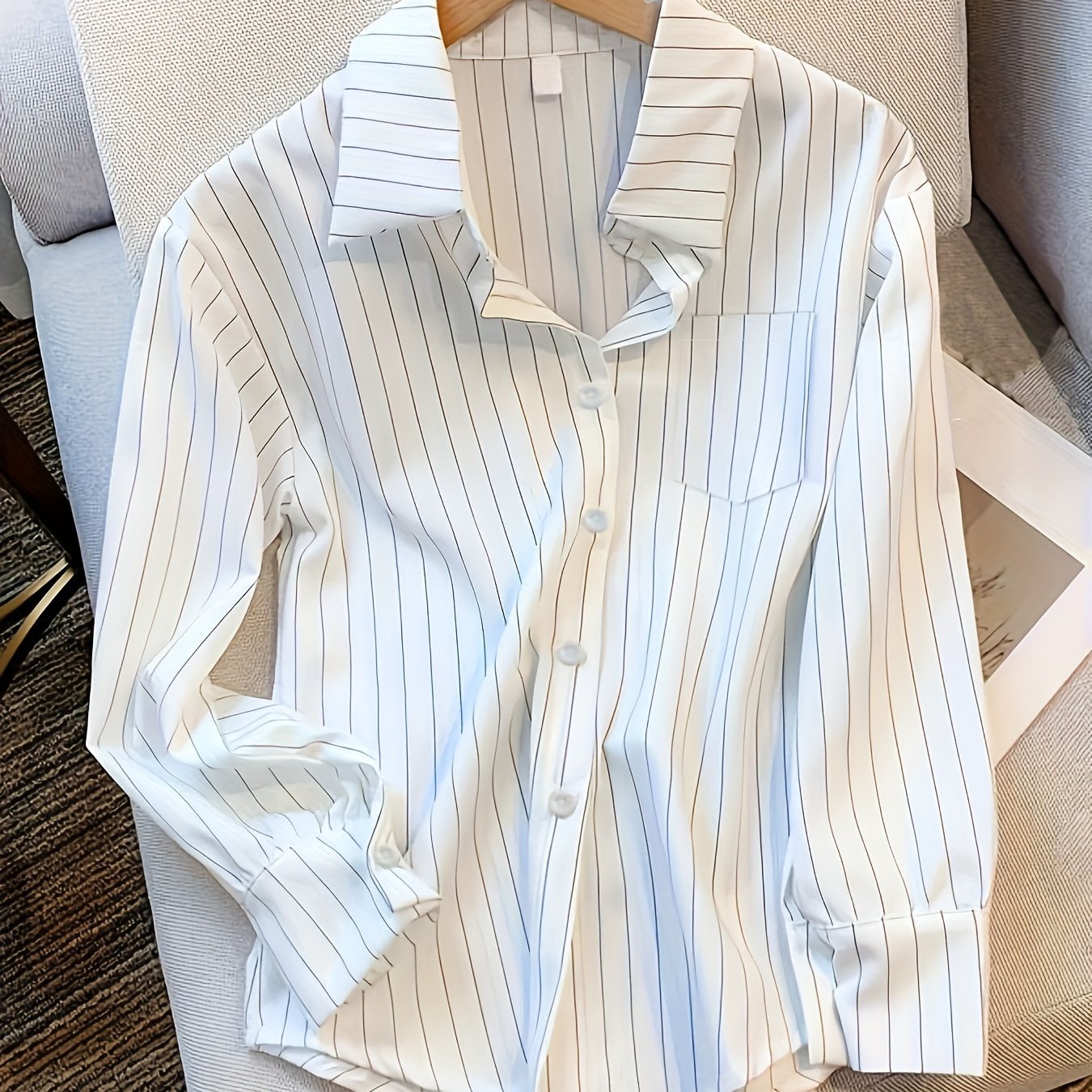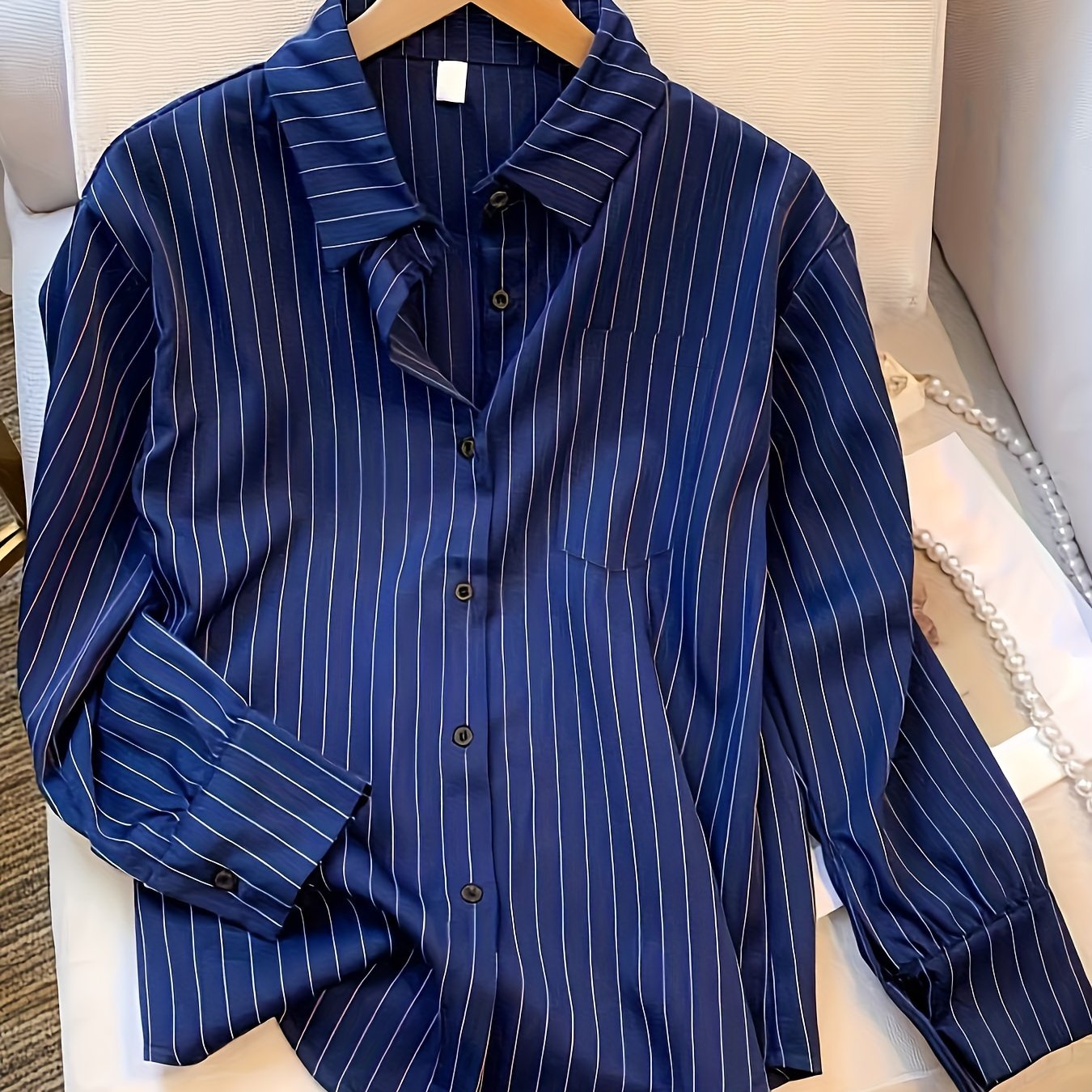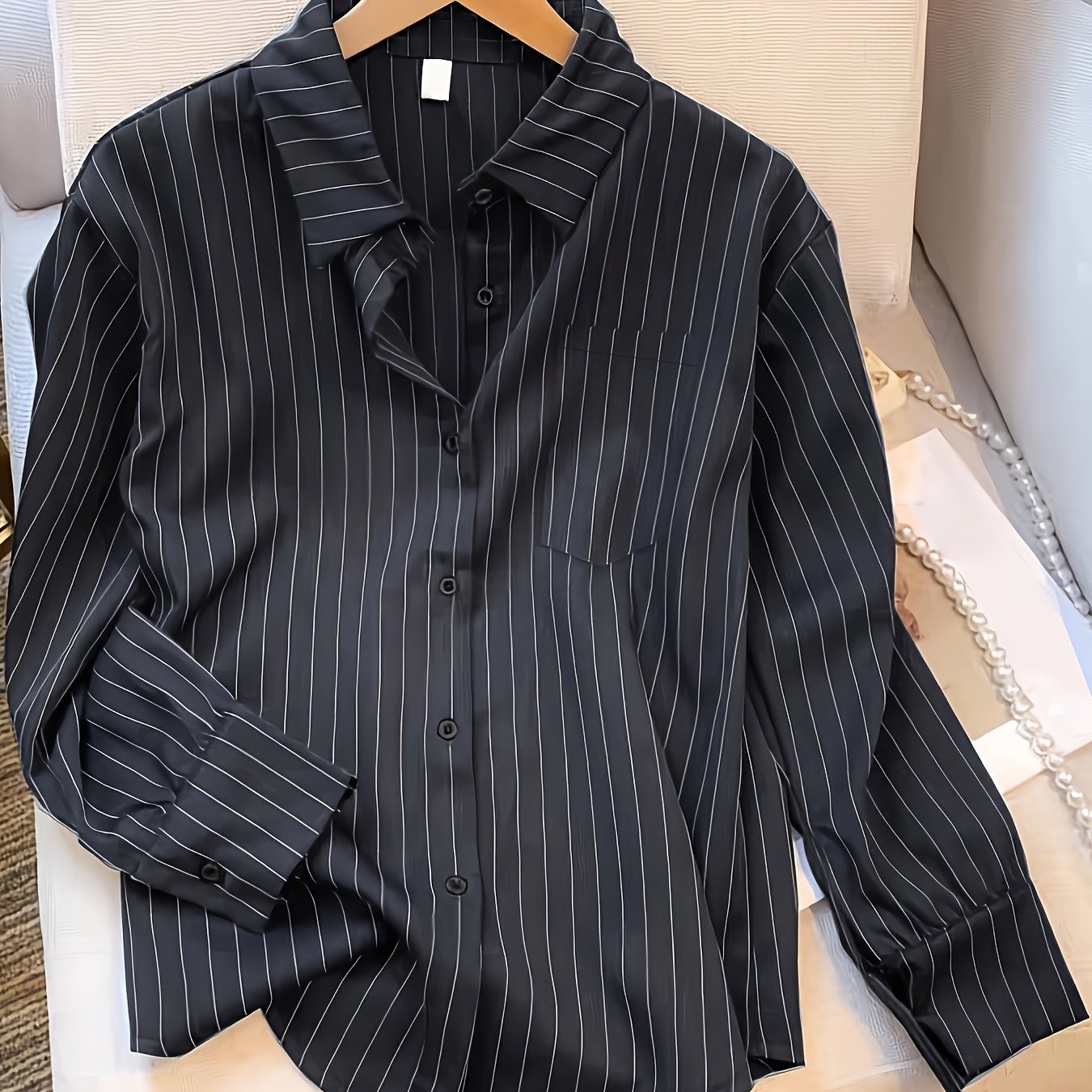 Chiziqli tugmachali ko'ylak, cho'ntaklari bilan, bahor va kuz uchun mukammal.