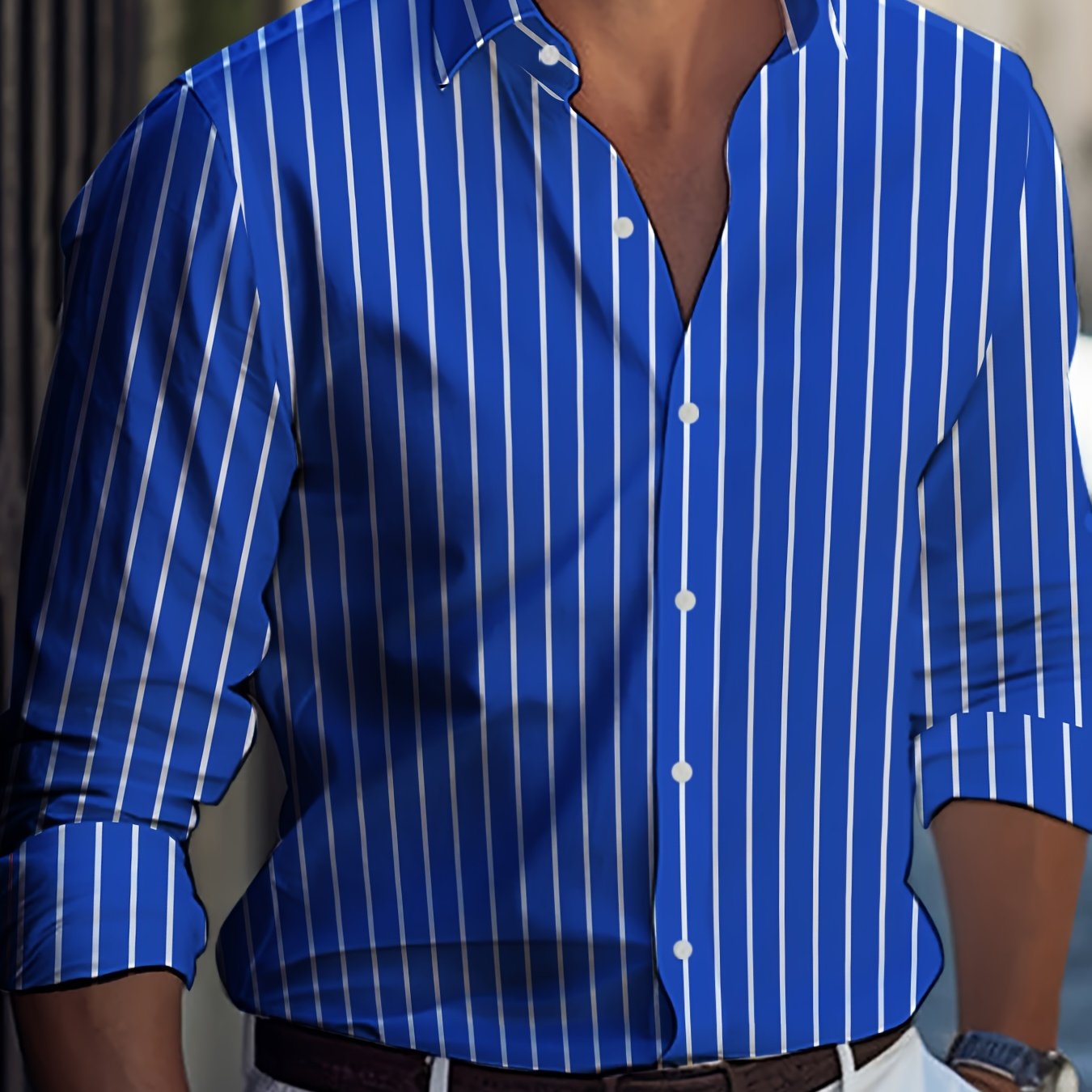Chiziqli printli katta o'lchamdagi erkaklar ko'ylagi turli holatlar uchun mos keladi