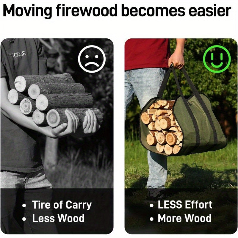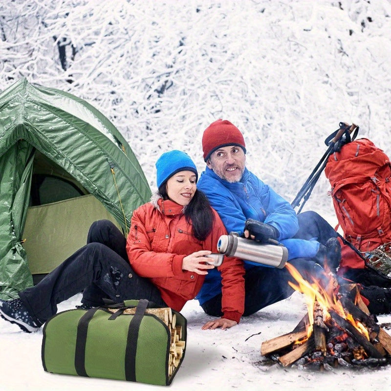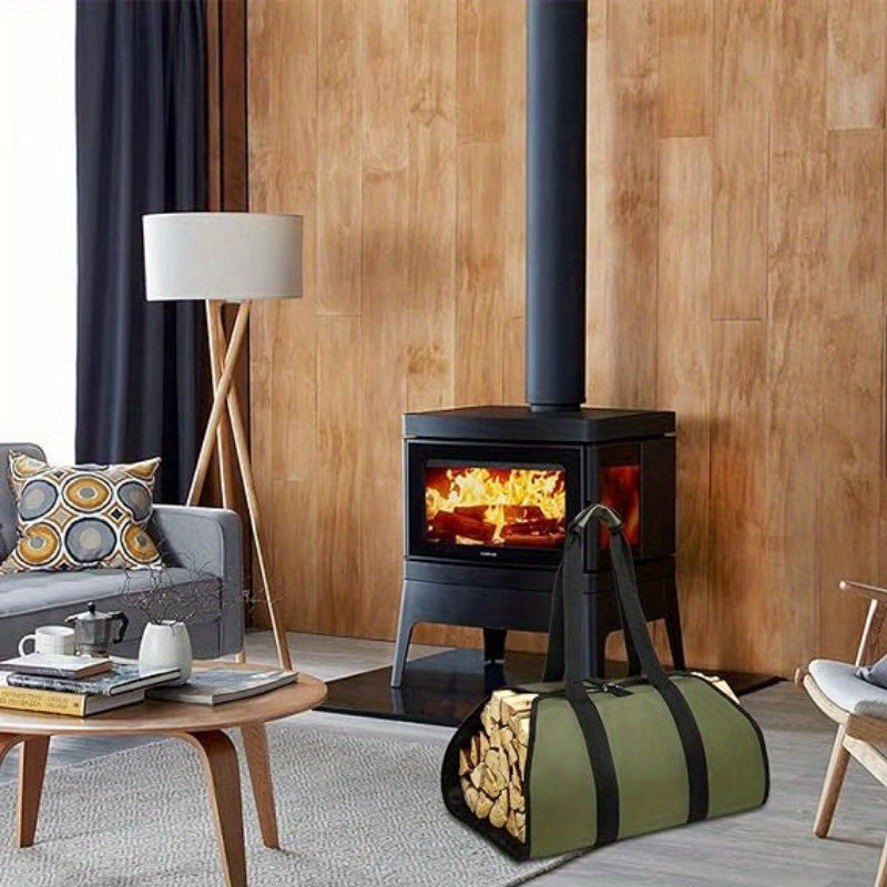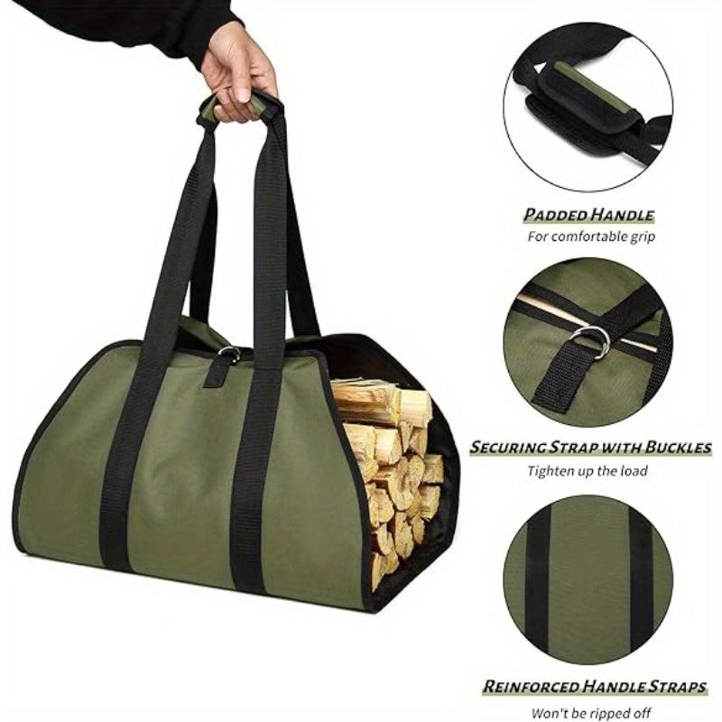 16oz laklangan kanvas o'tin tashuvchisi, tutqichlar bilan, suv o'tkazmaydigan yog'och sumkasi, yashil