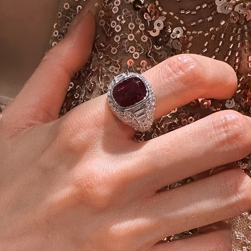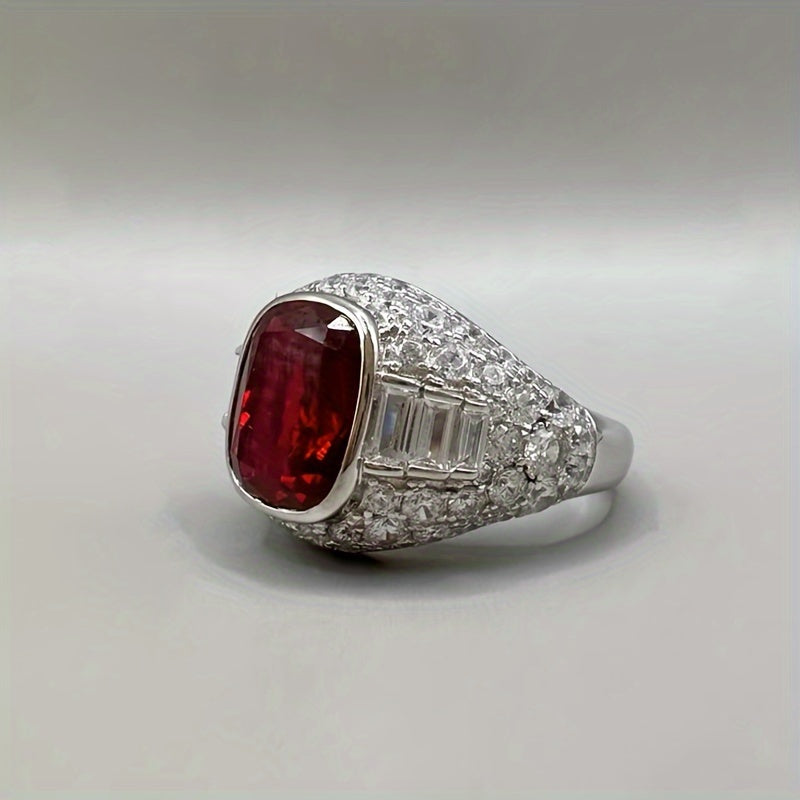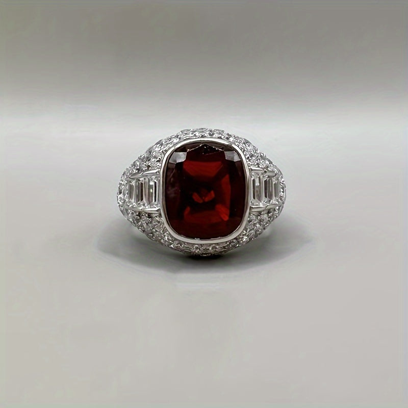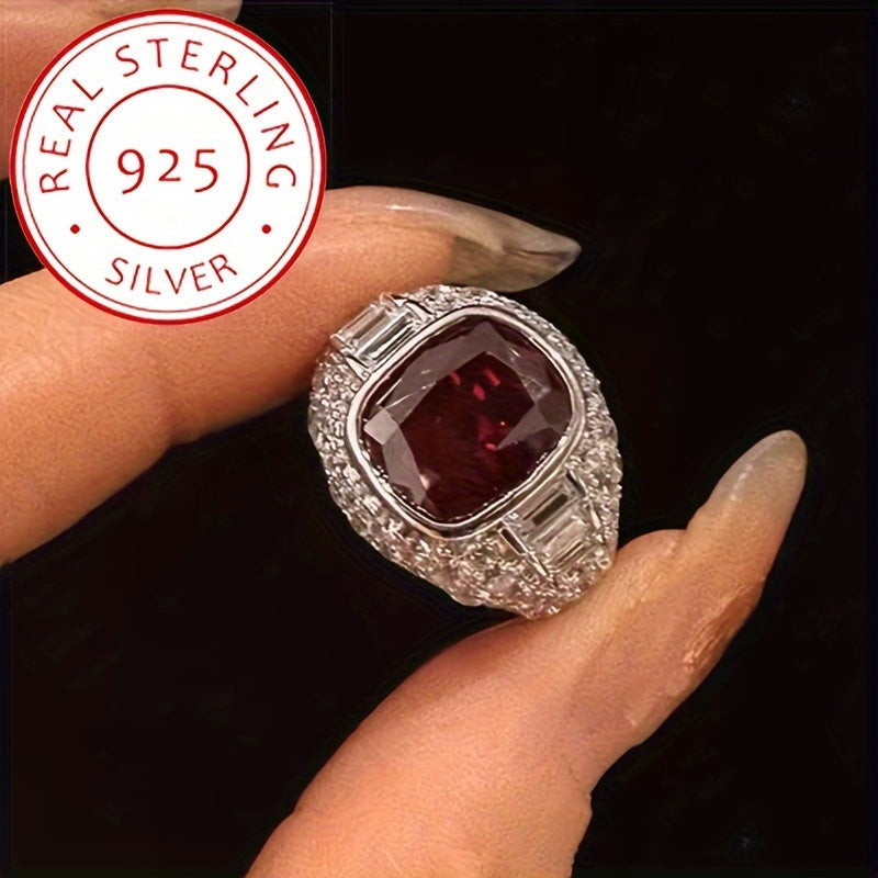 Ajoyib 925 sterling kumush to'y uzugi, kvadrat qizil tosh bilan - Ideal 14-fevral sovg'asi, yanvar uchun tug'ilgan tosh, sintetik zirkoniya qo'shilgan.