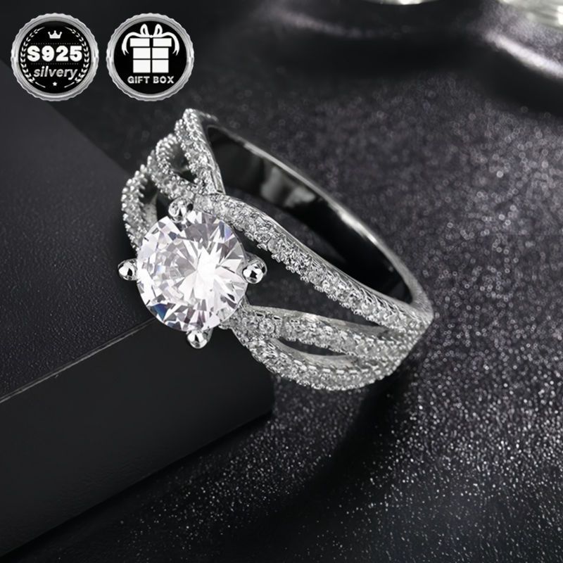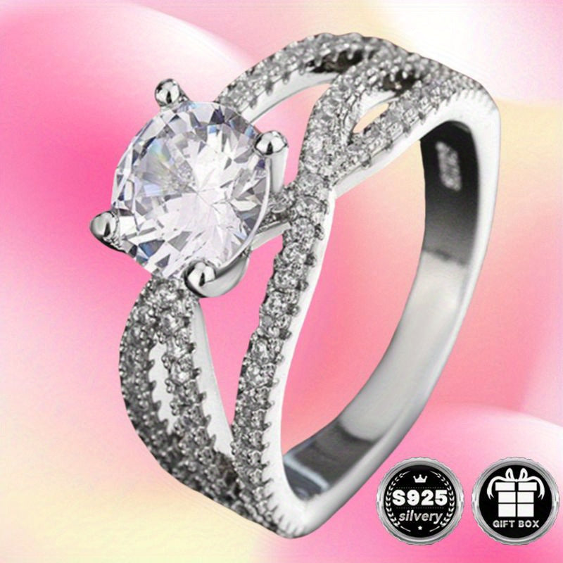 Ayollar uchun Zirconia bilan burilgan shank bilan Sterling Silver abadiy uzuk