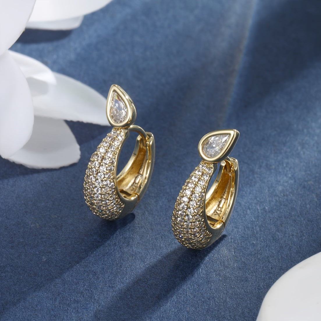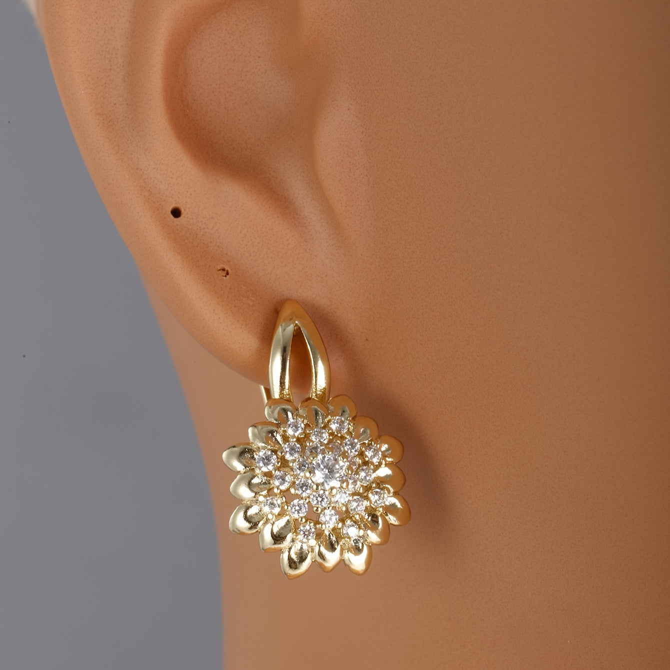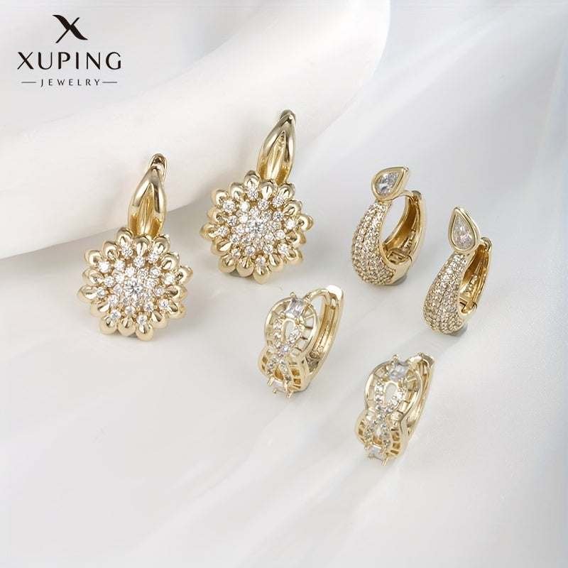 Ajoyib XUPING ZARGARLIK Gul Halqa Sirg'alar, Porloq Kubik Zirconia bilan, 14K Oltin Qoplangan Mis, Ayollar uchun - Har kuni hashamat va maxsus tadbirlar uchun nozik sirg'alar, Mukammal Qishloq Bayrami Sovg'asi