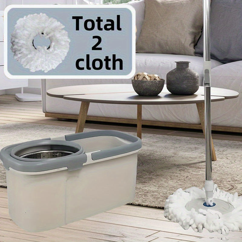 Mustahkam Ikki Harakatli Aylanadigan Mopa va Chelak To'plami - Oson Tozalash uchun 360° Boshli Kuchli Noxush Po'lat Tashqi Qo'l