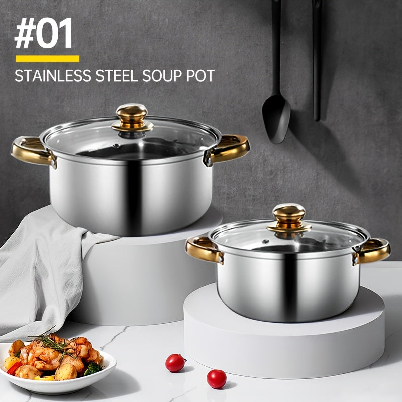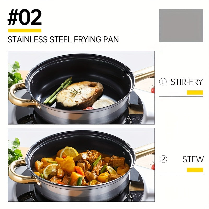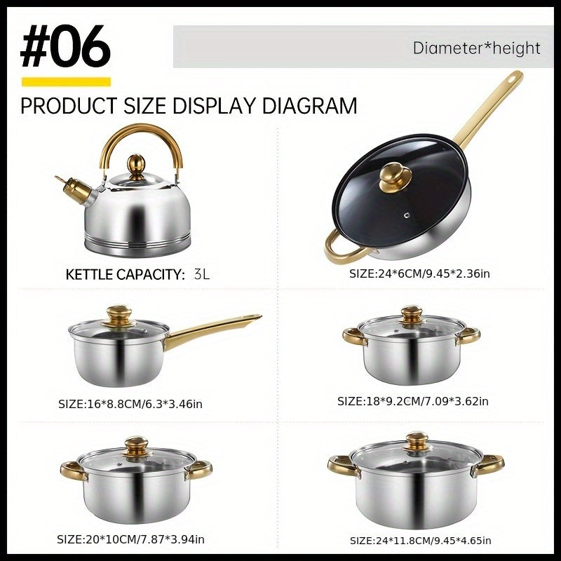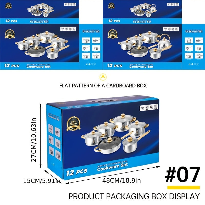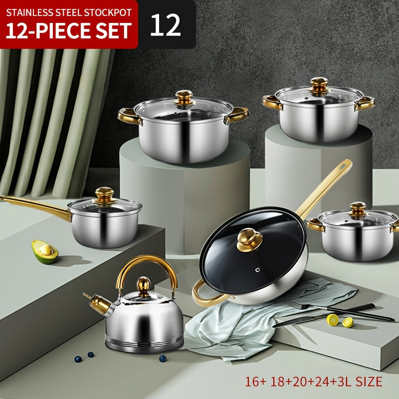 12-Donali zanglamaydigan po'latdan tayyorlangan idishlar to'plami, qozonlar, skovorodkalar, qopqog'lar, sho'rva qozoni, sous qozoni