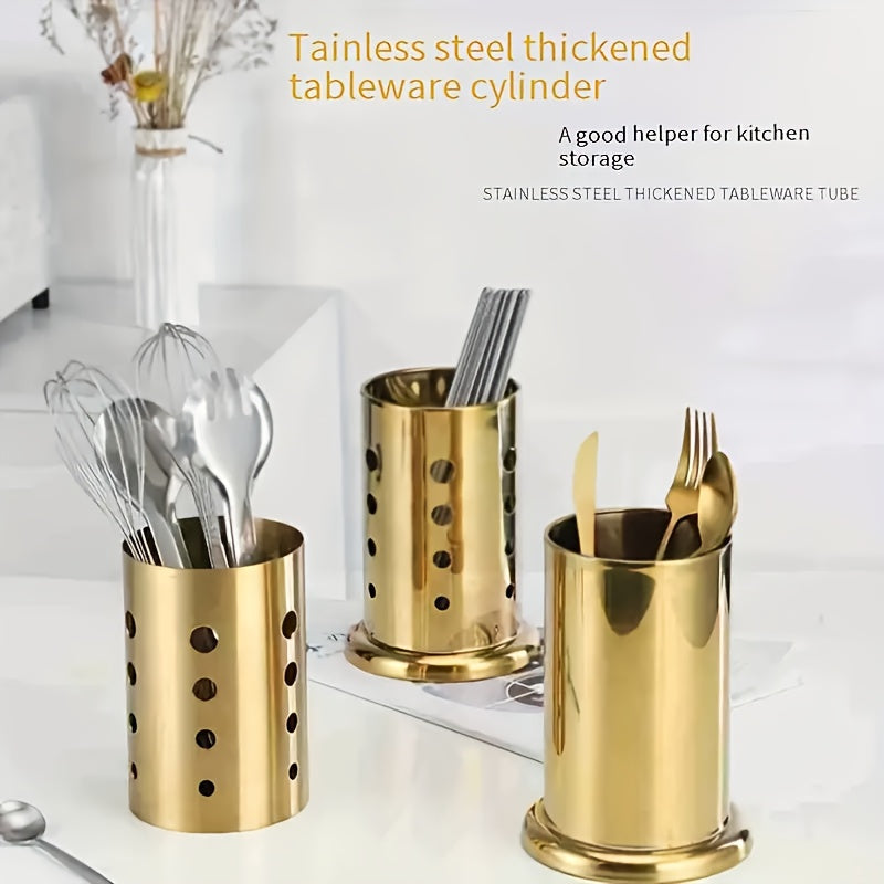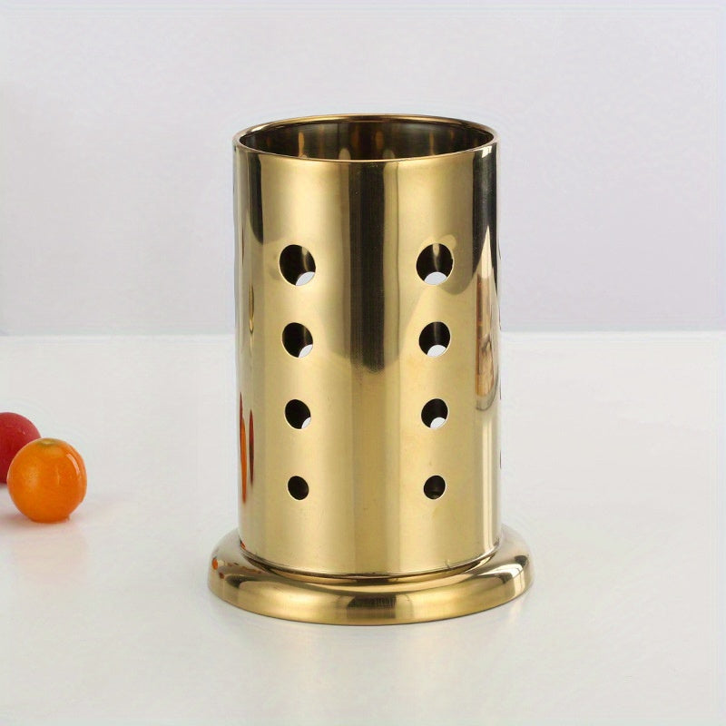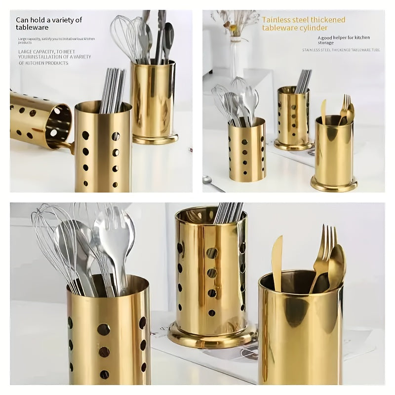 Zarif 1 dona zanglamas po'latdan yasalgan qozon ushlagich, oltin qoplama - qoshiq, vilkalar va pichoq uchun oziq-ovqat xavfsizligi bilan ushbu qozonda oshxona asboblaringizni tartibga soling va xavfsiz saqlang.