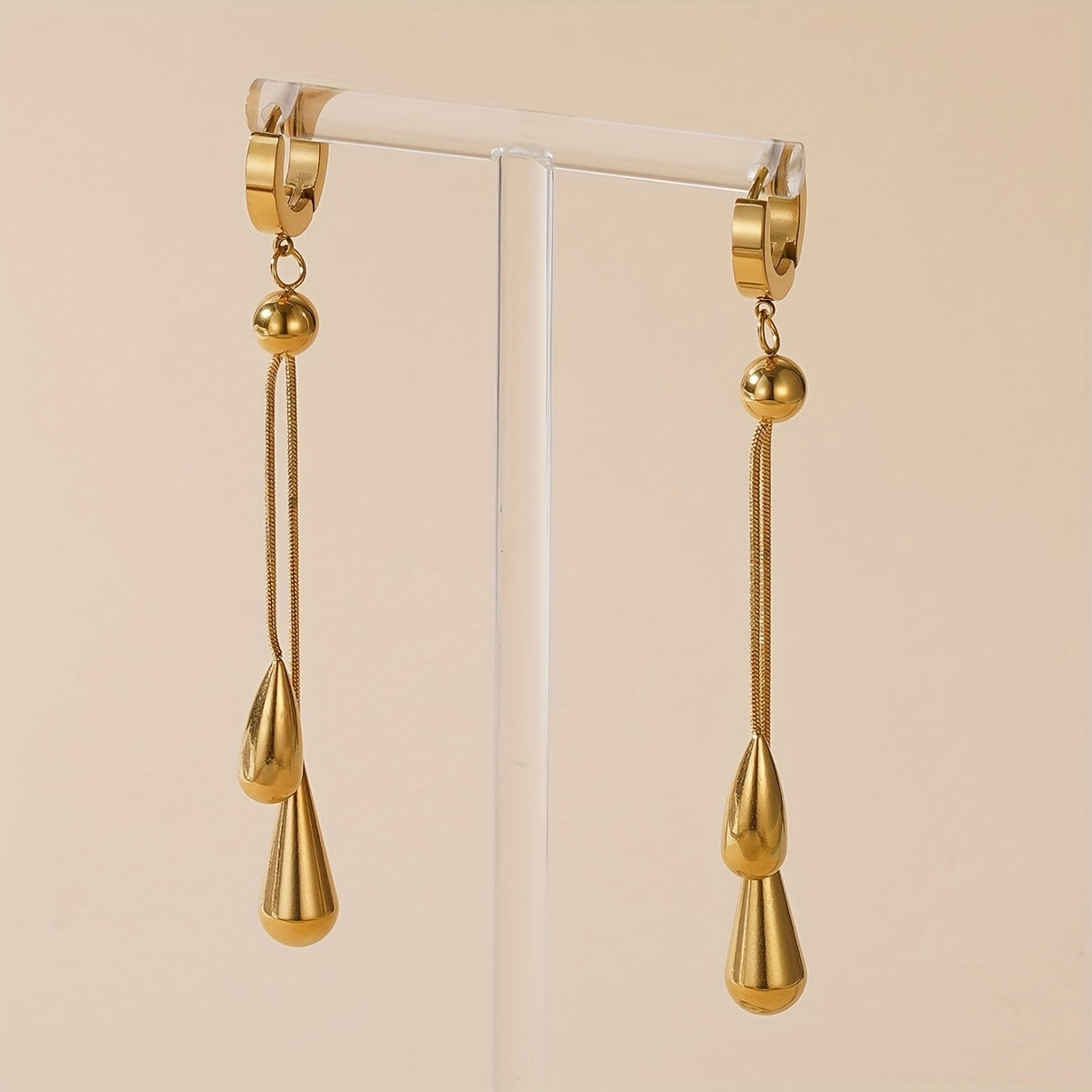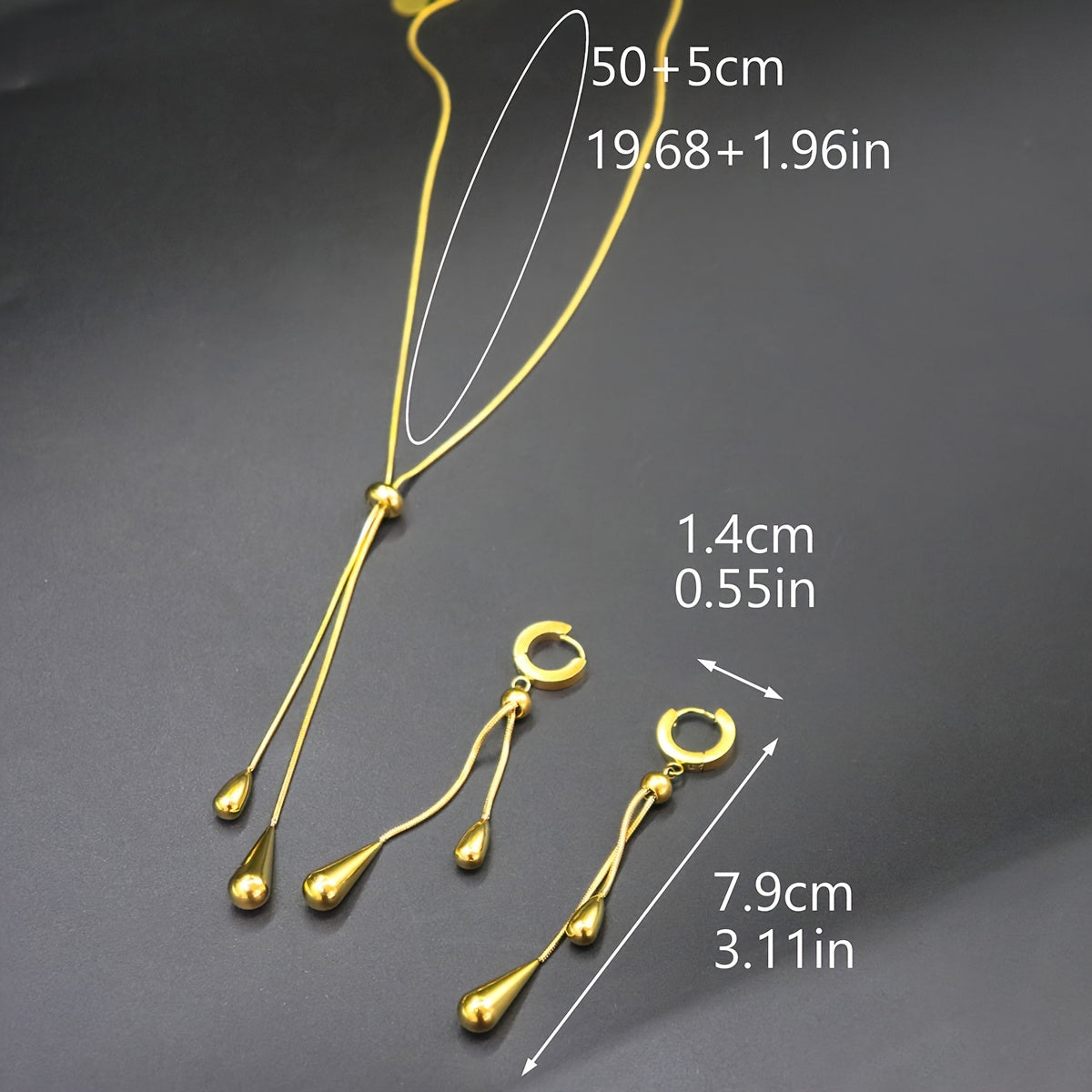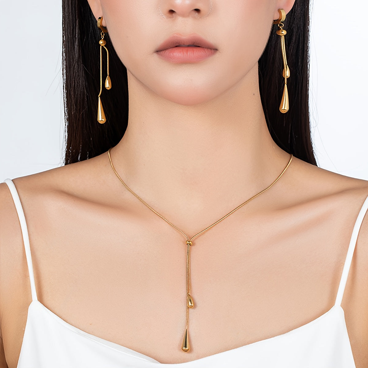 3-ta bo'lakli zargarlik to'plami: suv tomchisi pendantsli taqinchoq va sirg'alar, oltin qoplangan titan po'lat, gipoallergik, vintage