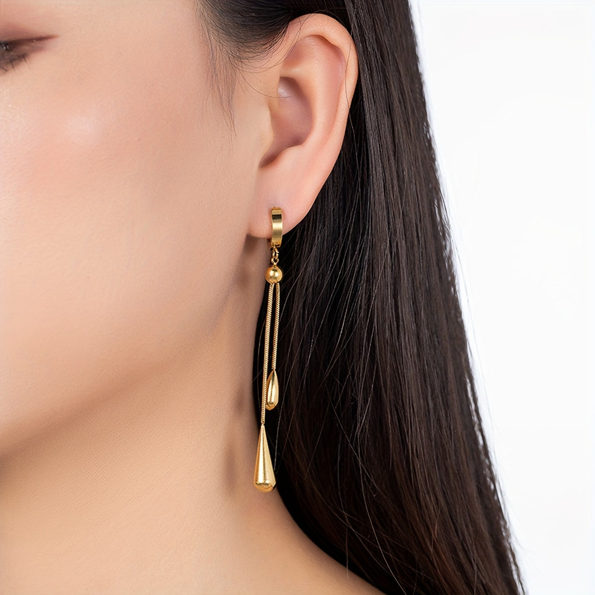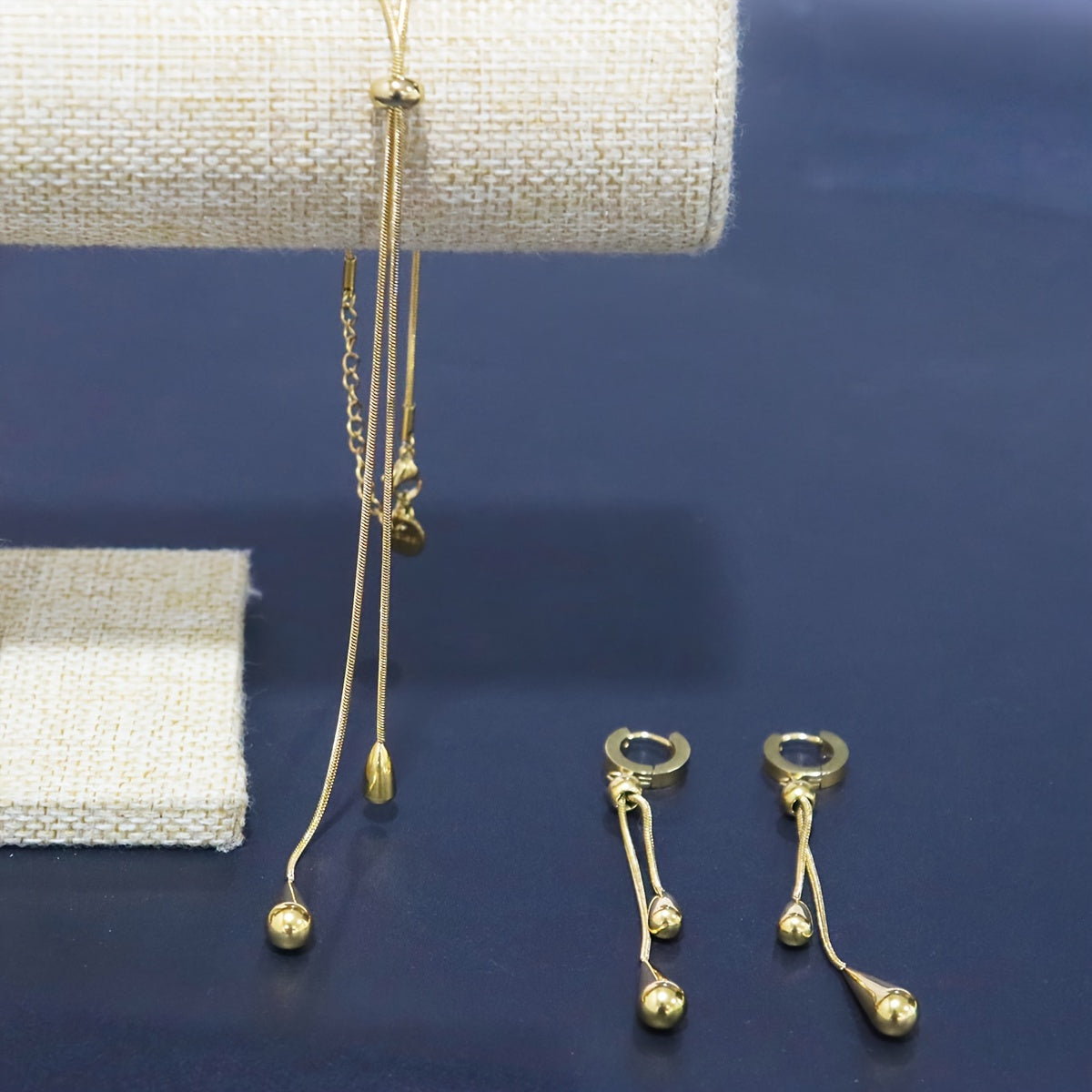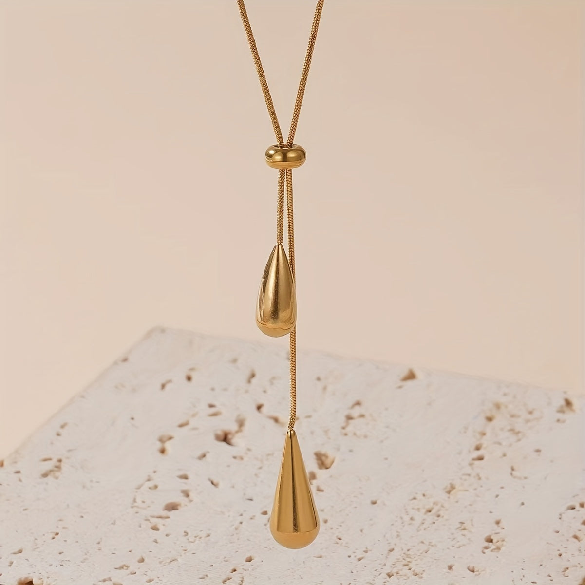 3-ta bo'lakli zargarlik to'plami: suv tomchisi pendantsli taqinchoq va sirg'alar, oltin qoplangan titan po'lat, gipoallergik, vintage