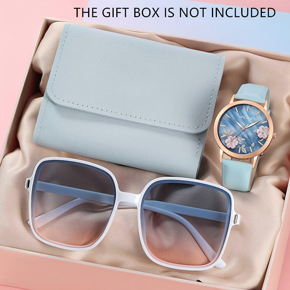 Ayollar modasi soati to'plami, kvarts mexanizmi, sun'iy charm bilan taqilgan va hamyon bilan