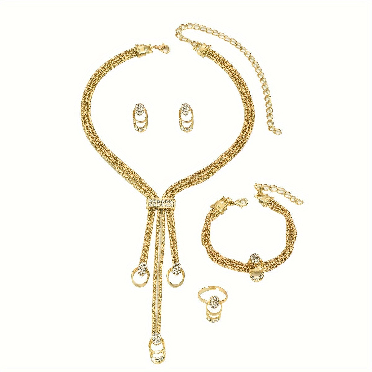 Ayollar uchun 5 ta bo'lakli zargarlik buyumlari to'plami, rhinestone qovurg'a chiziqli taqinchoq, marjon, sirg'a, uzuk