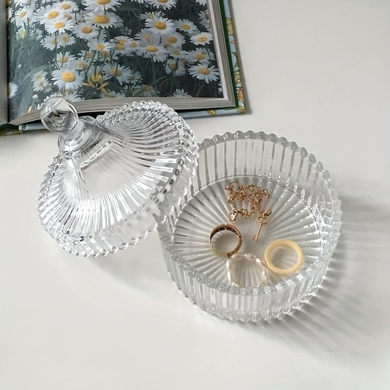 Retro shisha zargarlik buyumlarini saqlash bankasi, qopqog' bilan, aksessuarlarni tartibga solish uchun