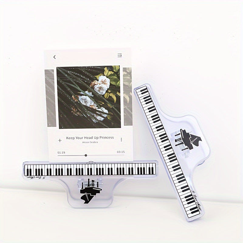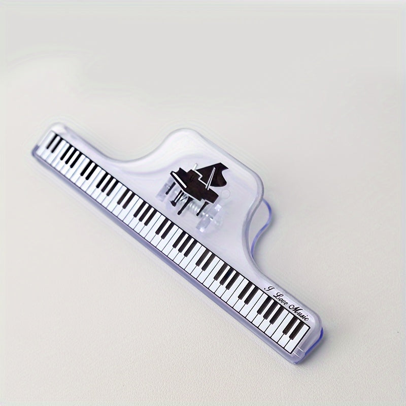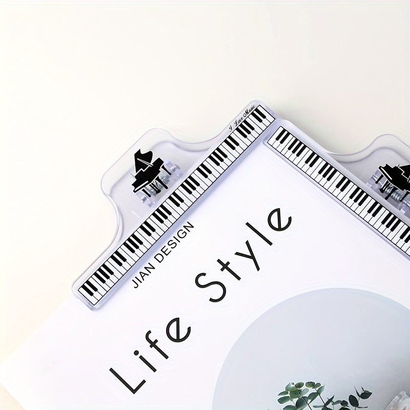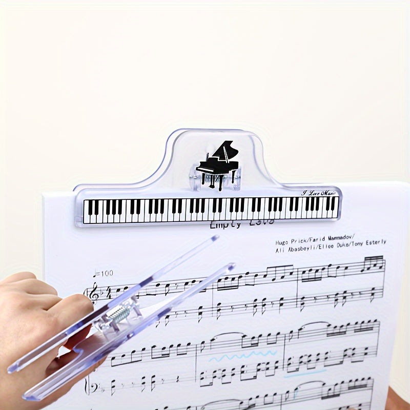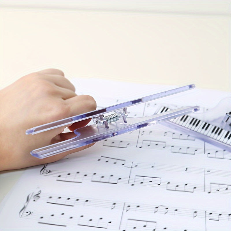 Usul va bardoshli shaffof pianino notalari kliplari, xodim notasi bilan. Pianino partitalarini va notalarni tartibga solish uchun mukammal. Qora va shaffof variantlarda mavjud. Qog'ozni mustahkam ushlab turadi.