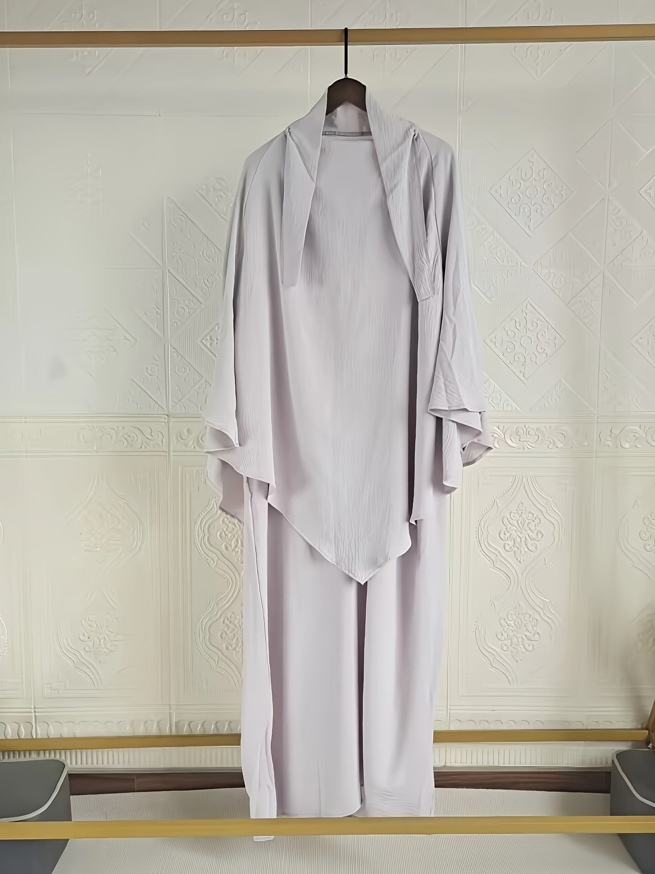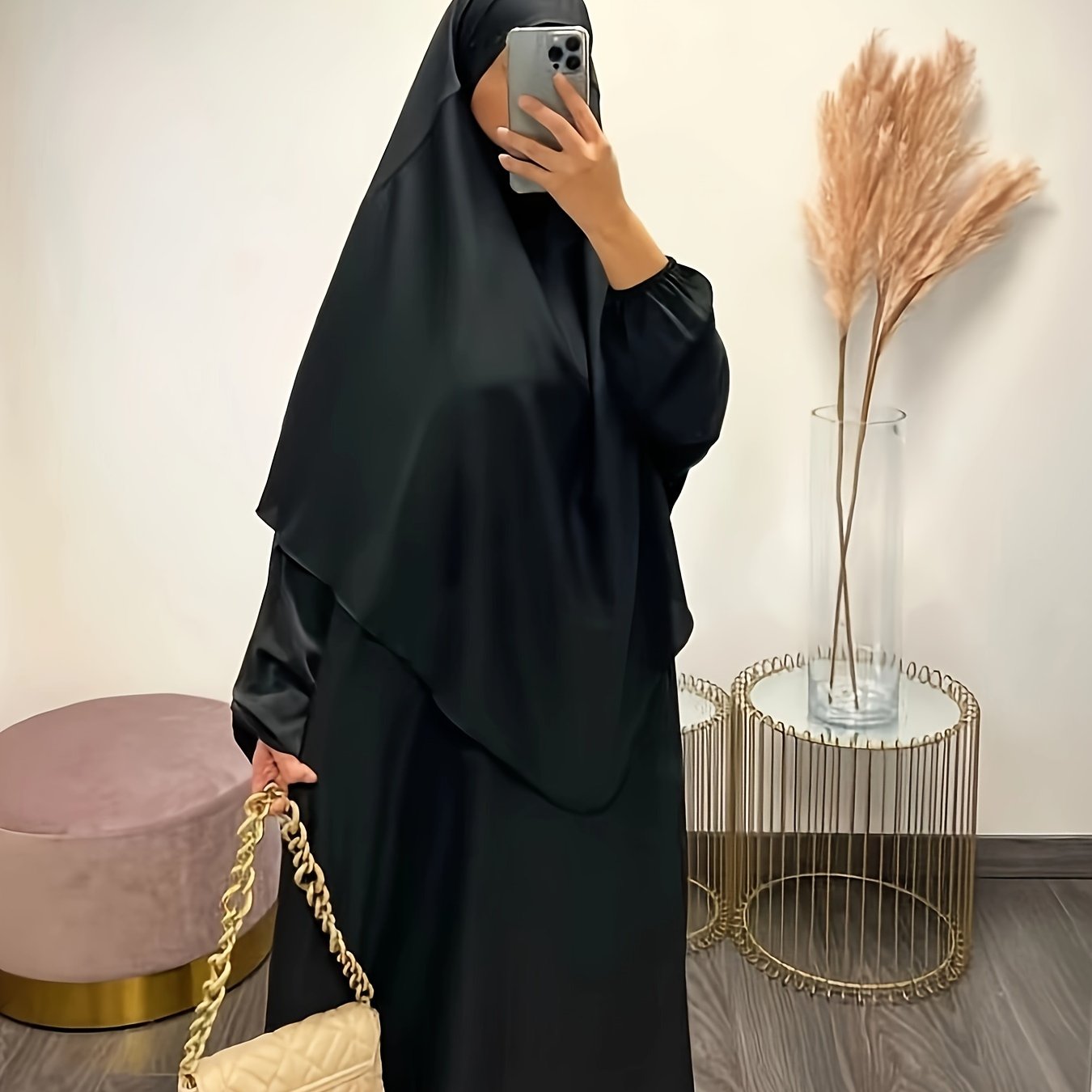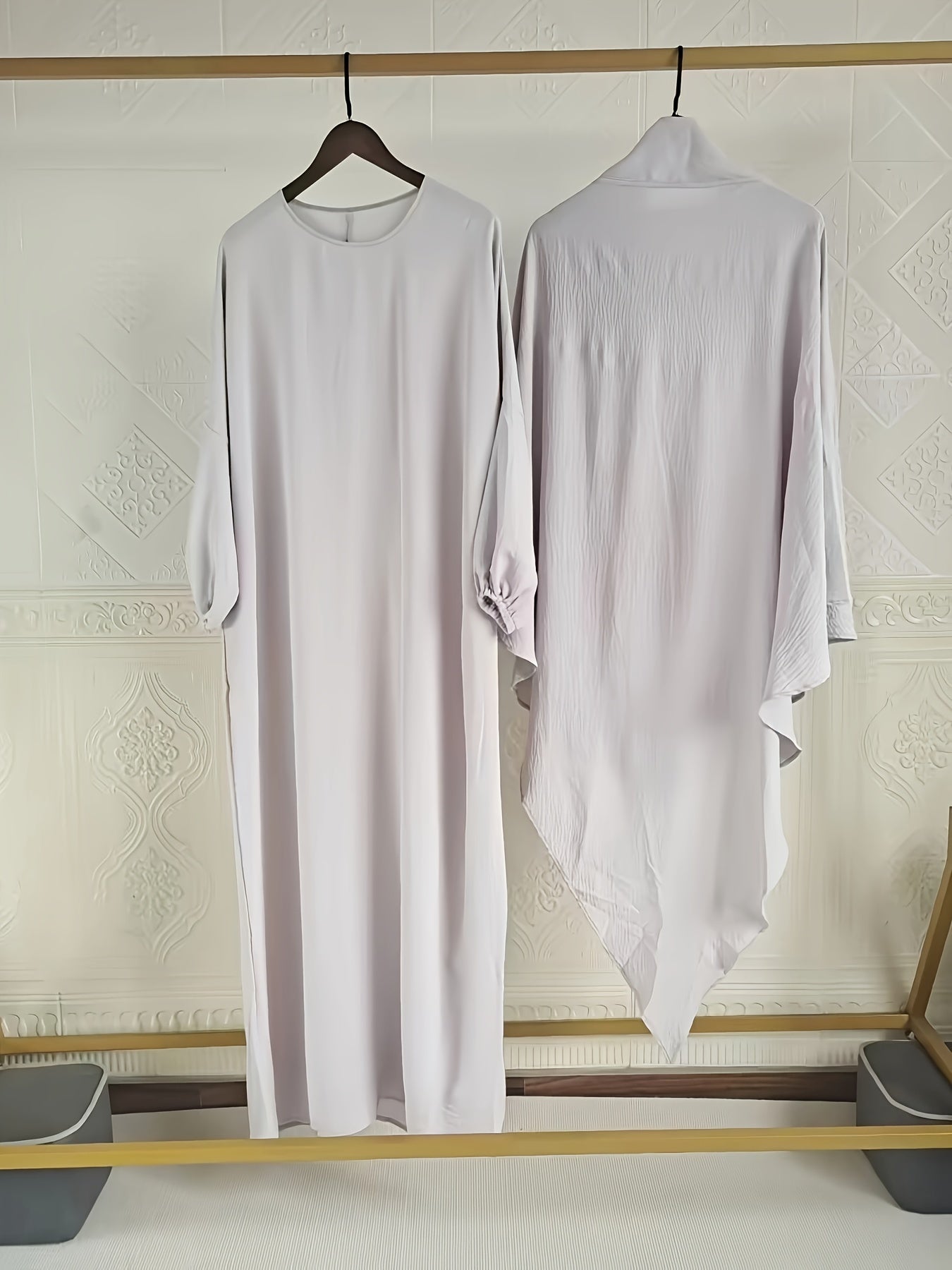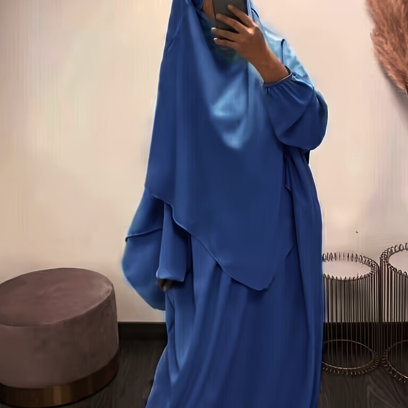 Usmon rangidagi zamonaviy qushqon yengli Ramazon ro'be, musulmon ayollar uchun katta o'lchamda.