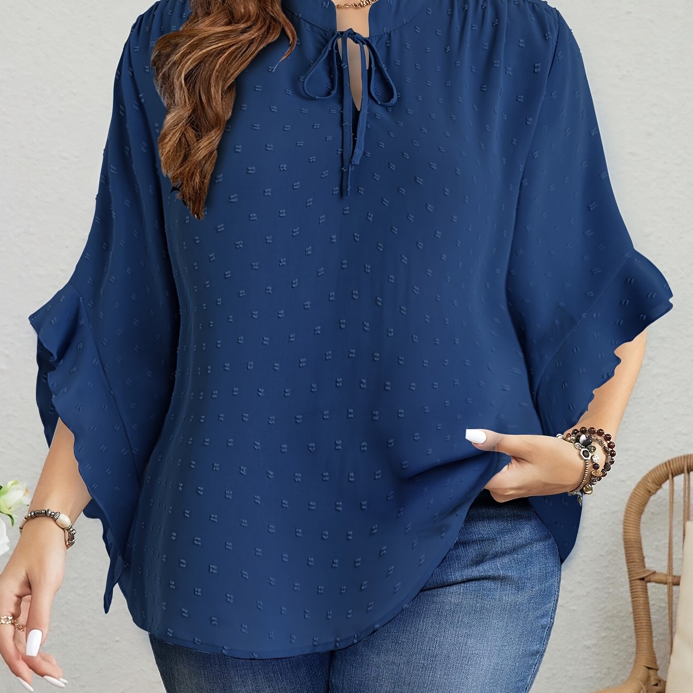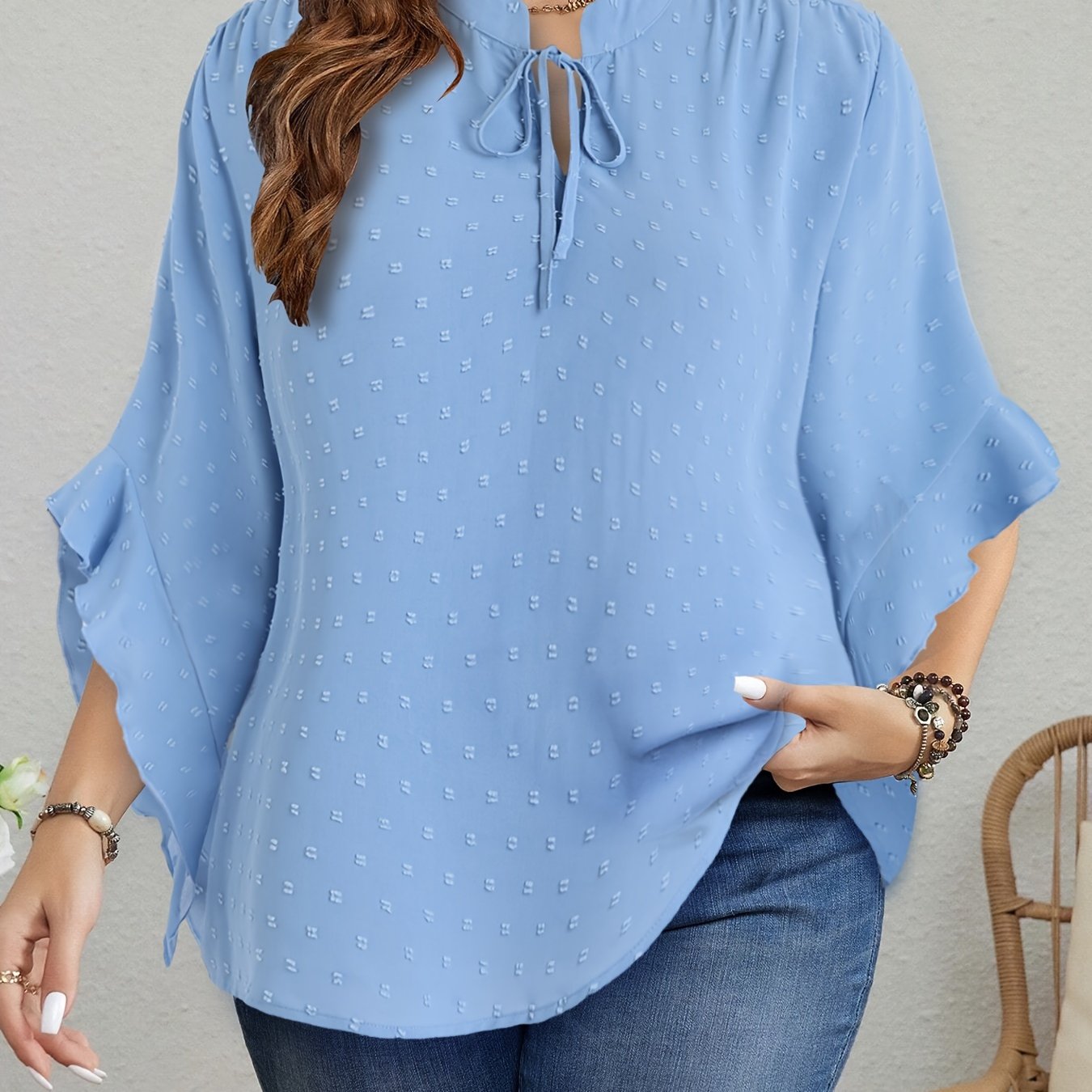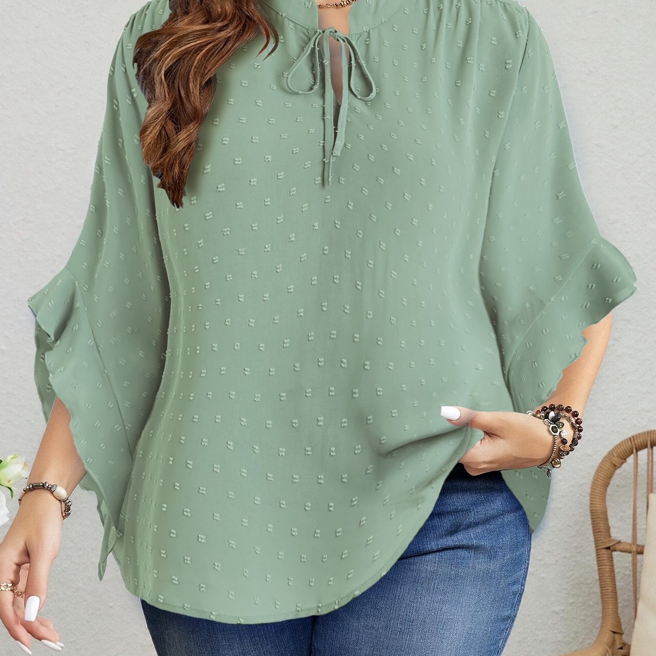 Bej Shveytsariya nuqtali bluz, ruffle bilan bezatilgan, bog'lamali bo'yin, uzun qo'lli, kuz vintage uslub