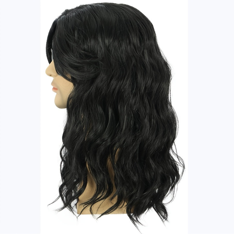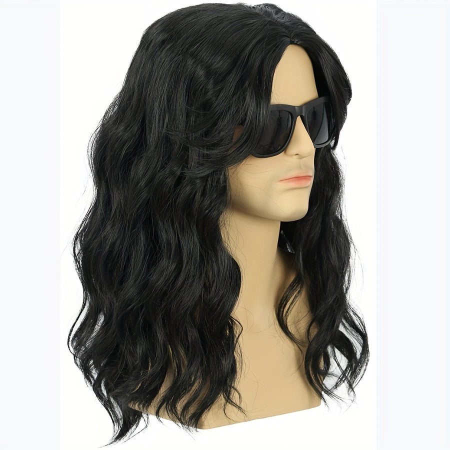 Erkaklar uchun qora uzun mo'ynali, qalin, qimirlagan sochli parik, oddiy kechki partiya, Xellouin kostyumlari