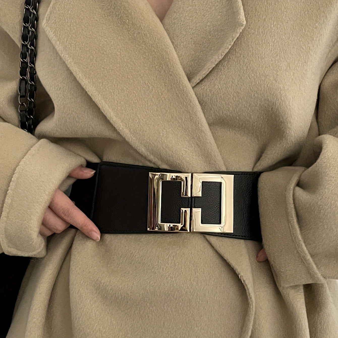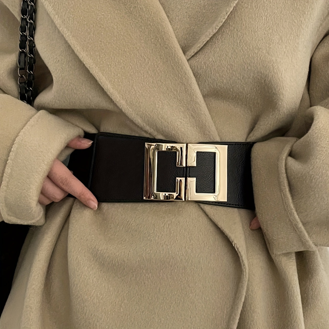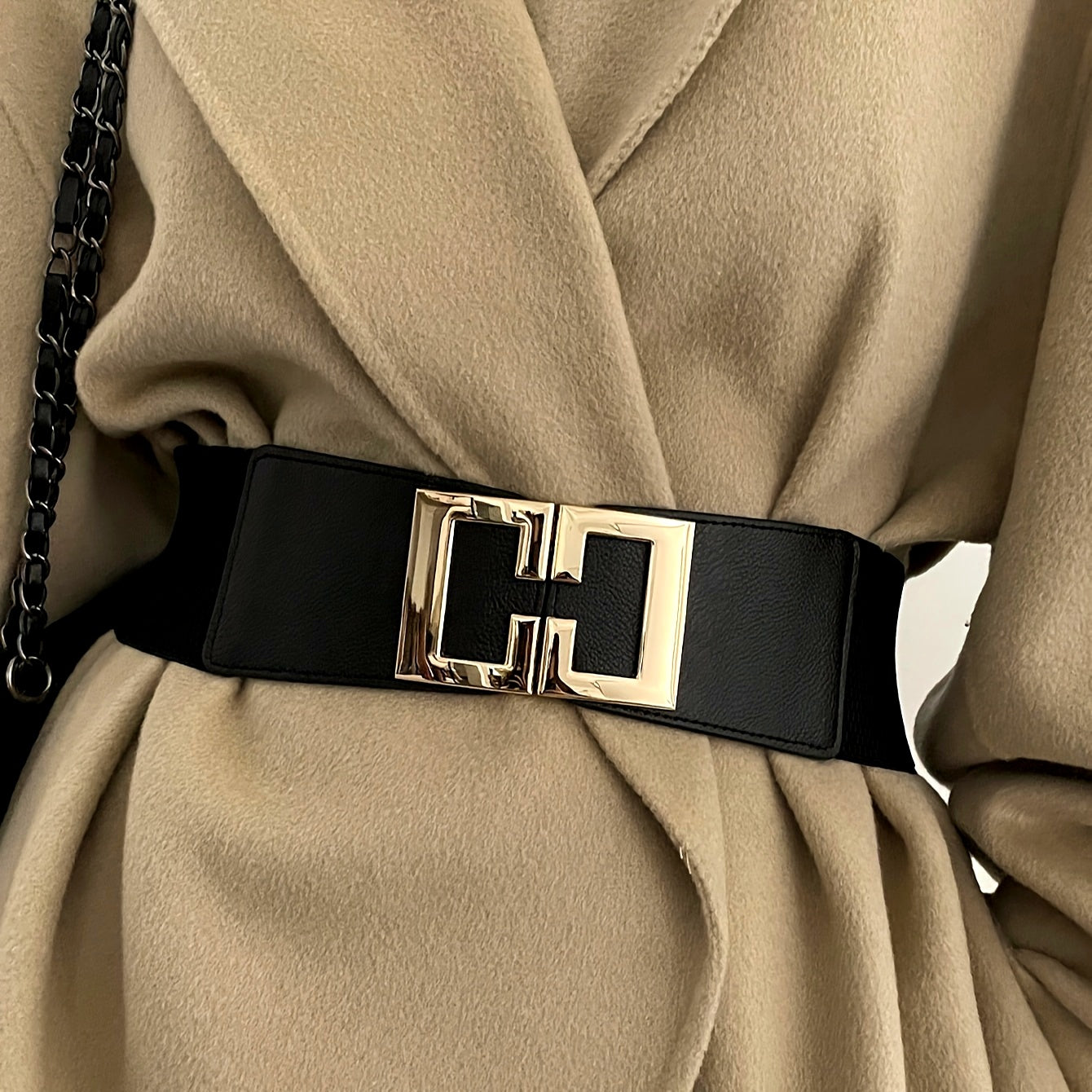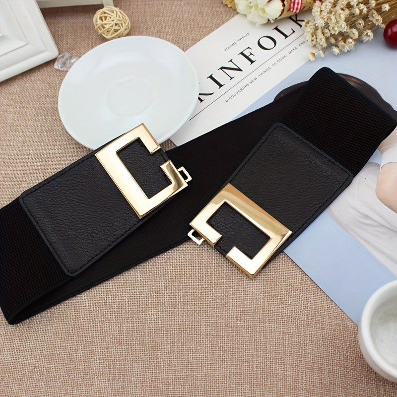 Ayollar kiyimlari va kurtkalar uchun Geometrik tokchali qora keng kamar