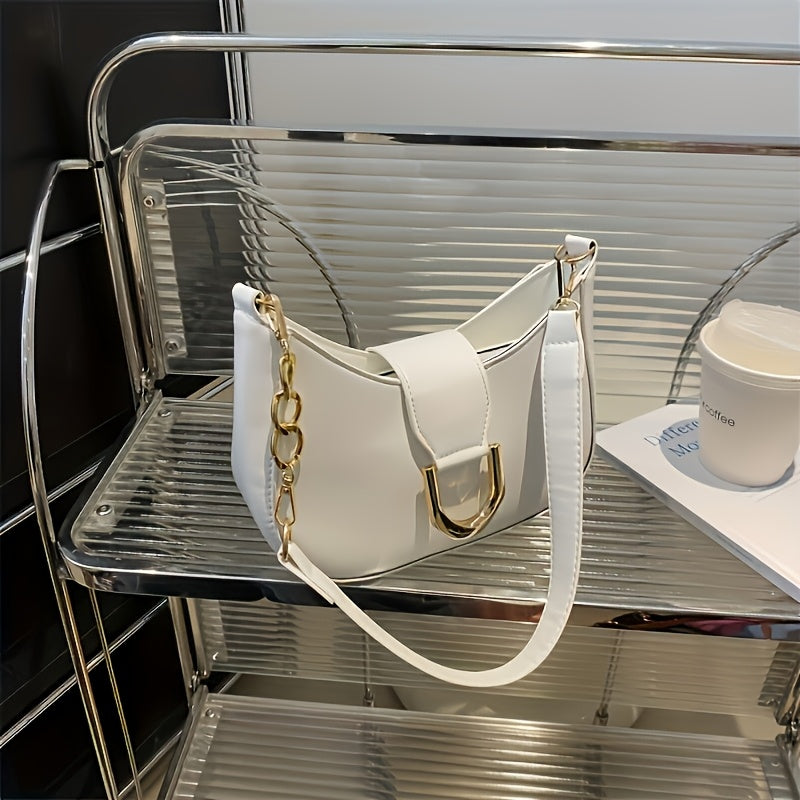 Yarim oy shoulbagi, zip yopilishi bilan polyester ichki qismi, kundalik foydalanish uchun, oq, qora, khaki ranglarda