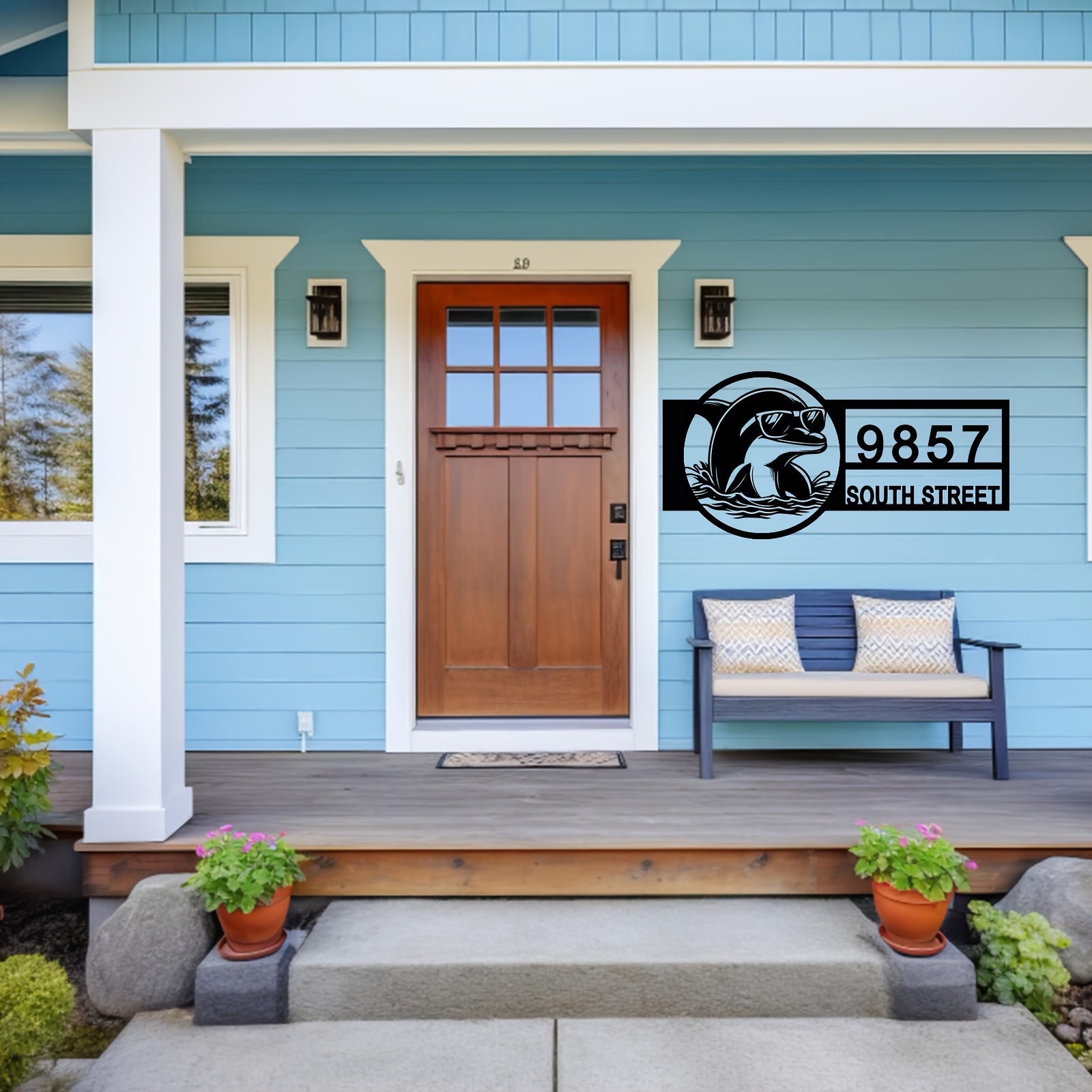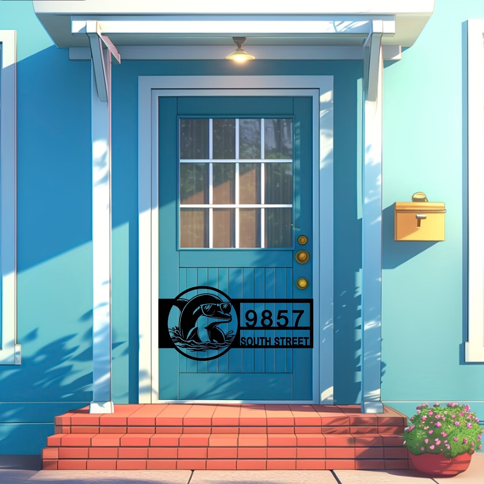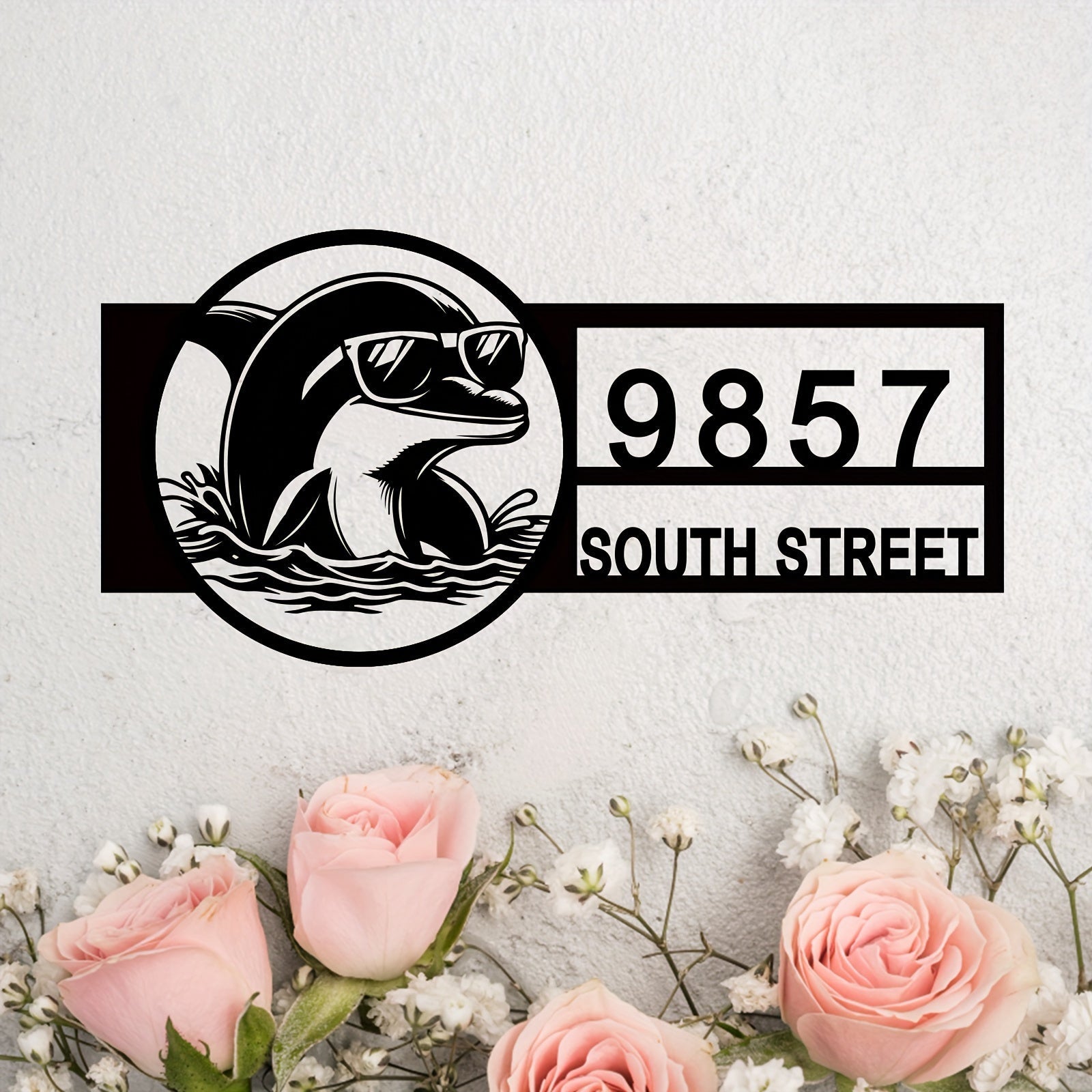 Zamonaviy Delfin Metall Manzil Belgisi - Ko'zoynakli - Qora, Plyajga Ilhomlangan Tashqi Uy Raqami Plaketi, Uyga O'tish yoki Yangi Uy Sovg'asi Uchun Mukammal