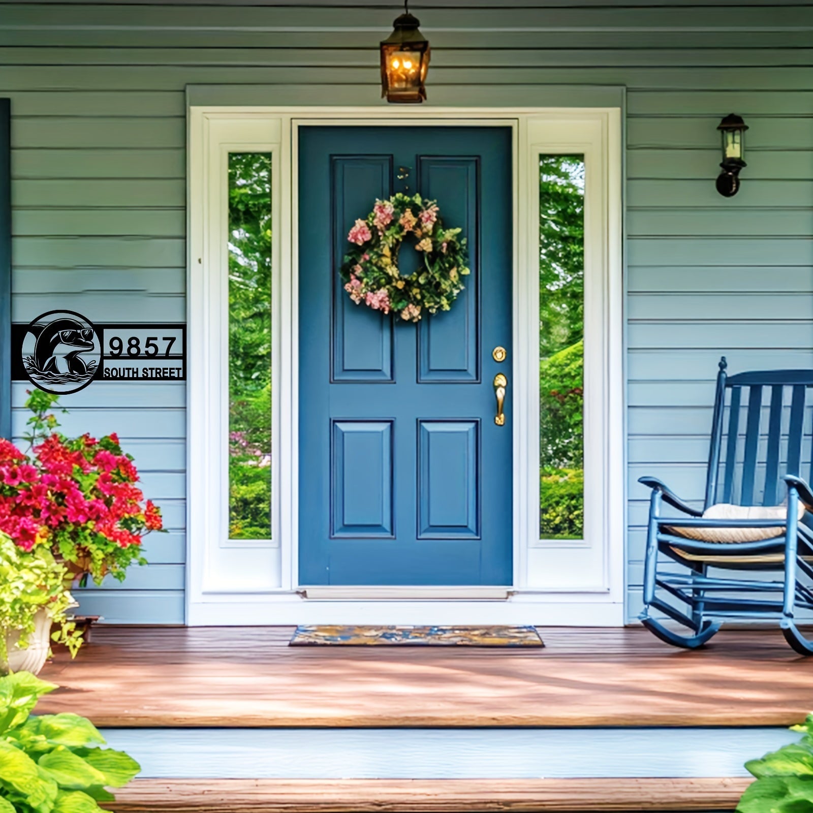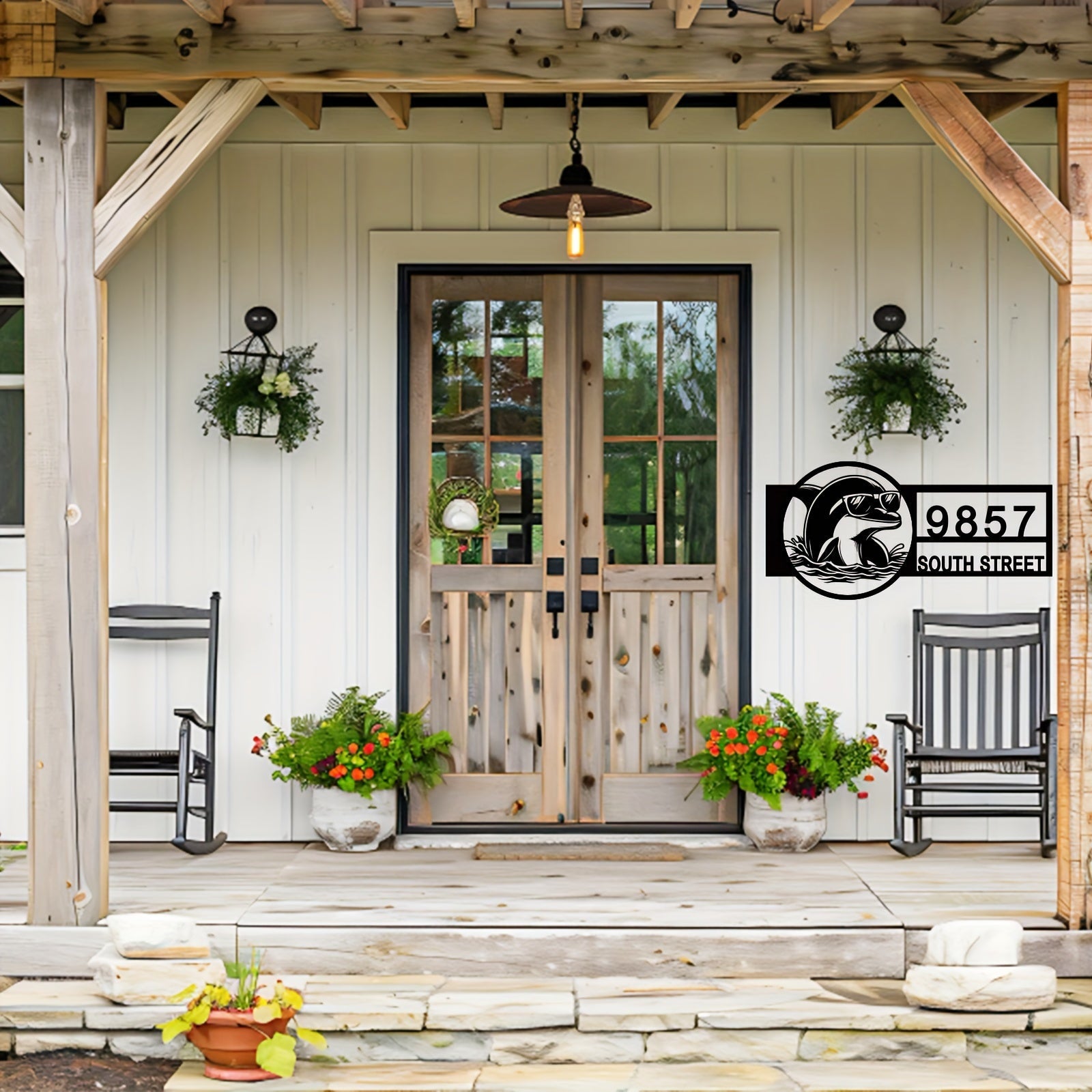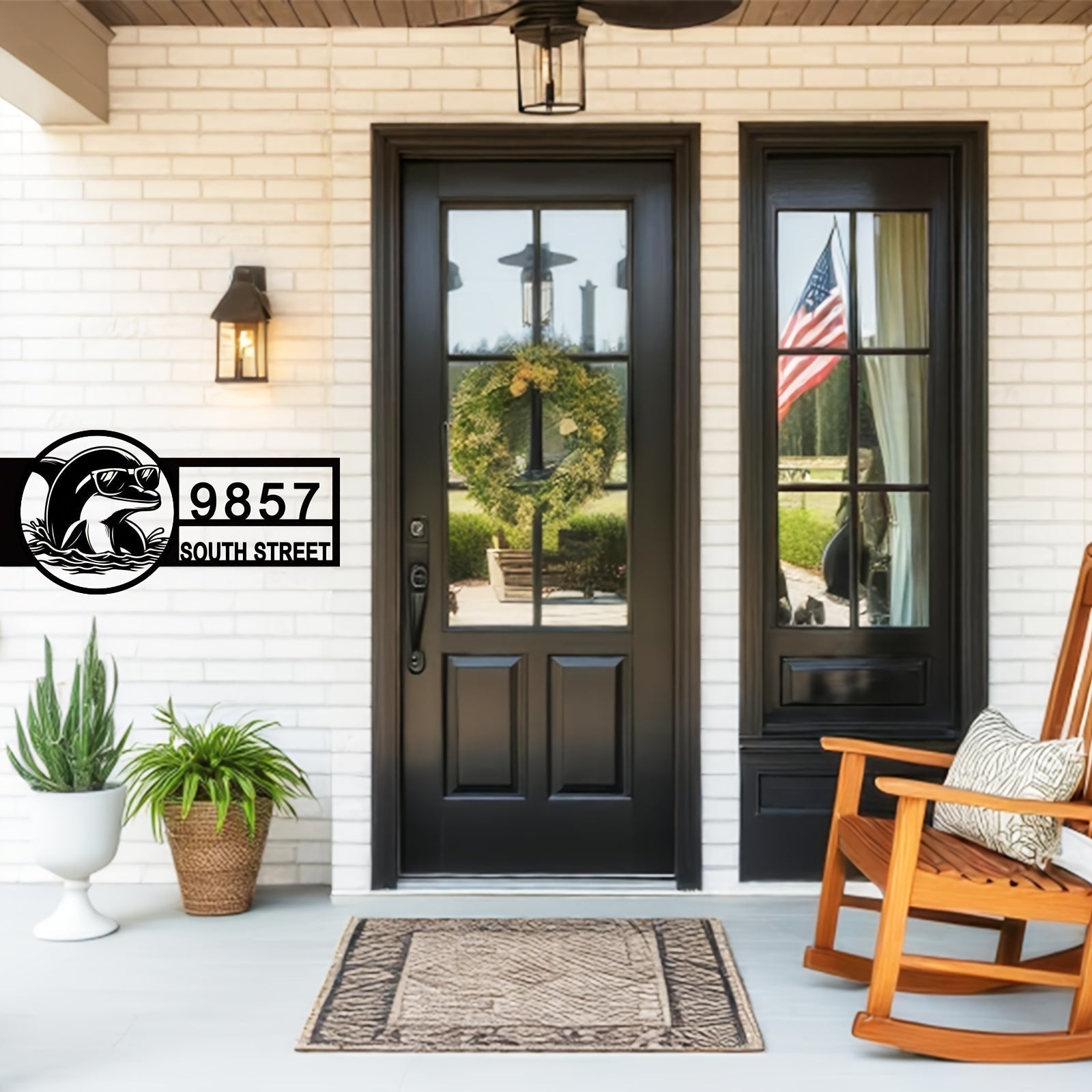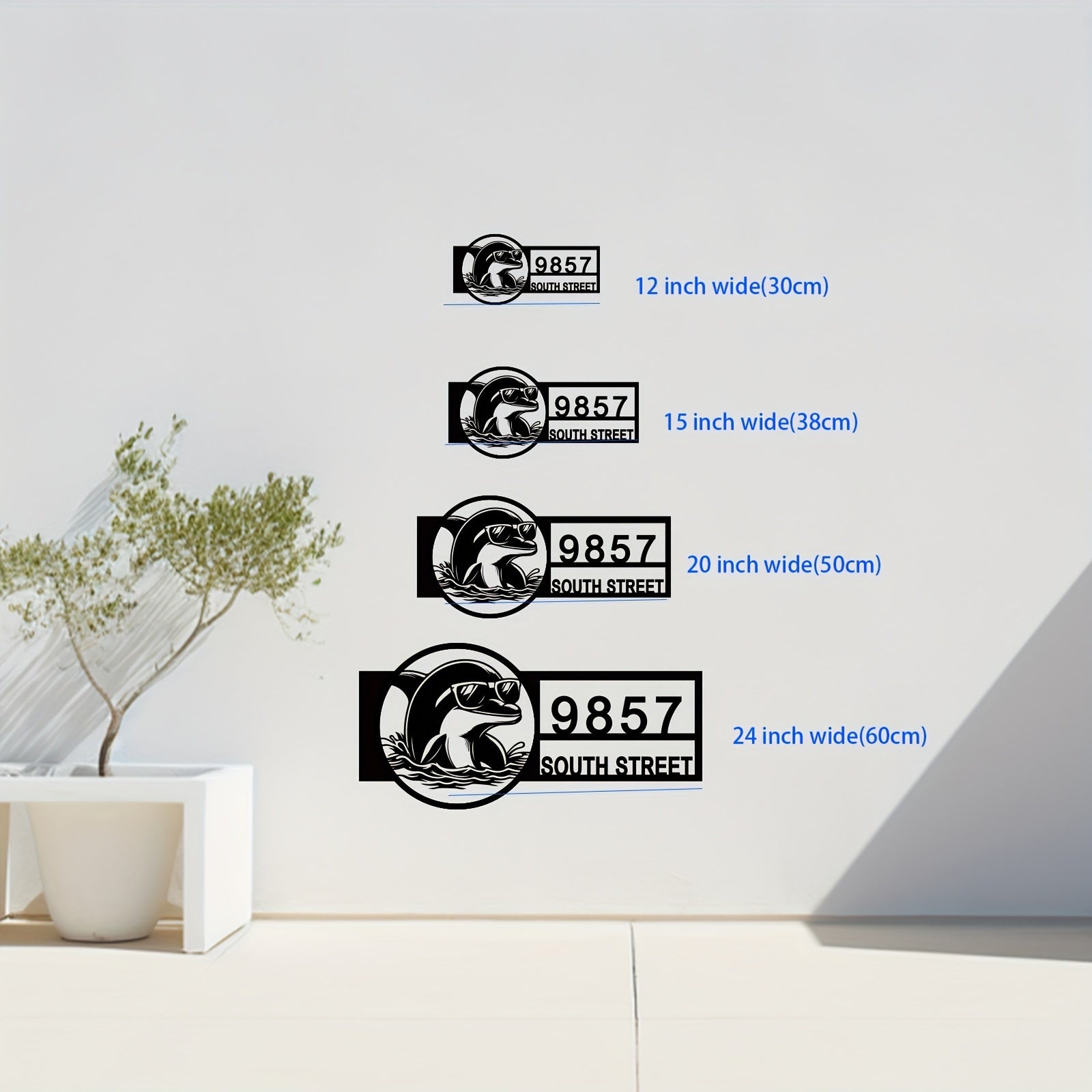 Zamonaviy Delfin Metall Manzil Belgisi - Ko'zoynakli - Qora, Plyajga Ilhomlangan Tashqi Uy Raqami Plaketi, Uyga O'tish yoki Yangi Uy Sovg'asi Uchun Mukammal