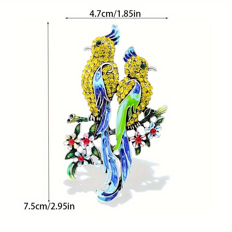 Zinati porloq rhinestone'lar bilan bezatilgan zamonaviy emal qush broshkasi - g'alati vintage hayvon pin, ayollar va yosh ayollar uchun ideal moda aksessuari.