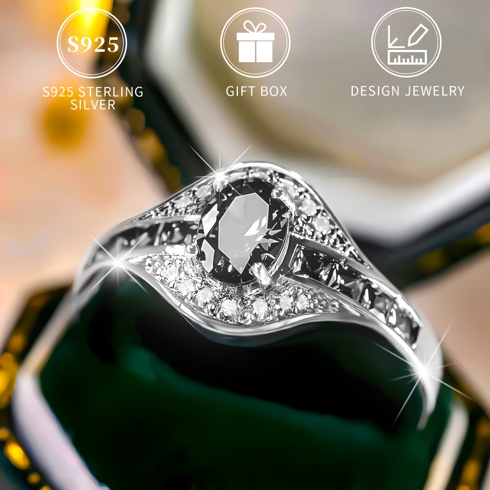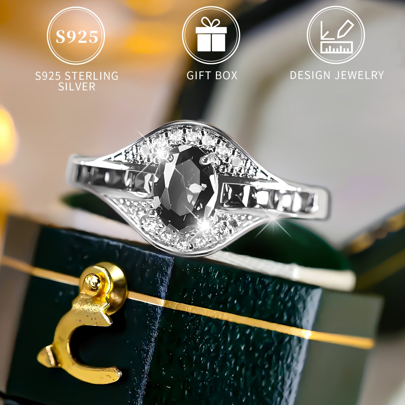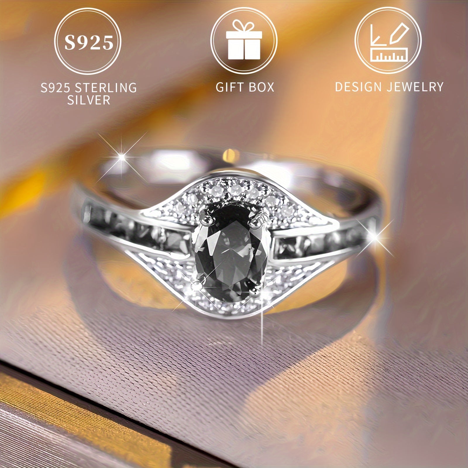 Qora sintetik kubik zirkoni bilan zamonaviy "Ishonch Ko'zi" uzuk, sterling kumushdan tayyorlangan, gippoallergen va nikel-free, to'ylar, partiyalar va Sevgililar kuni kabi maxsus tadbirlar uchun mukammal - Sovg'a qutisi bilan birga keladi.
