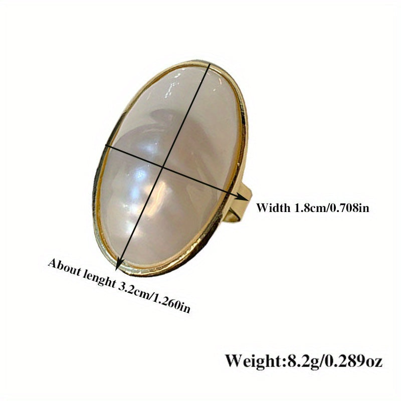 Zamonaviy Geometrik Usulda Stylish Faux Pearl Ring - Moslashuvchan O'lchov, Maxsus Tadbirlar Uchun Ideal, Ellips Shakli, Ochiq Shank, Trendy Aksessuar, Model J213