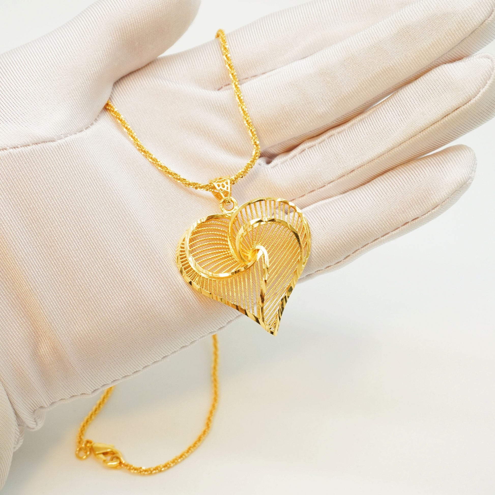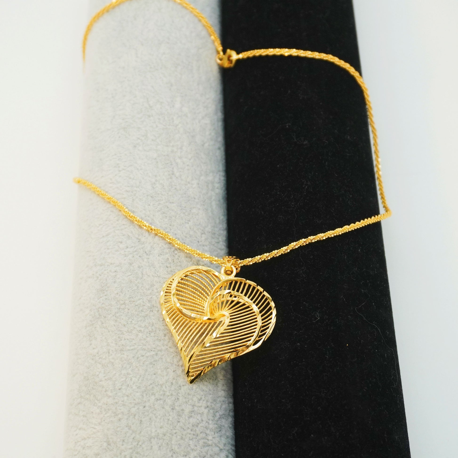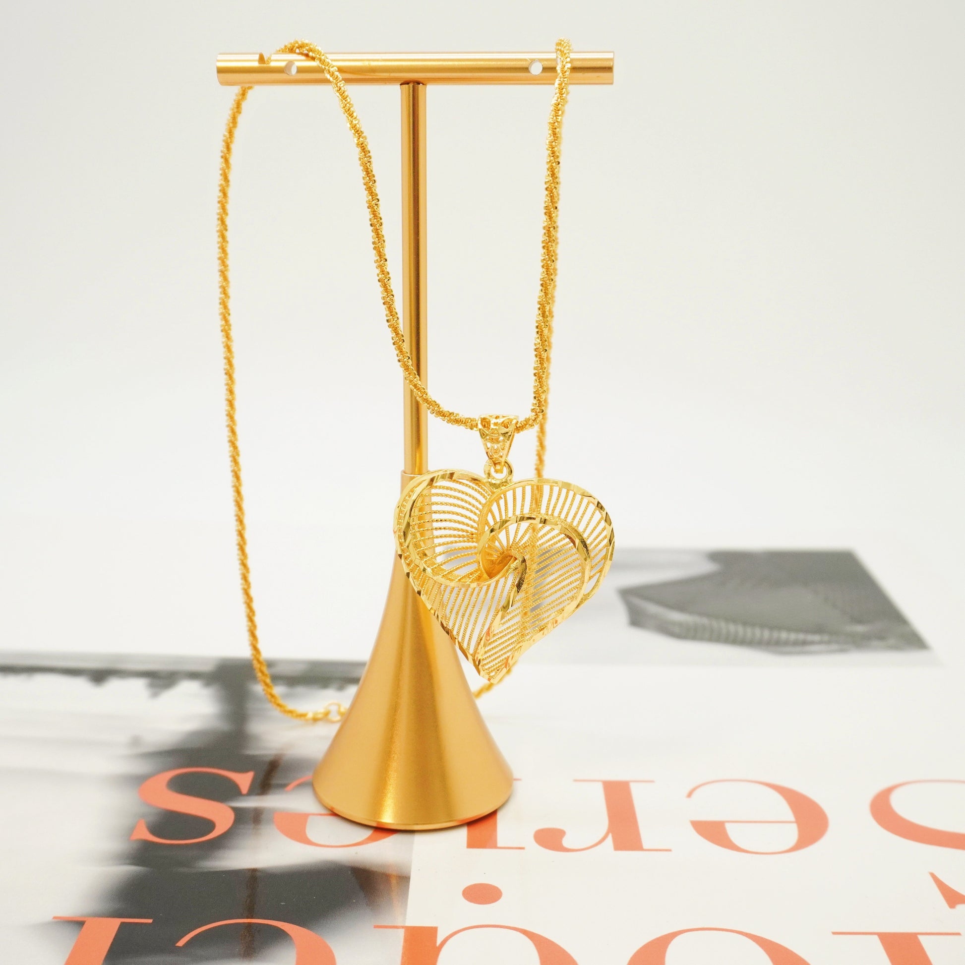 24K oltin qoplamali, muzlatilgan tugma bilan zamonaviy yurak pandantli marjon - Har kuni kiyish va sovg'a berish uchun ideal