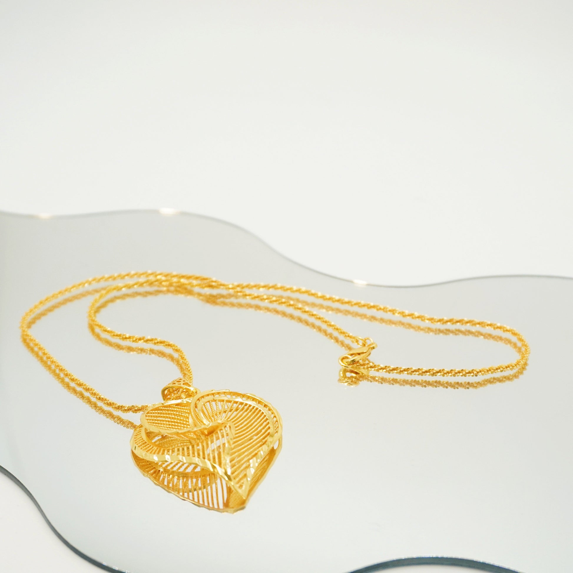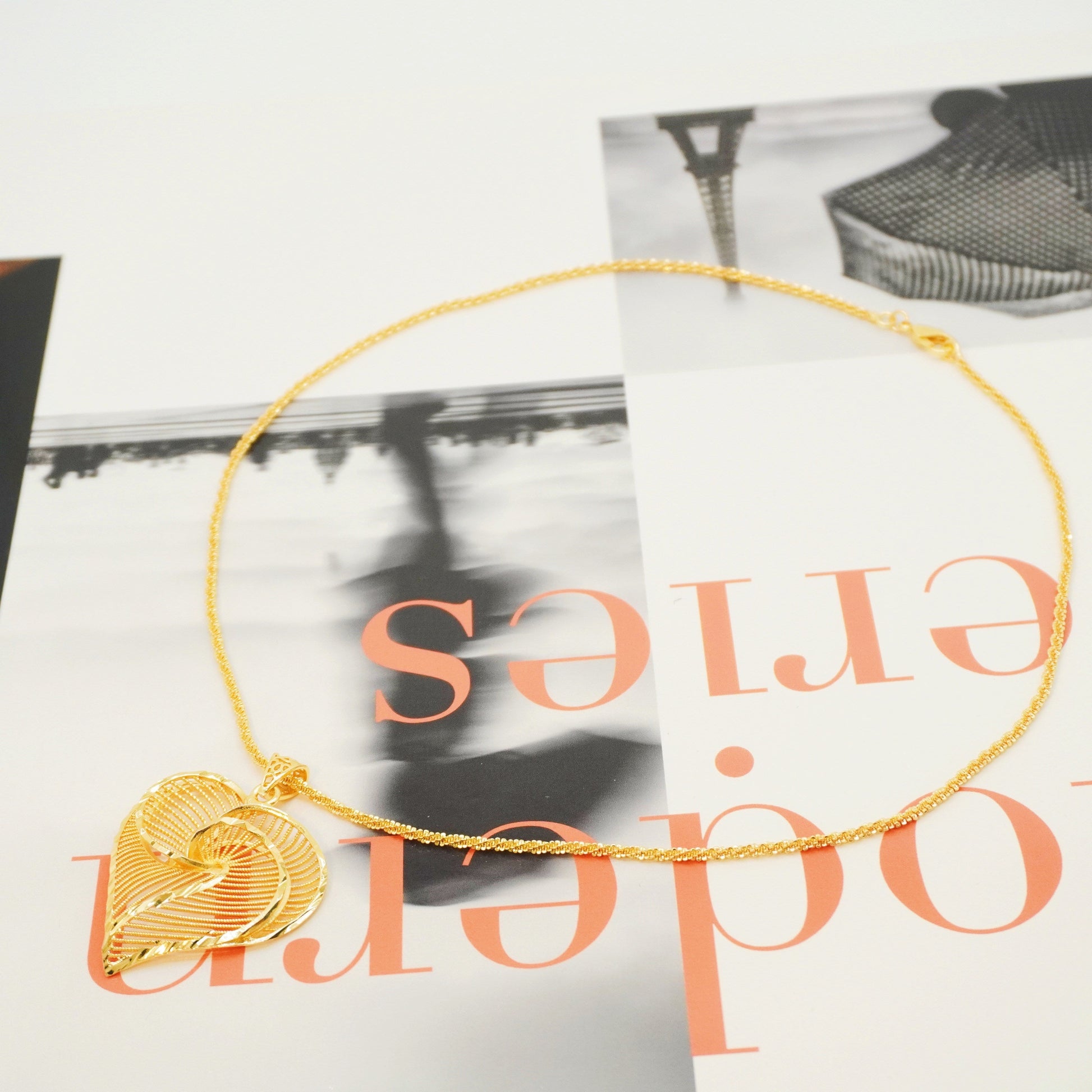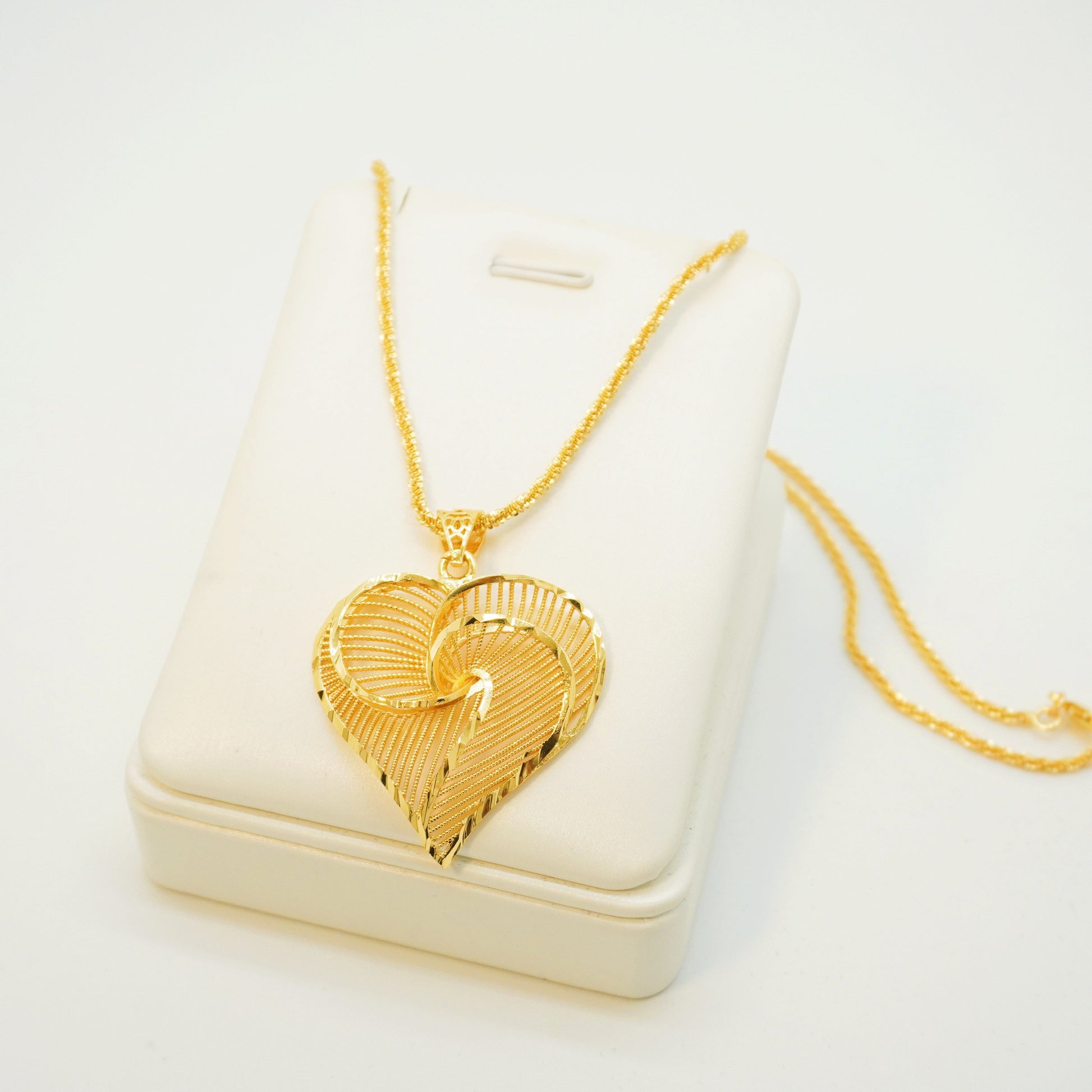 24K oltin qoplamali, muzlatilgan tugma bilan zamonaviy yurak pandantli marjon - Har kuni kiyish va sovg'a berish uchun ideal