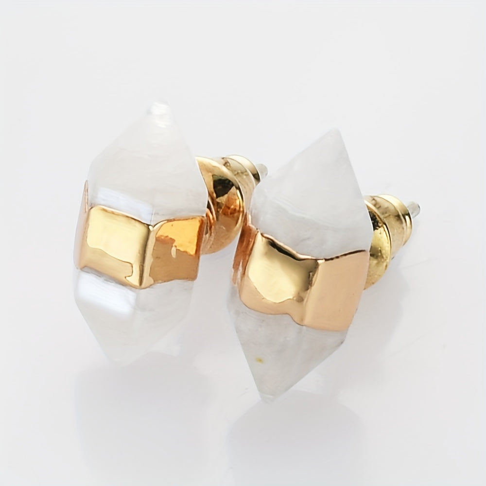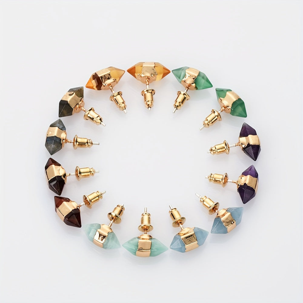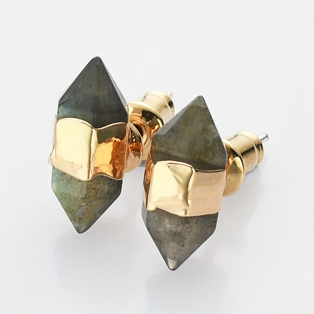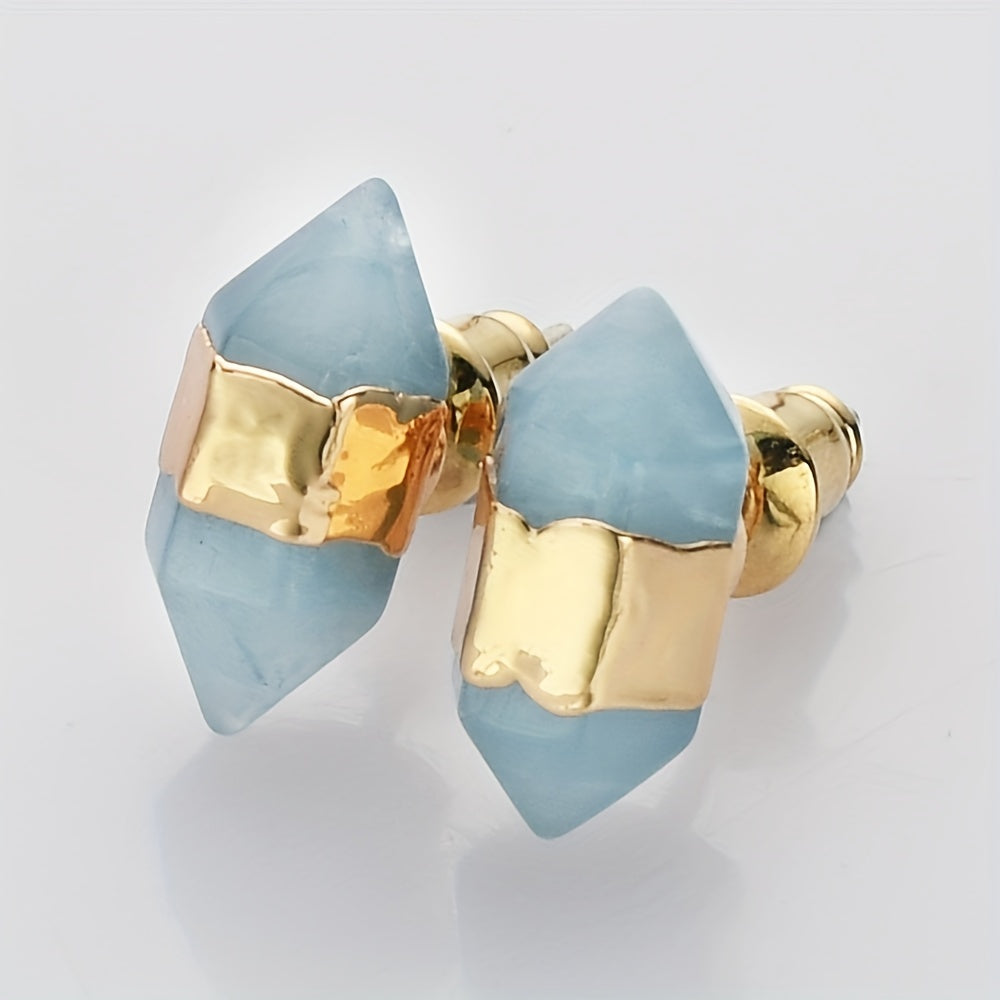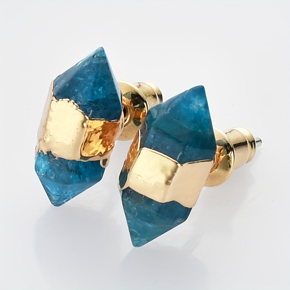 14K oltin qoplamali zamonaviy olti burchakli quloq uzuklari, tabiiy tosh va 925 kumush quloq ignasi - mis aksentlari, kundalik kiyim va sovg'a uchun mukammal minimalist dizayn, noyabr oyining tug'ilgan toshi.