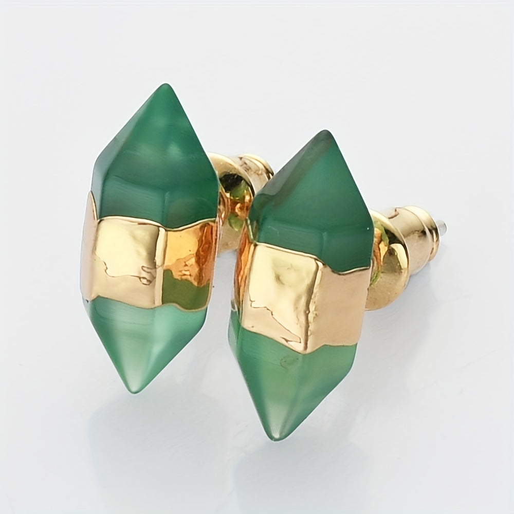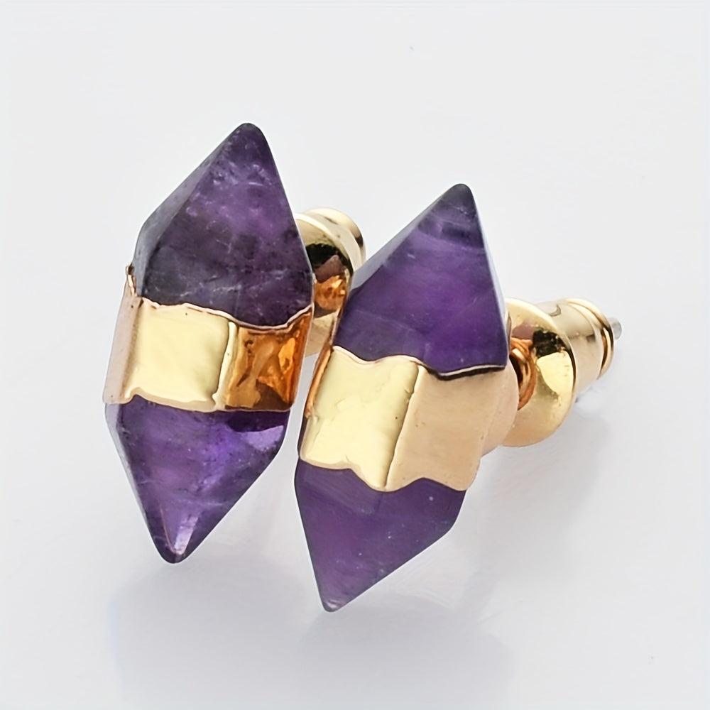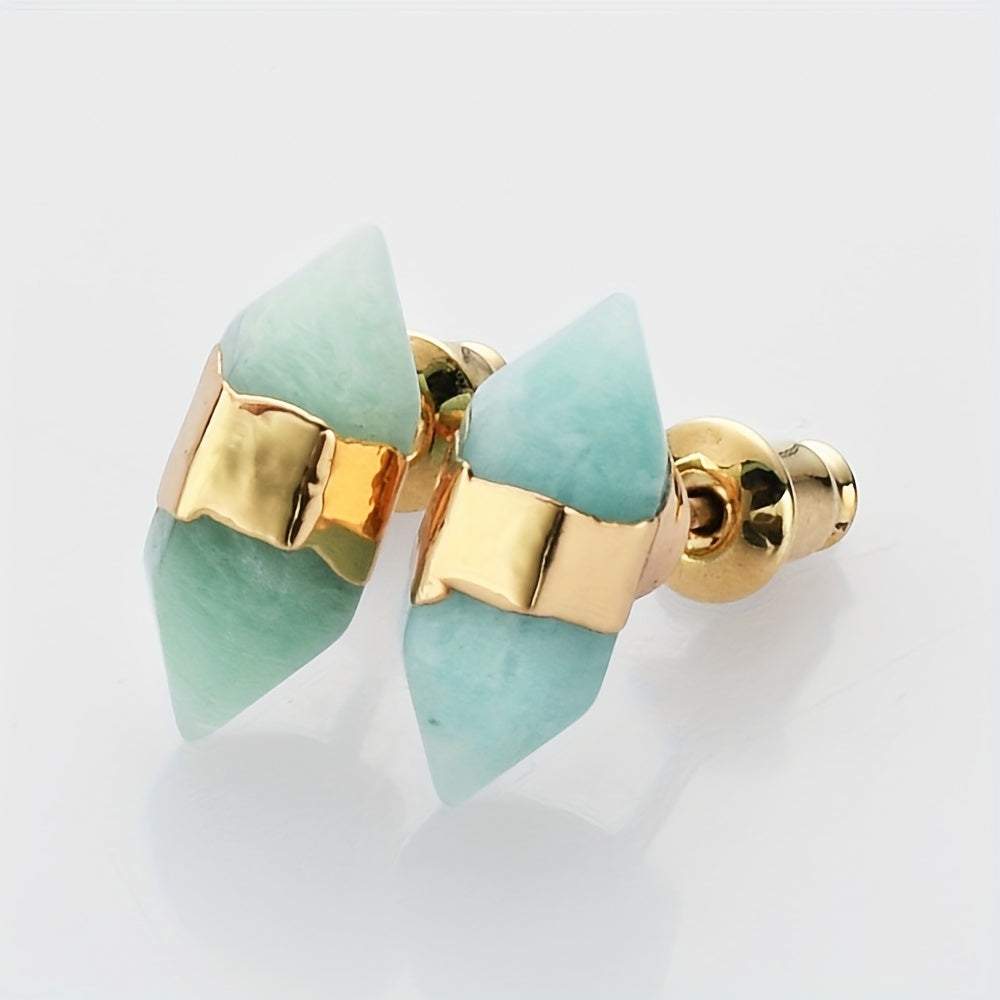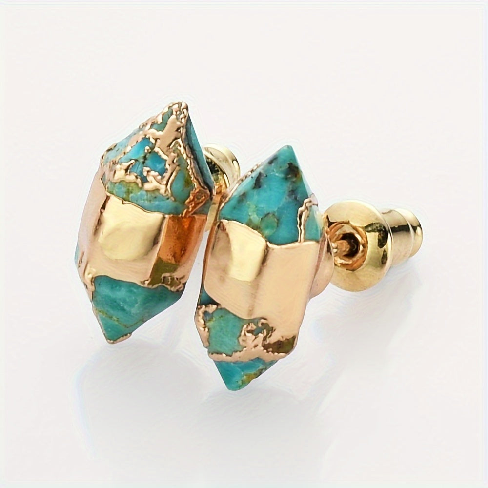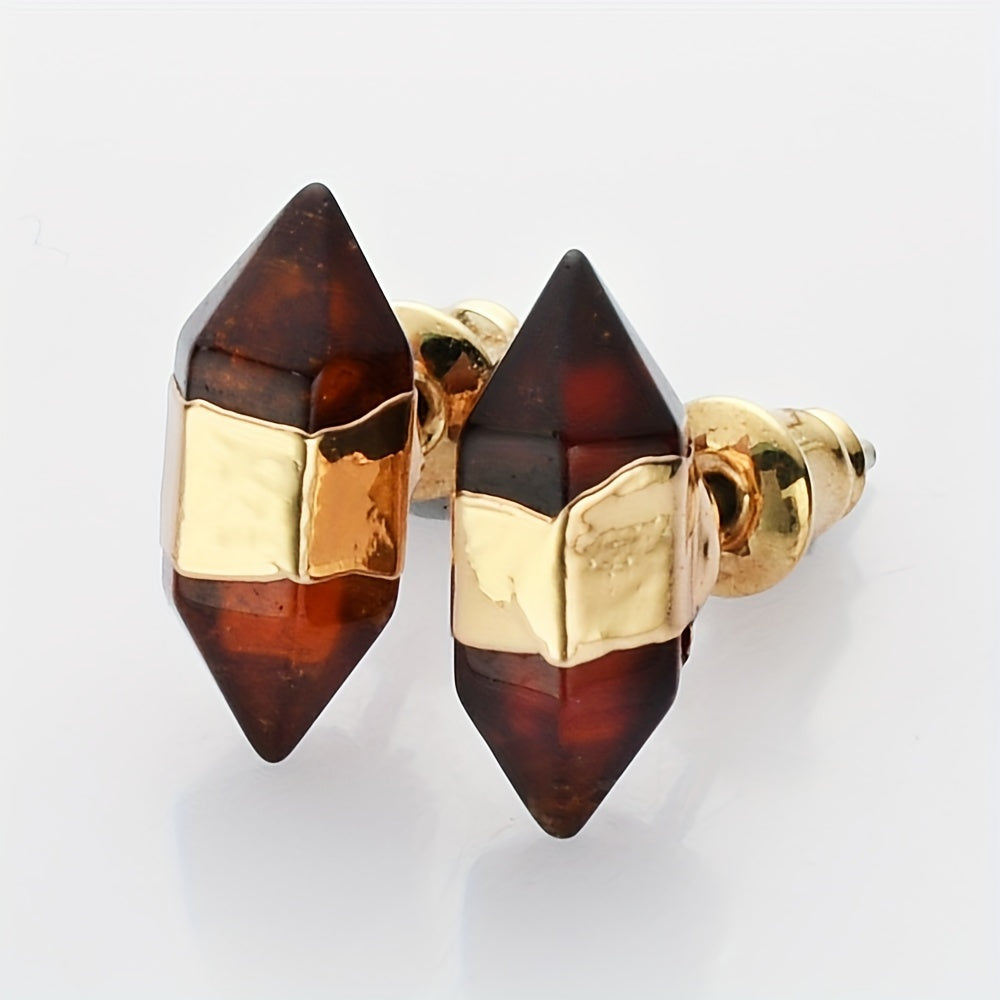 14K oltin qoplamali zamonaviy olti burchakli quloq uzuklari, tabiiy tosh va 925 kumush quloq ignasi - mis aksentlari, kundalik kiyim va sovg'a uchun mukammal minimalist dizayn, noyabr oyining tug'ilgan toshi.