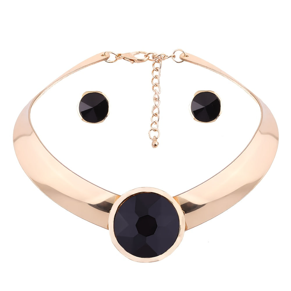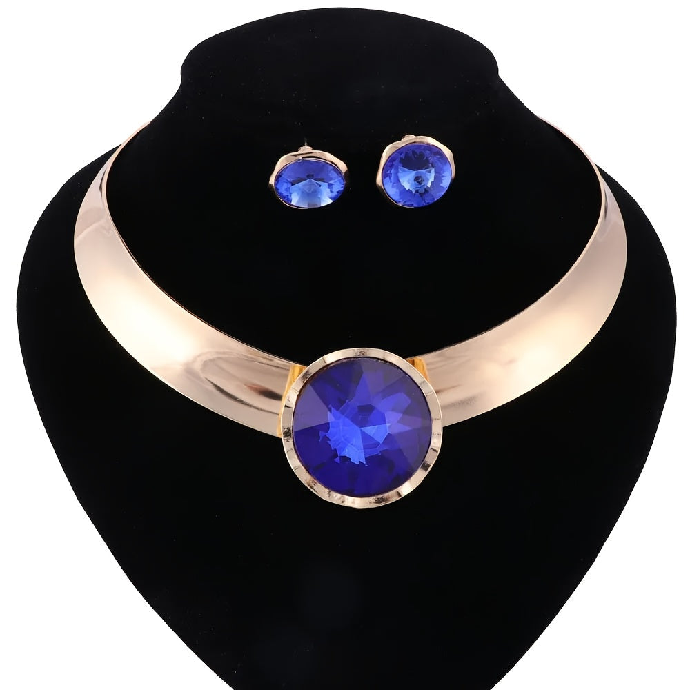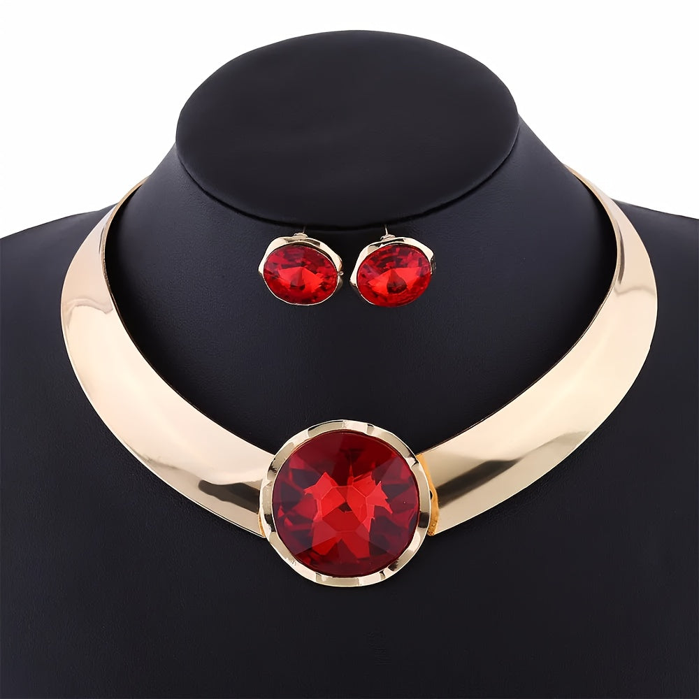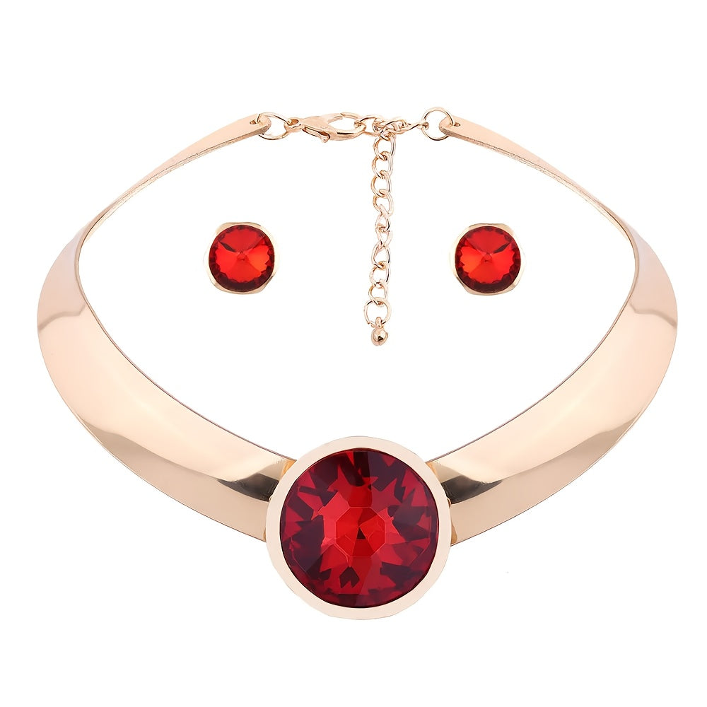 Ayollar uchun sintetik qizil toshlar bilan zargarlik buyumlari to'plami, alyuminiy chokeri va sirg'alar