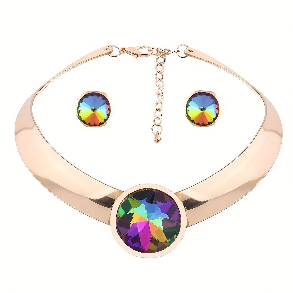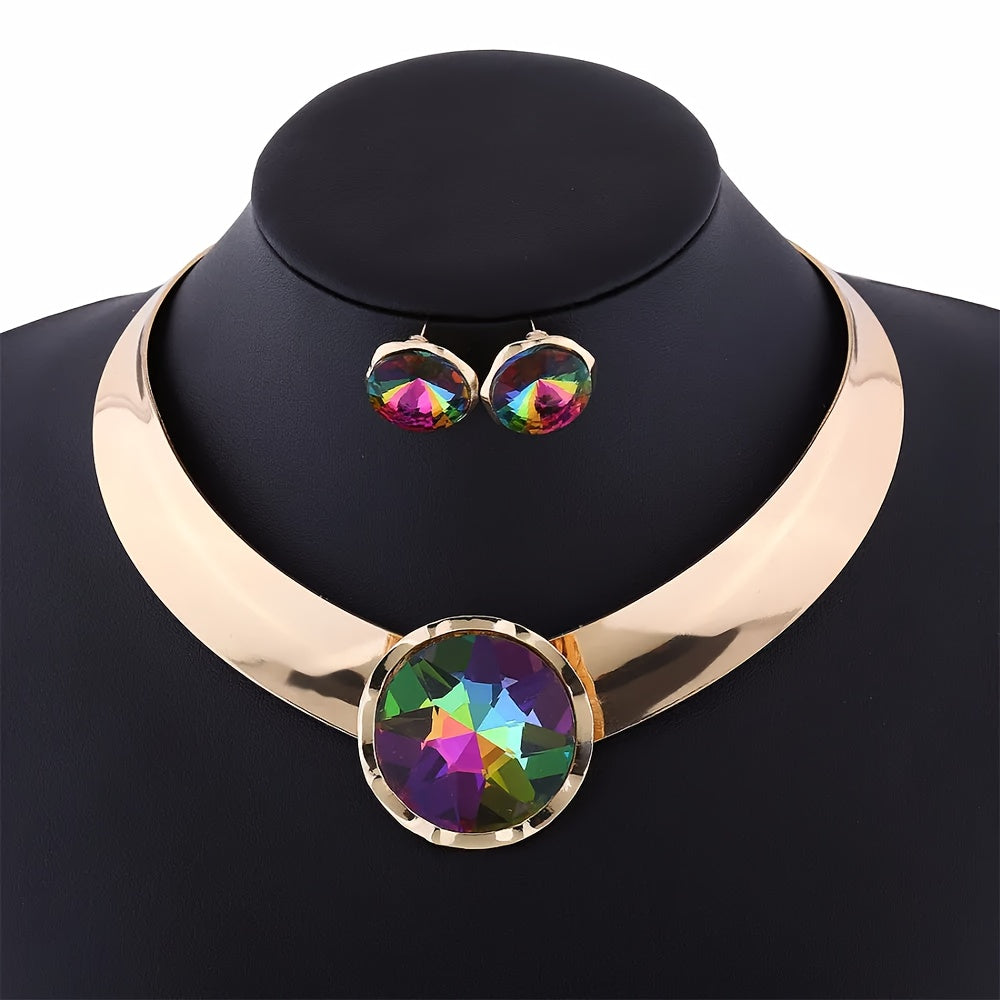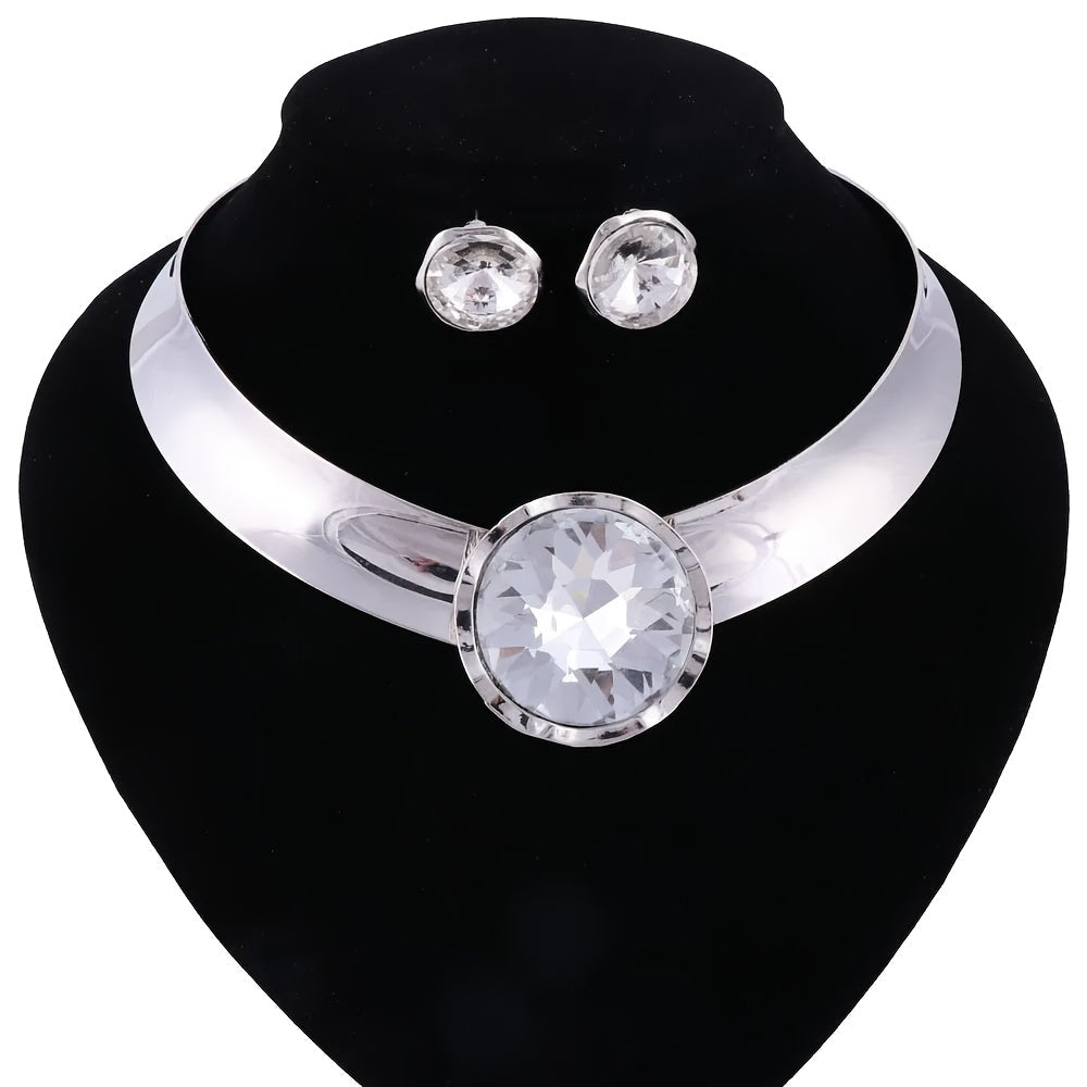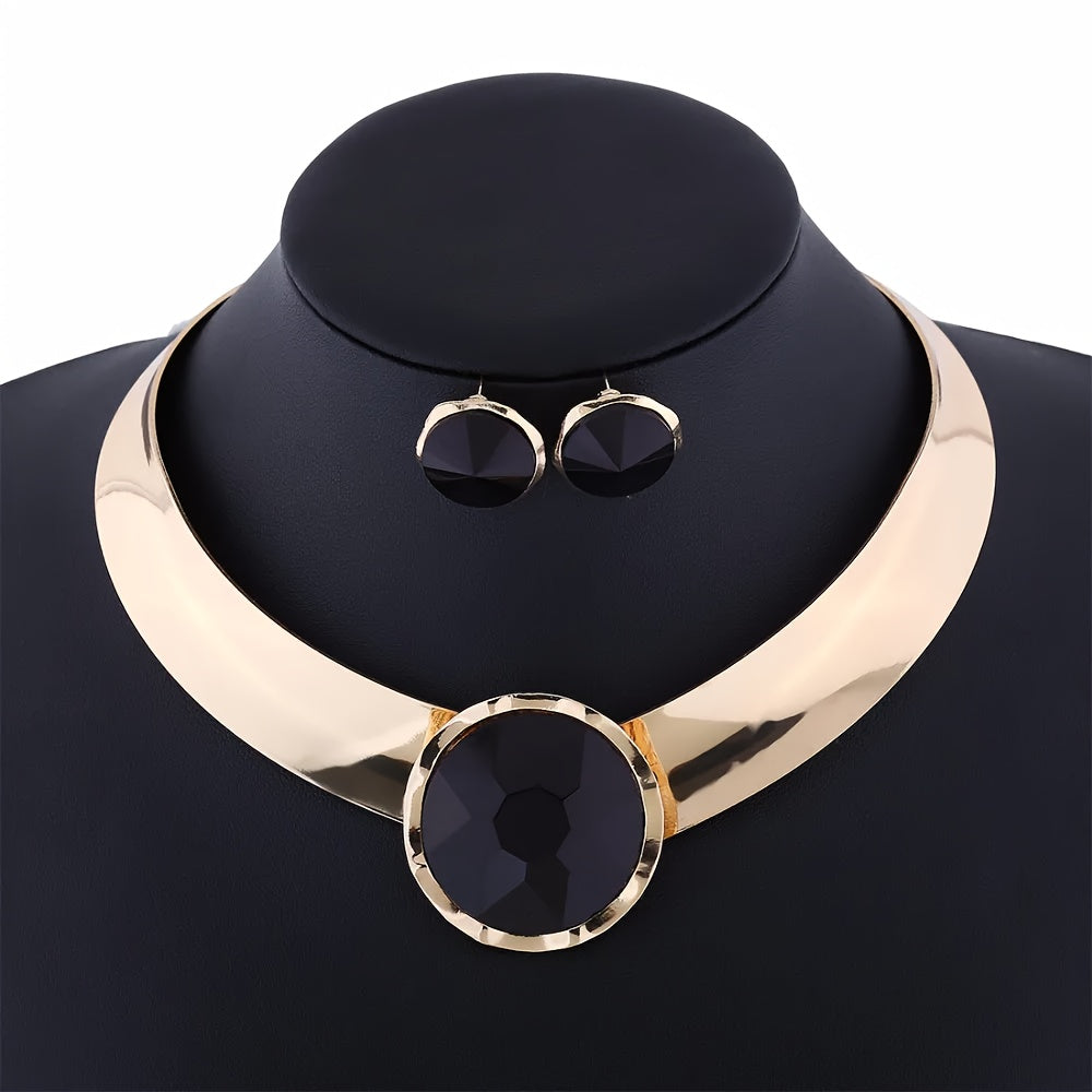 Ayollar uchun sintetik qizil toshlar bilan zargarlik buyumlari to'plami, alyuminiy chokeri va sirg'alar