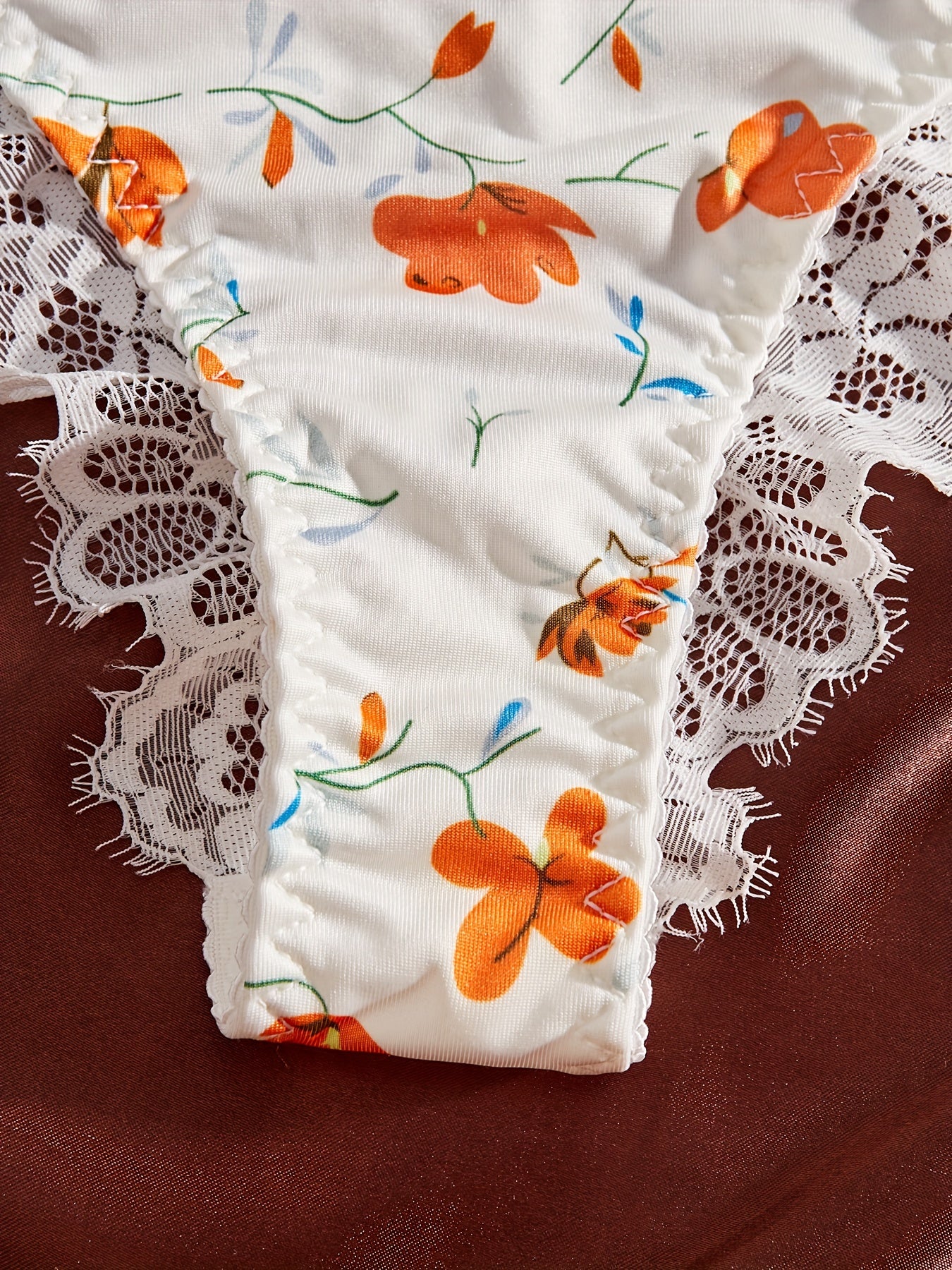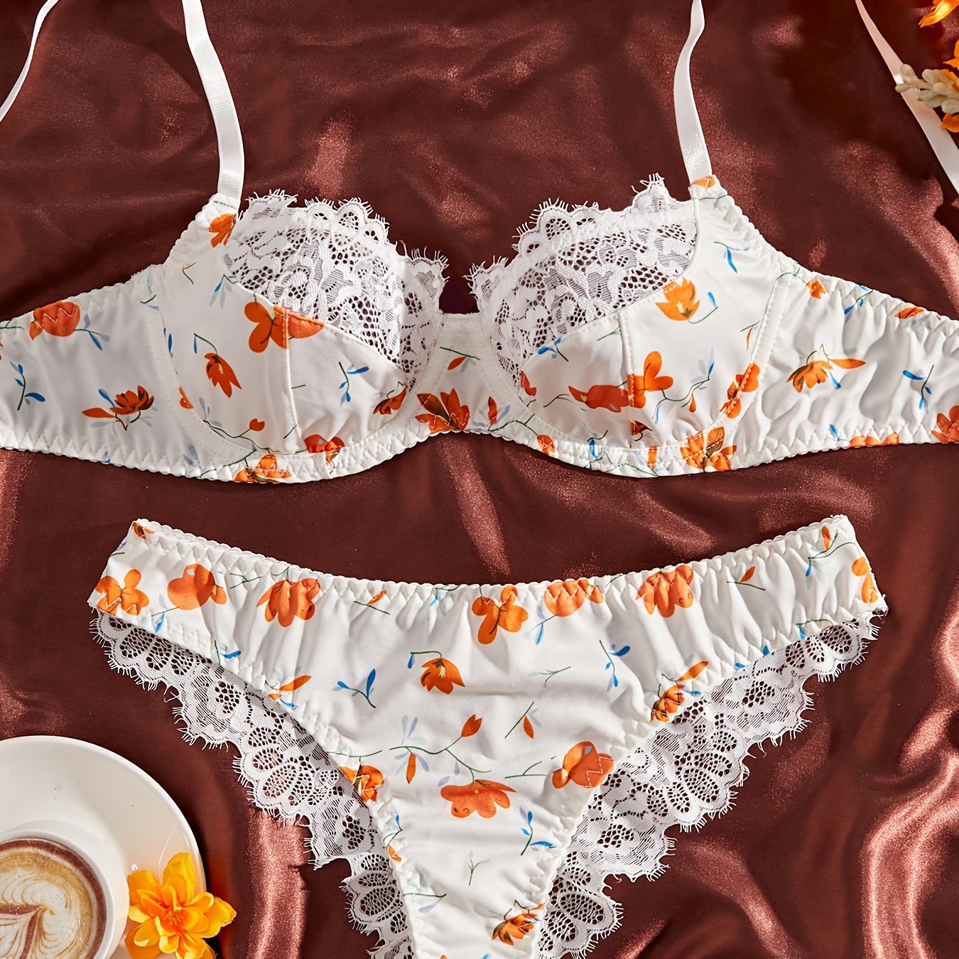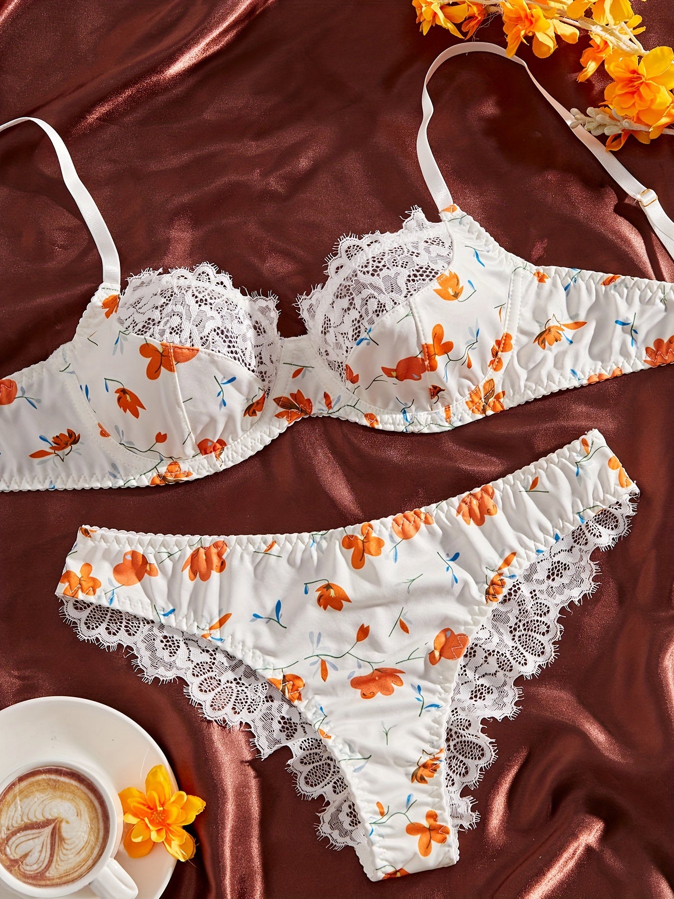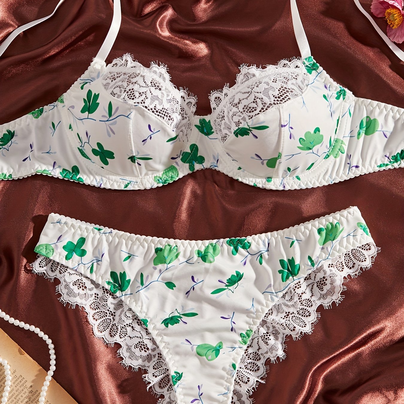 Ayollar uchun zamonaviy dantel bilan bezatilgan gullar naqshidagi brass va ichki kiyim to'plami. Qulay polyester aralashmasi, mashinada yuvish mumkin.