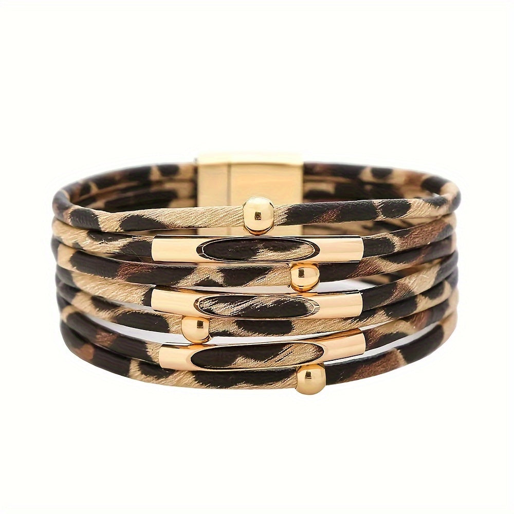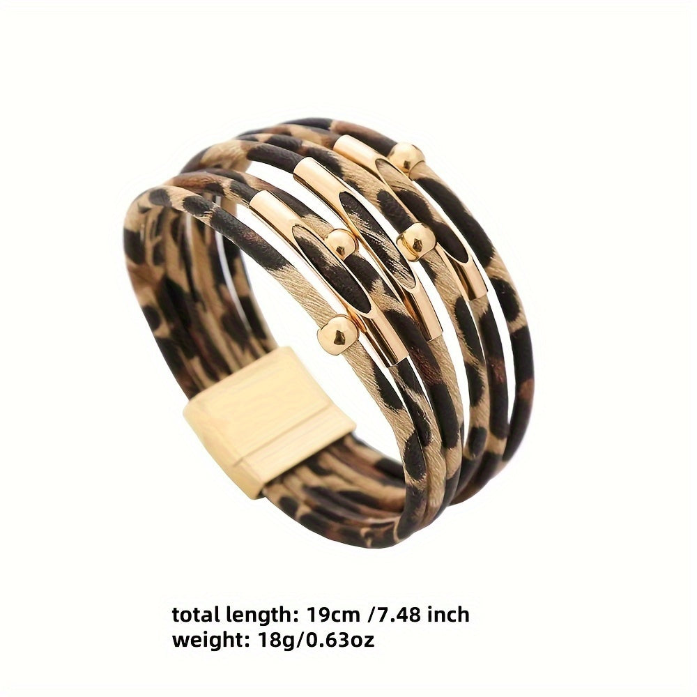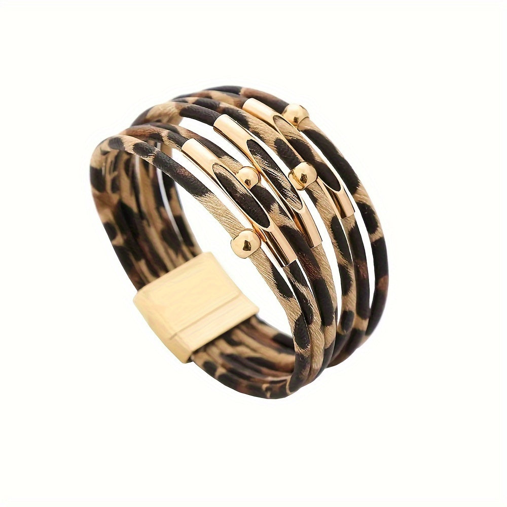 Zarif leopard naqshli PU charmli bilaguzuk - Sog'liqni saqlash uchun saratonni anglash kuni yoki har qanday ziyofat uchun ideal!