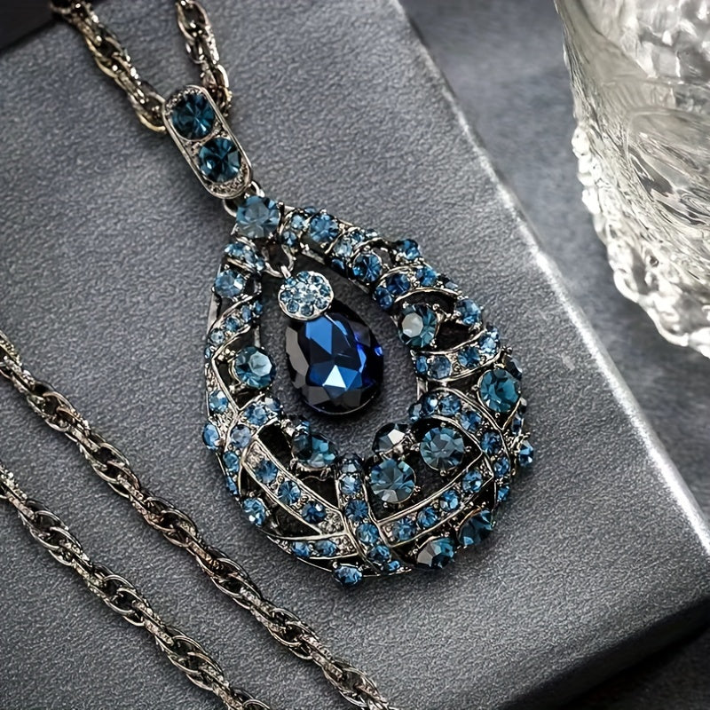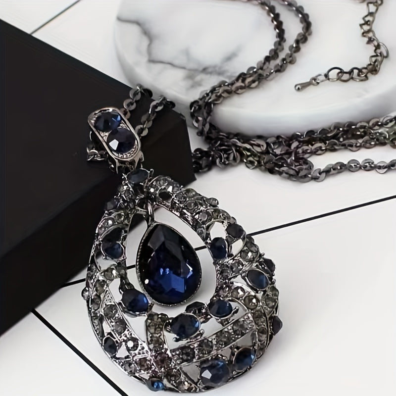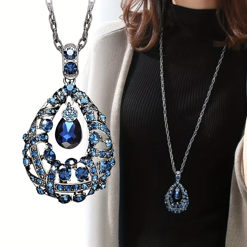 Zamonaviy Uzoq Sviter Marjon, Qadimiy Charm va Suv Tomchisi Pendanti bilan - Mis va Kubik Zirconiya Toshlaridan Iborat, Norasmiy va Partiya Kiyimlari Uchun Ideal