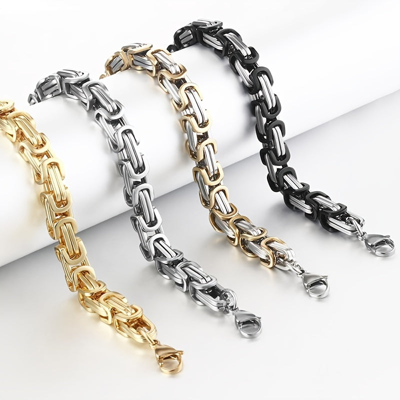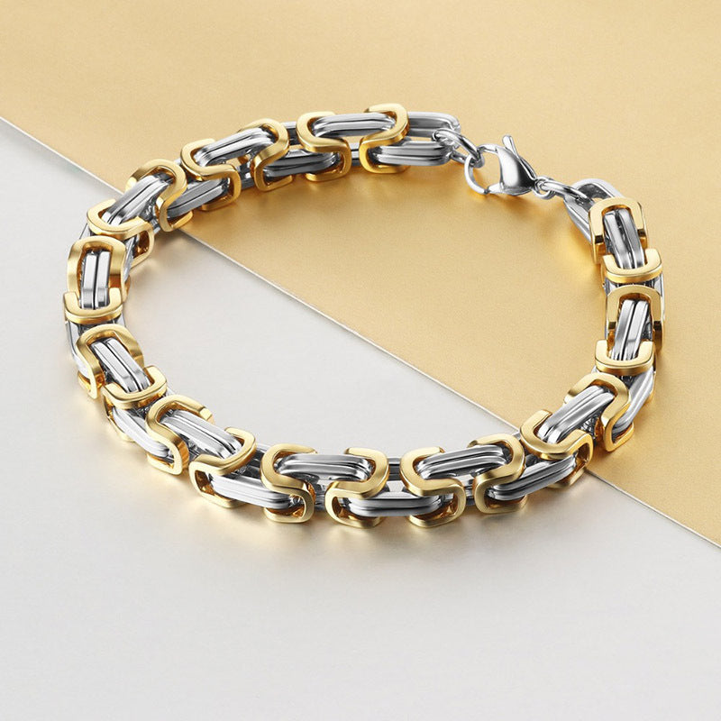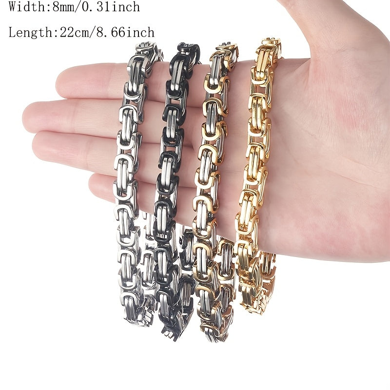 erkaklar uchun zanglamaydigan po'latdan yasalgan zanjir bilaguzuk 8mm Bizans quti uslubi qora oltin kumush
