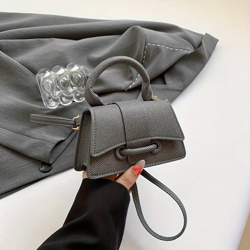 Kahaki, kulrang, pushti, yashil va och jigarrang ranglarda uslubiy mini crossbody sumka, sozlanadigan kamar, magnit yopish va astar bilan. Mustahkam rang, naqsh yoki bosma yo'q, chetlarini tugatish bilan.