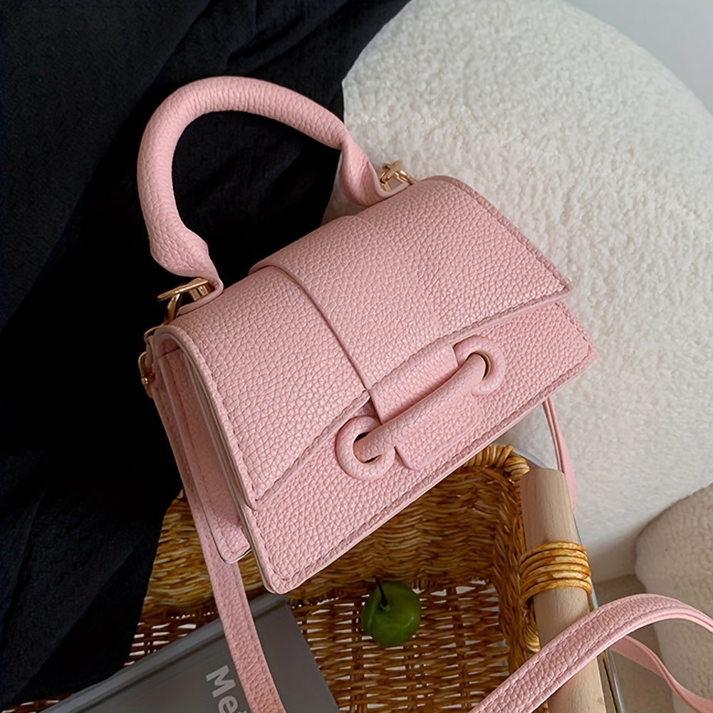 Zamonaviy niş dizayni, yuqori tutqichi va kvadrat shakli bilan uslubiy mini crossbody sumka.
