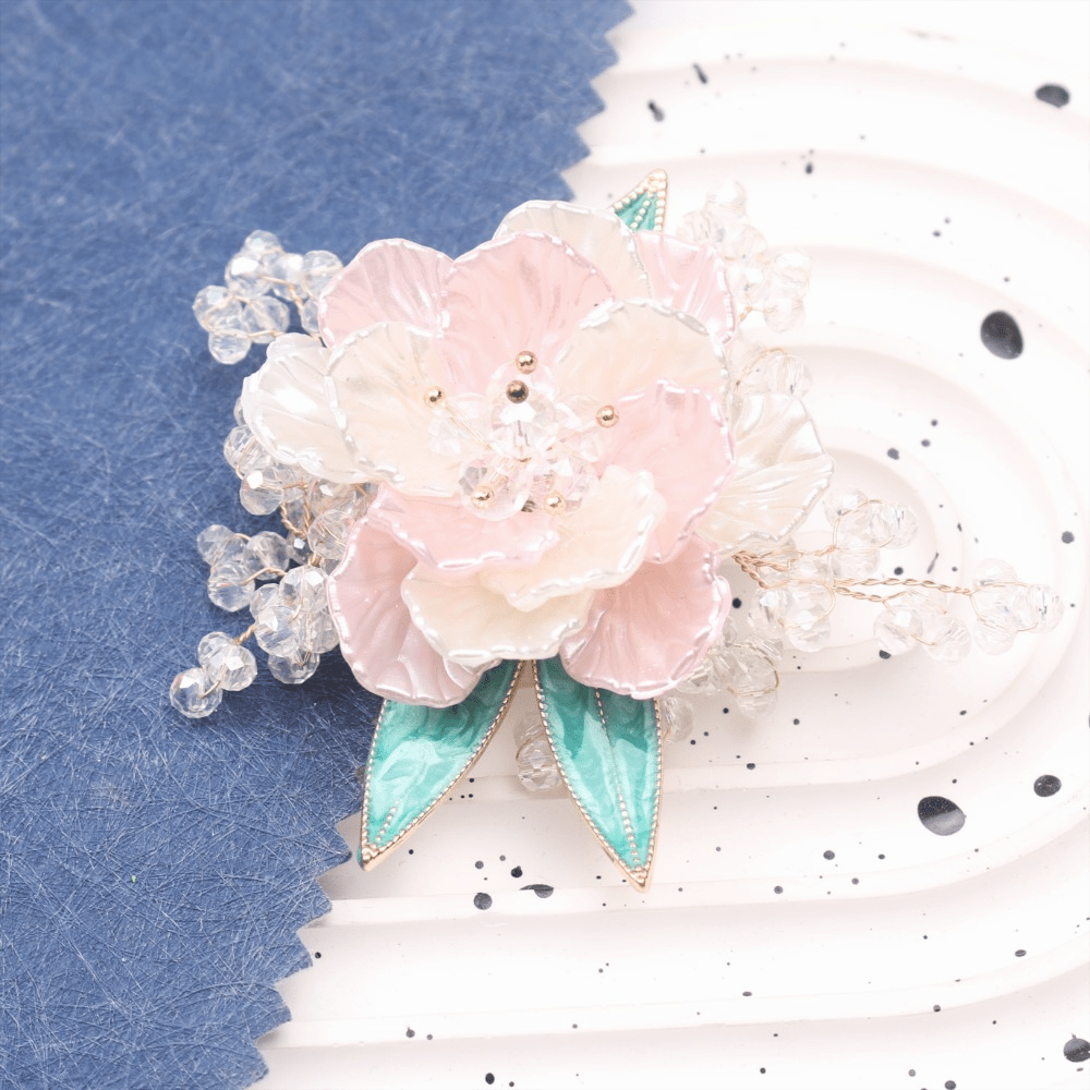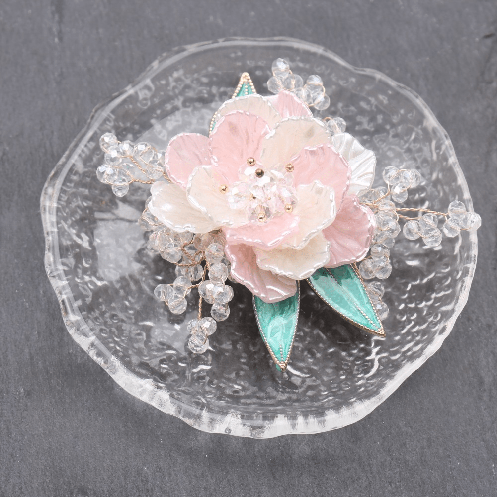 Zarif Qizil Gul Brosh, Porloq Kristallar bilan bezatilgan - Rasmiy Tadbirlar uchun Ideal