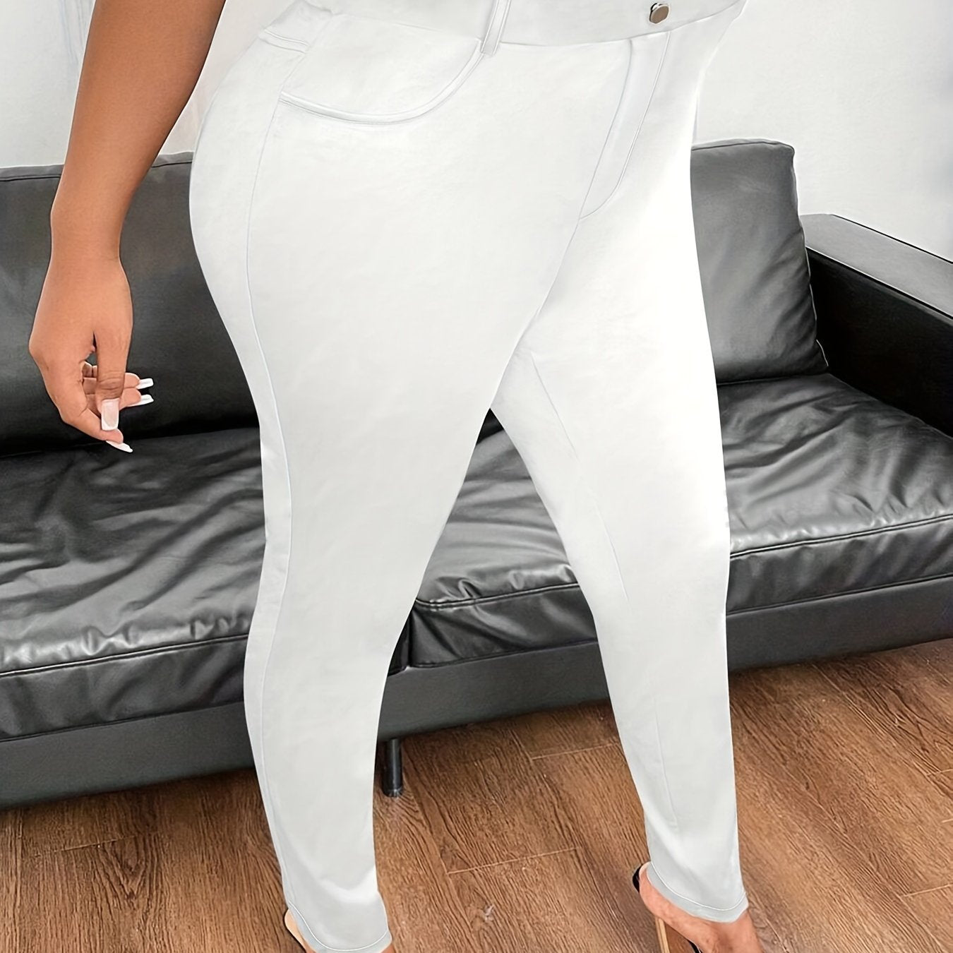 Ayollar uchun zamonaviy plussayz skinny shimlar, bir rangli, yuqori bel bilan cho'ntaklar, mashinada yuvish mumkin