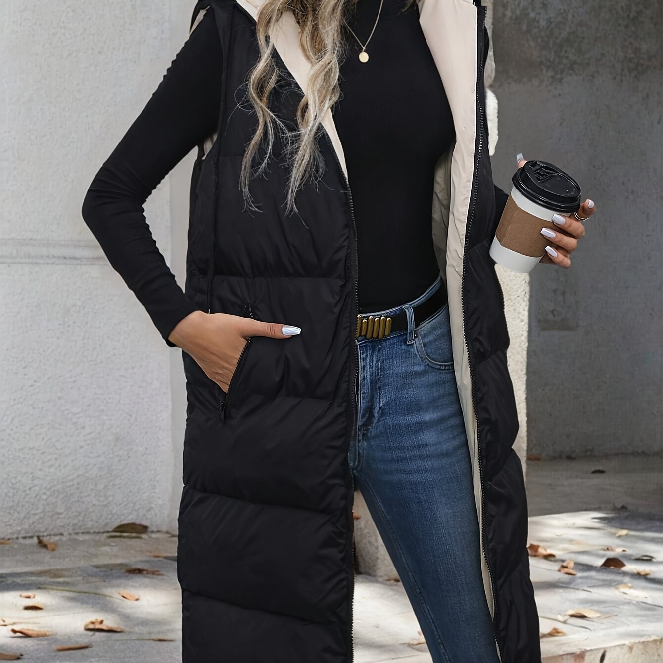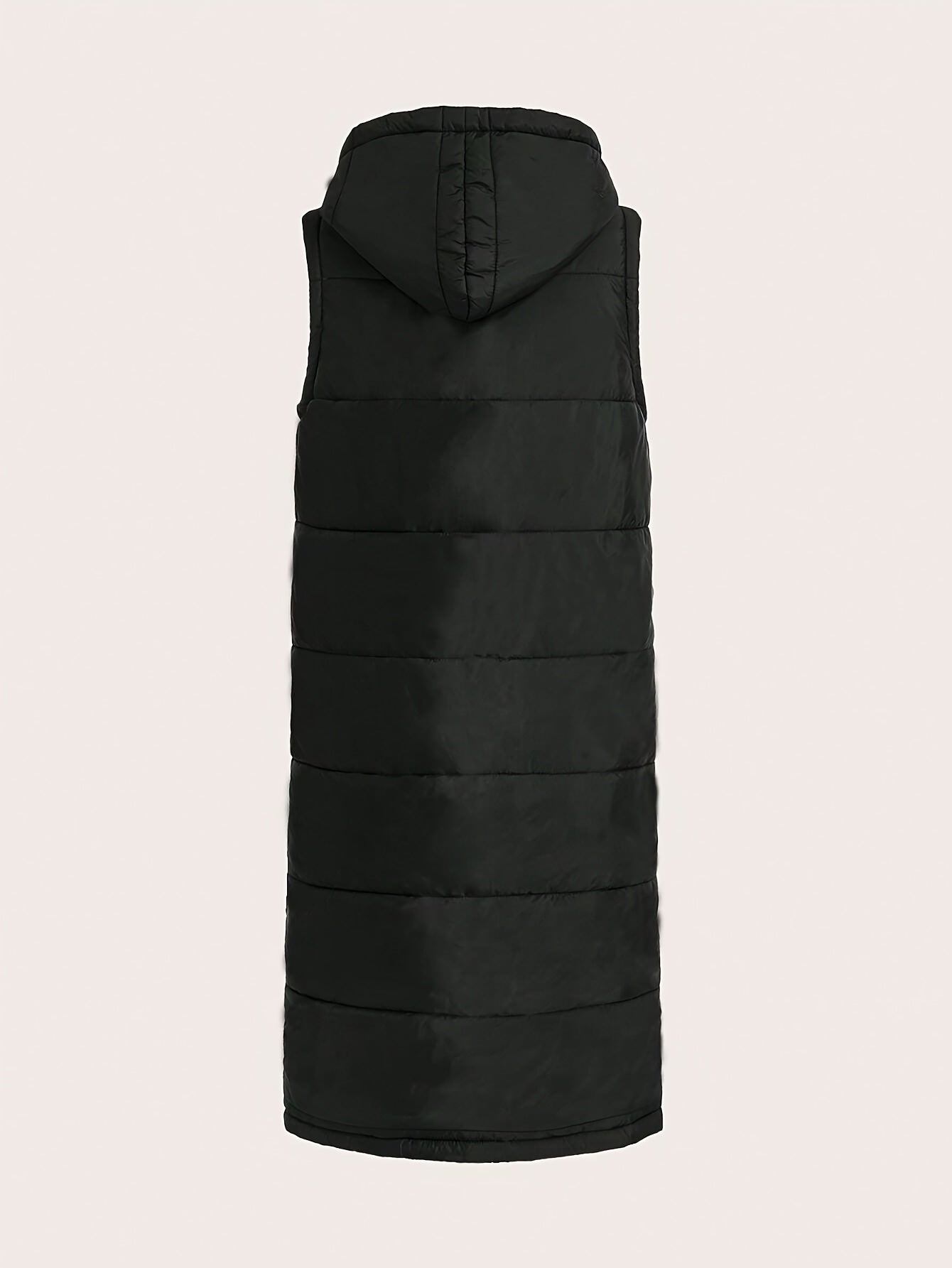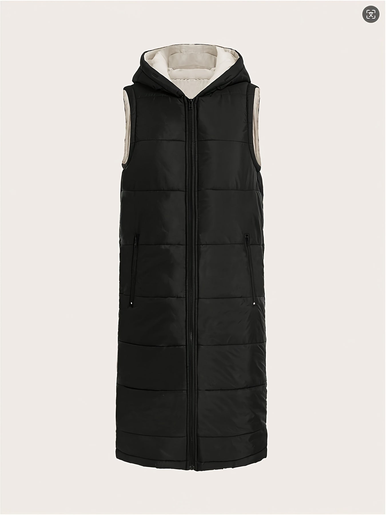 Usmonli plus o'lchamdagi kaputli, uzun uzunlikda va cho'ntaklari bor jilet. Polyesterdan tayyorlangan, ozgina cho'ziluvchan, barcha fasllar uchun ideal.