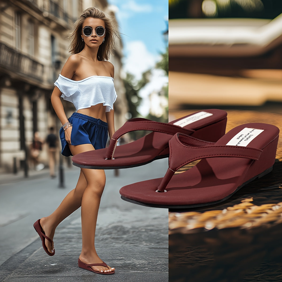 Yoz uchun zamonaviy qizil wedge flip-floplar, har qanday kiyim uchun mukammal