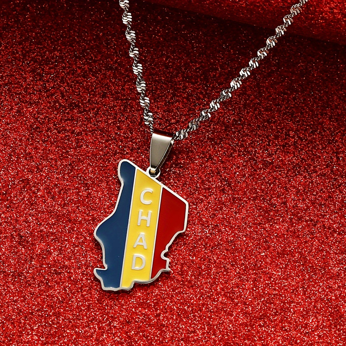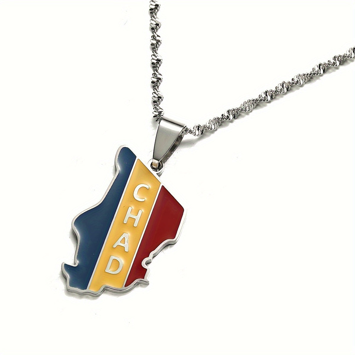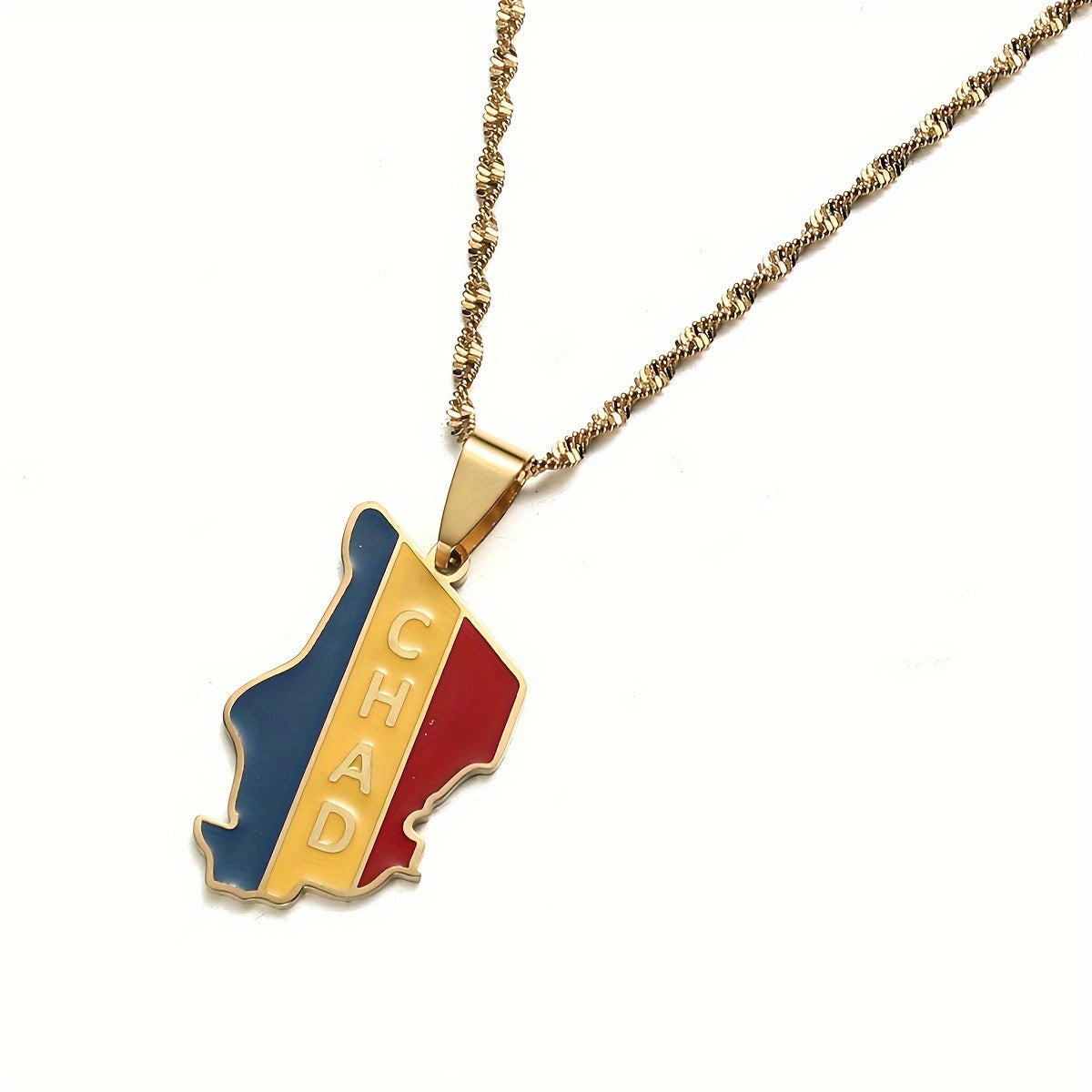 Chad Respublikasining zamonaviy pendanti - zanglamas po'latdan tayyorlangan, oltin va kumush ranglarining aralashmasi bilan, norasmiy kiyim va partiyalar uchun mukammal.