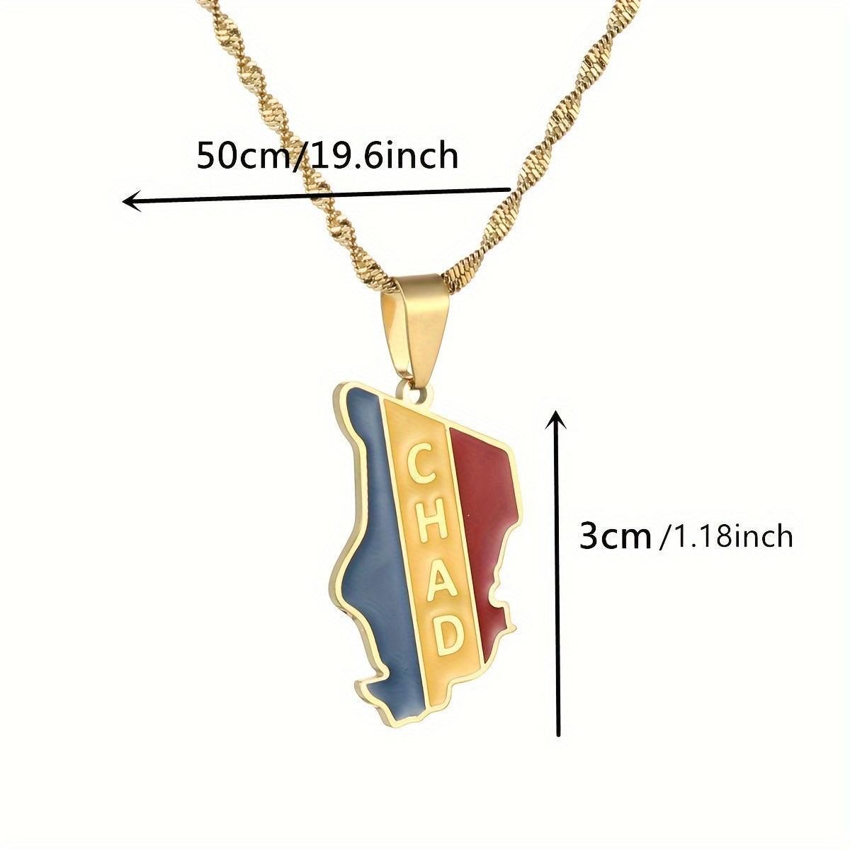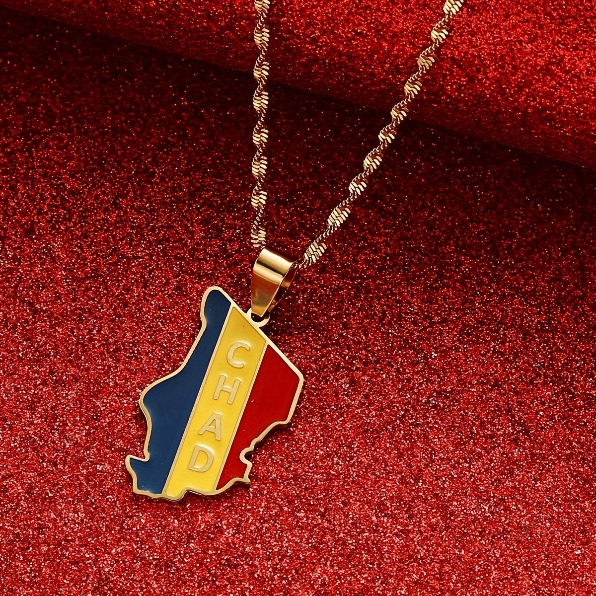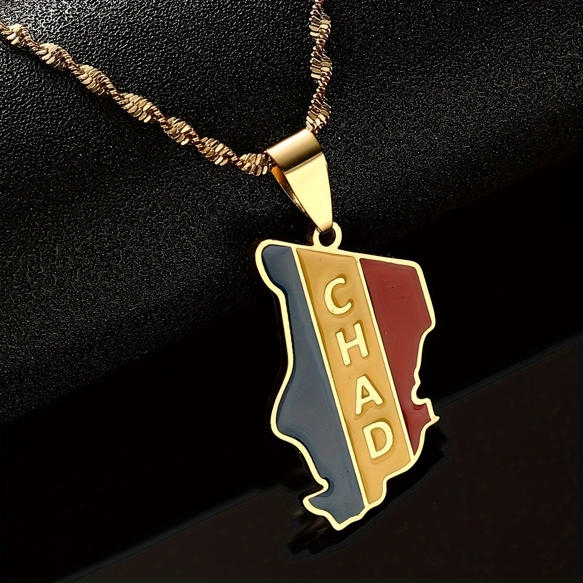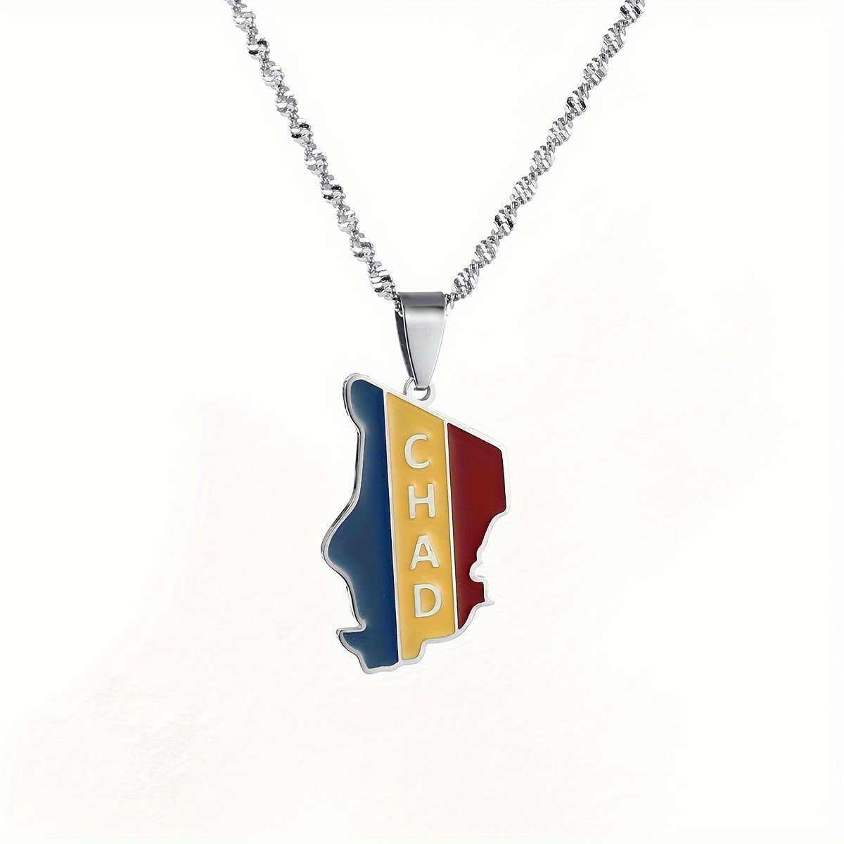 Chad Respublikasining zamonaviy pendanti - zanglamas po'latdan tayyorlangan, oltin va kumush ranglarining aralashmasi bilan, norasmiy kiyim va partiyalar uchun mukammal.