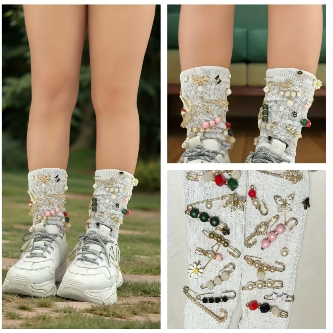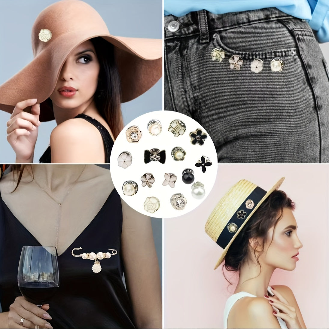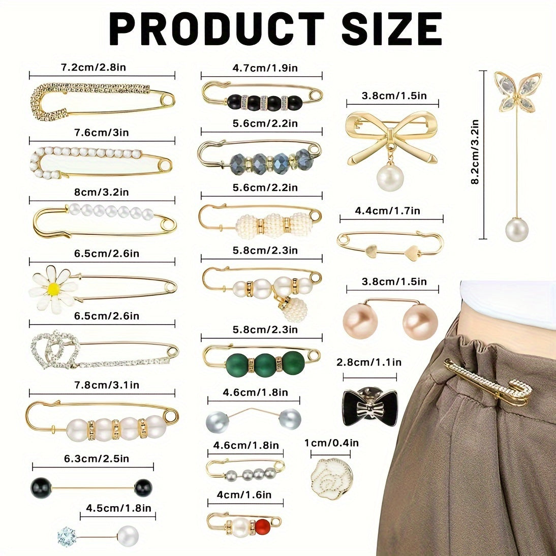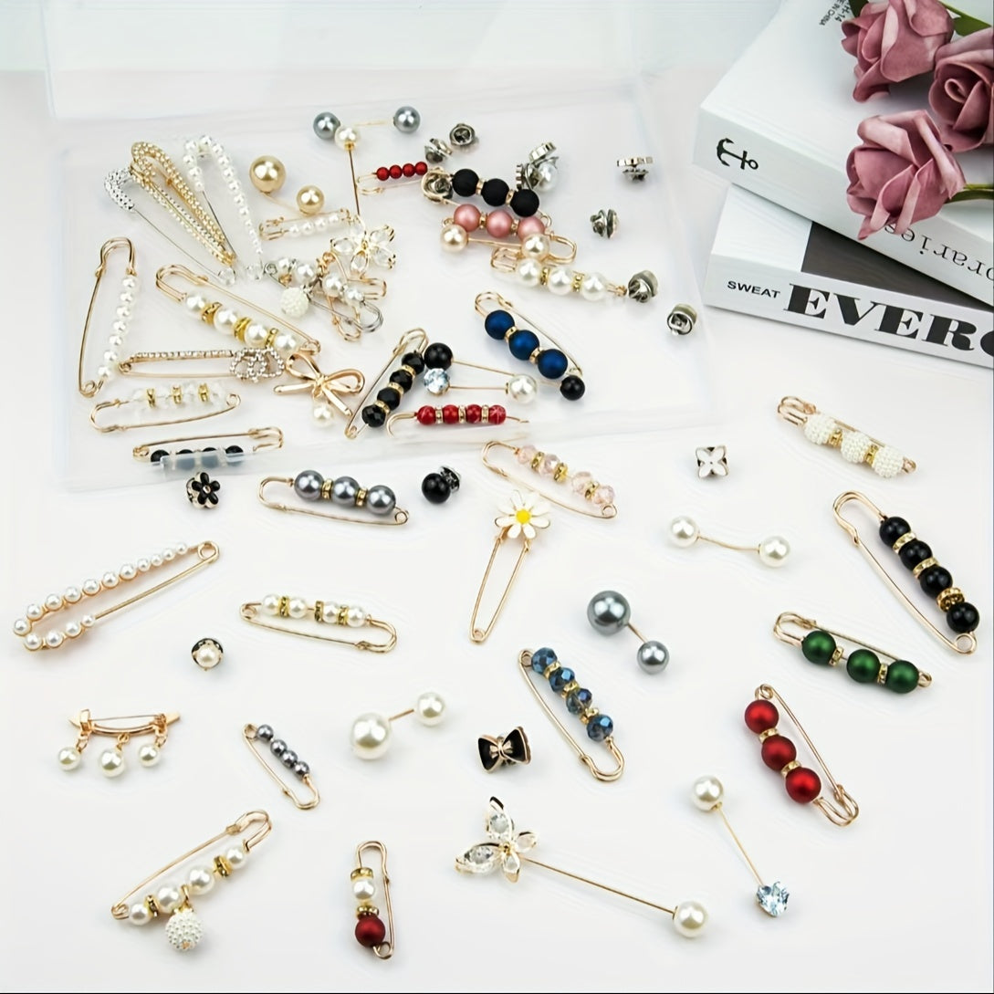 60 ta broshka to'plami, soxta marvaridlar va rhinestone'lar bilan bezatilgan - ko'ylaklar, sviterlar, shalvarlar, shlyapalar va bel uchun ko'p maqsadli aksessuarlar - qulay saqlash qutisi bilan birga keladi.