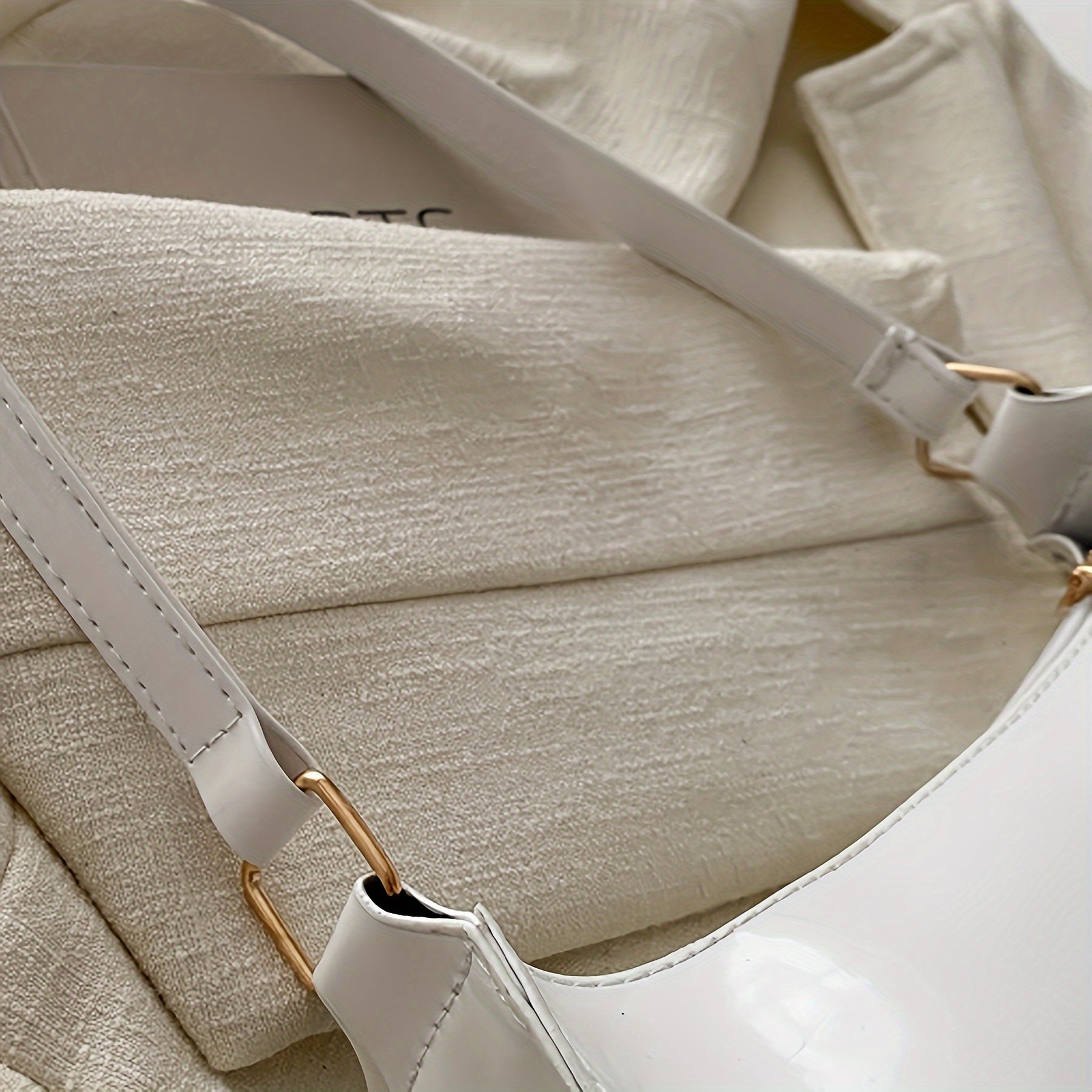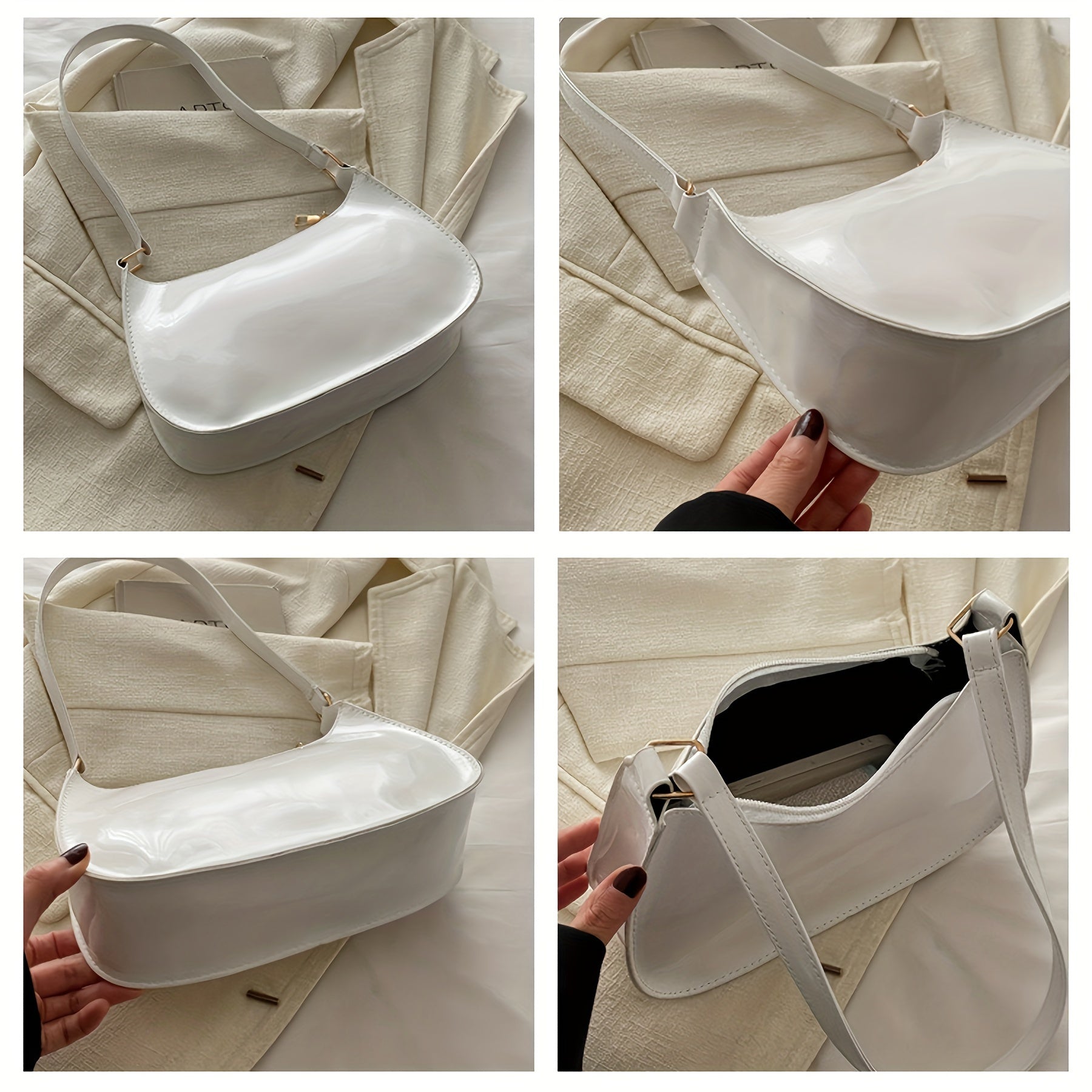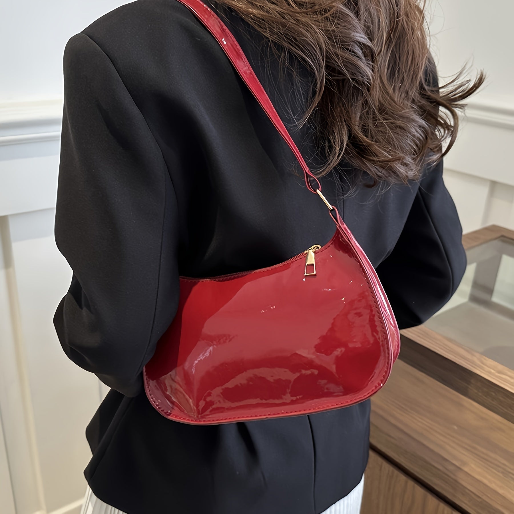 Zipper yopilishi va chet bo'yog'i bilan zamonaviy bir rangli PU yelka sumkasi - kundalik foydalanish, xarid qilish va sovg'a berish uchun mukammal. Qo'l bilan yuvilishi mumkin va ichki qismi yo'q.