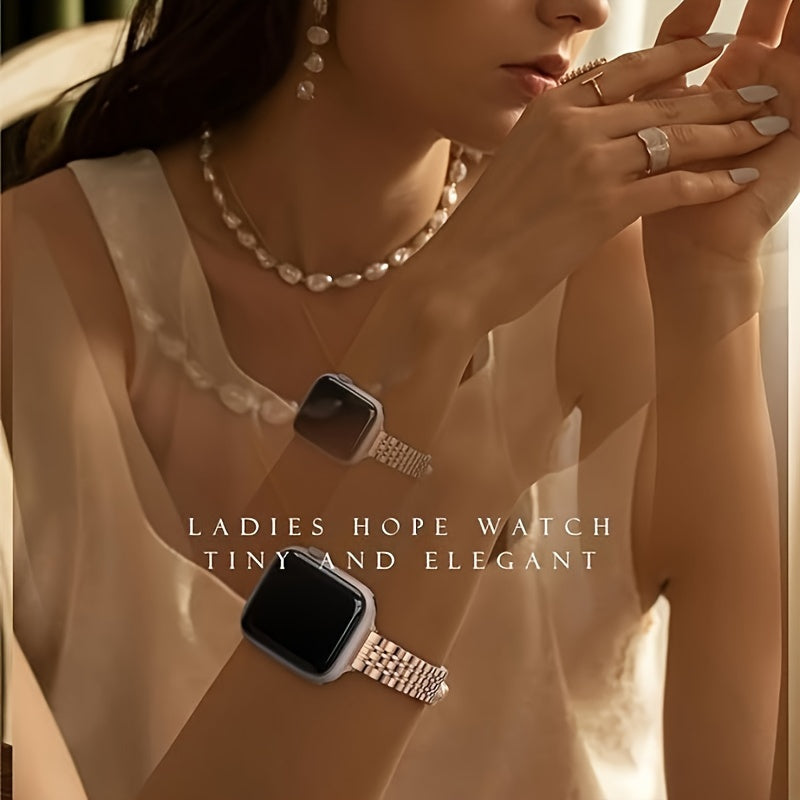 Ayollar uchun zamonaviy ingichka zanglamas po'latdan yasalgan almashtirish tasmasi, turli o'lchamdagi IWatch tasmalari va seriyalari bilan mos keladi, kumush rangda.