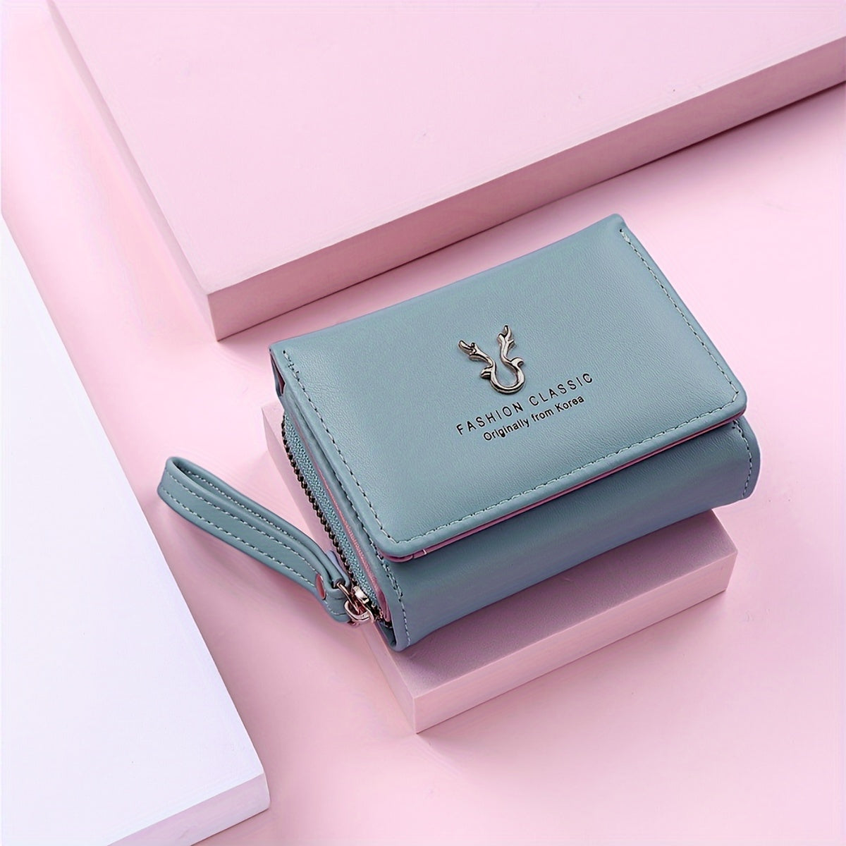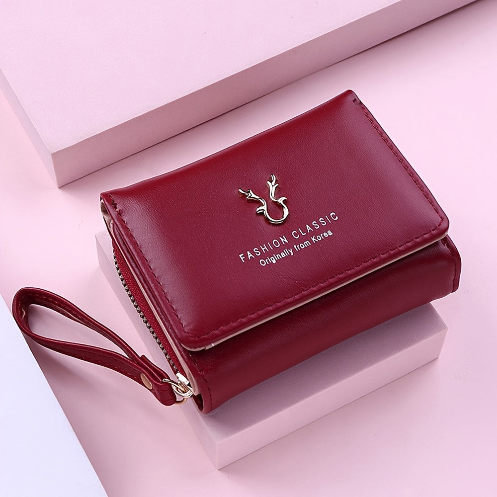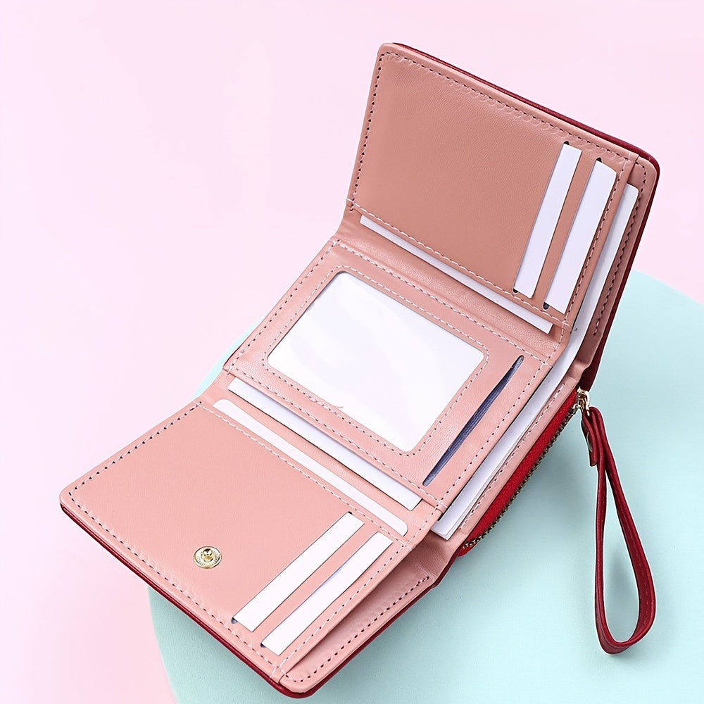 Ayollar uchun kredit karta ushlagichi, clutch sumkasi va bilakuzuk bilan zamonaviy uch qismli hamyon.
