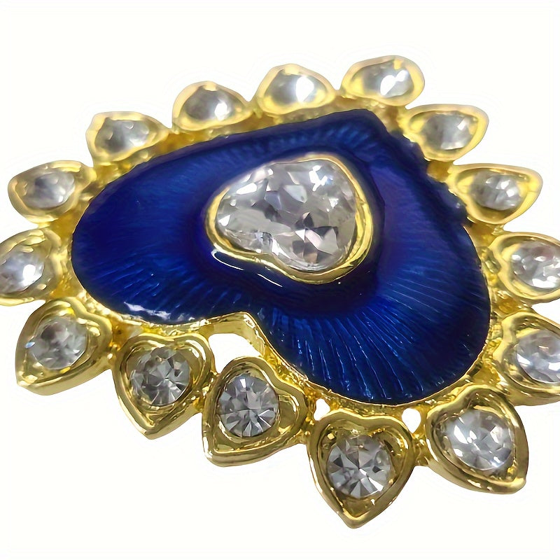 Vintage yurak shaklidagi alloy brooch pin, porloq kristallar va O'rta Sharq dizayni bilan