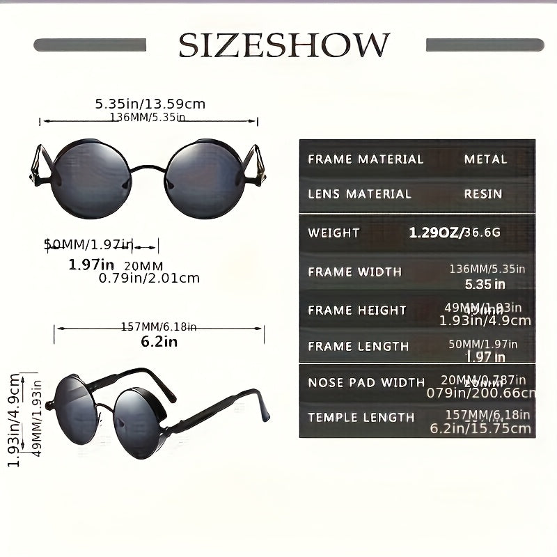 Vintage Steampunk ko'zoynaklar, metall ramkali, aks ettiruvchi linzalar bilan, ochiq havoda haydash uchun