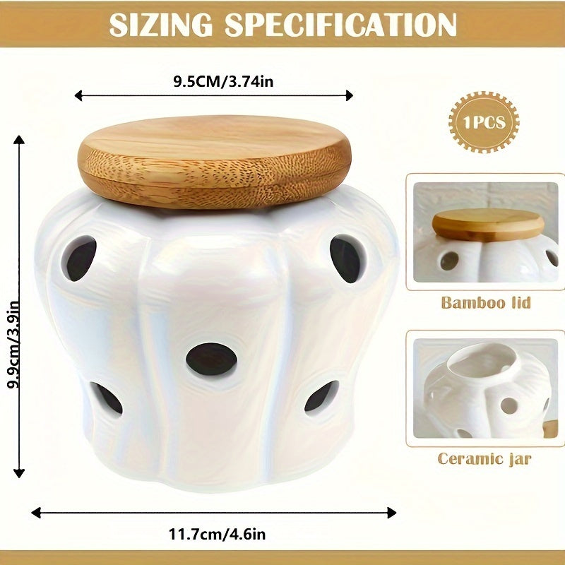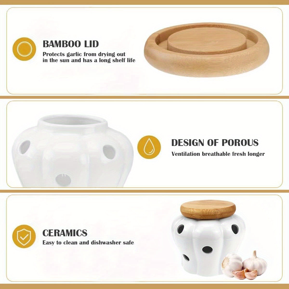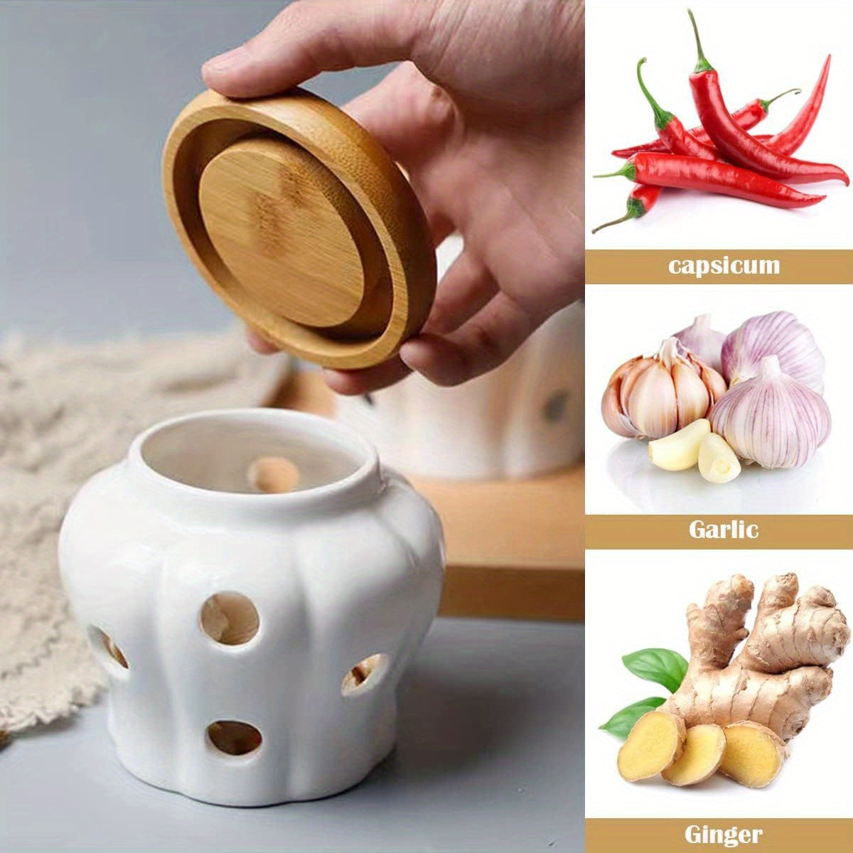 Zamonaviy Oq Keramika Sarimsoq Saqlagichi - Oshxonada Zanjabil va Sarimsoq uchun Havo Olishi mumkin bo'lgan Saqlash Idishi, Zamonaviy Ferma Dekori